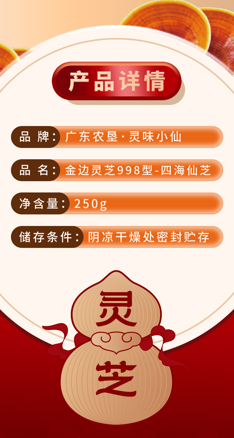 【自营】25年灵味小仙 金边灵芝 998型 广东农垦灵芝