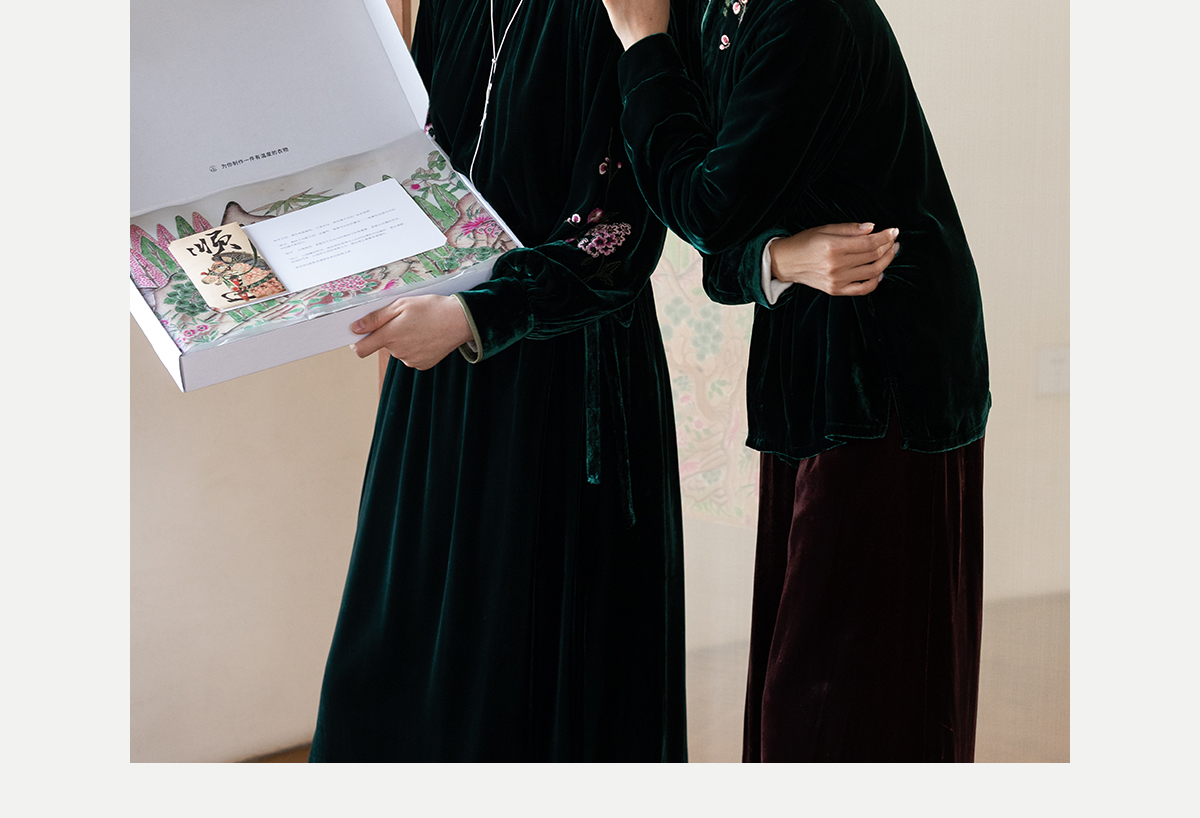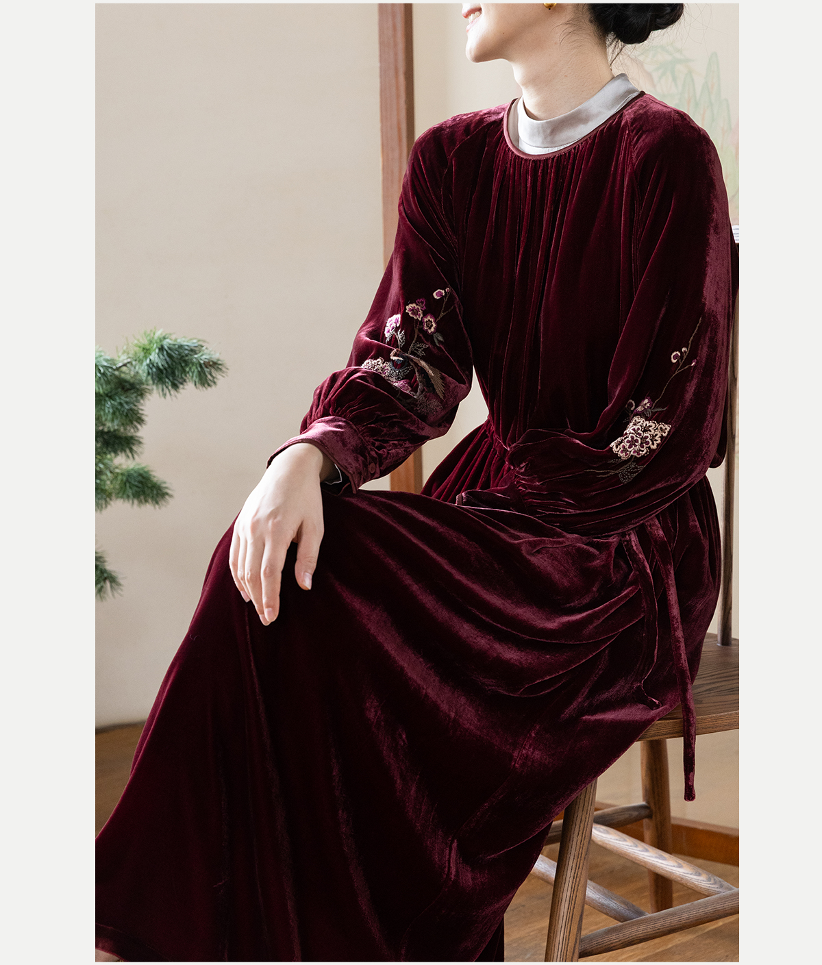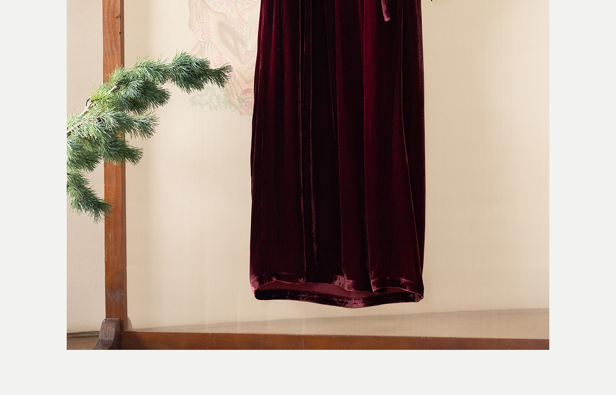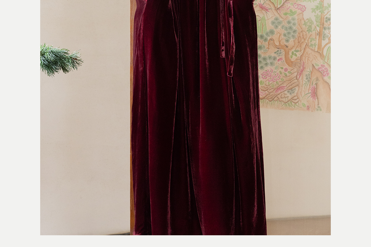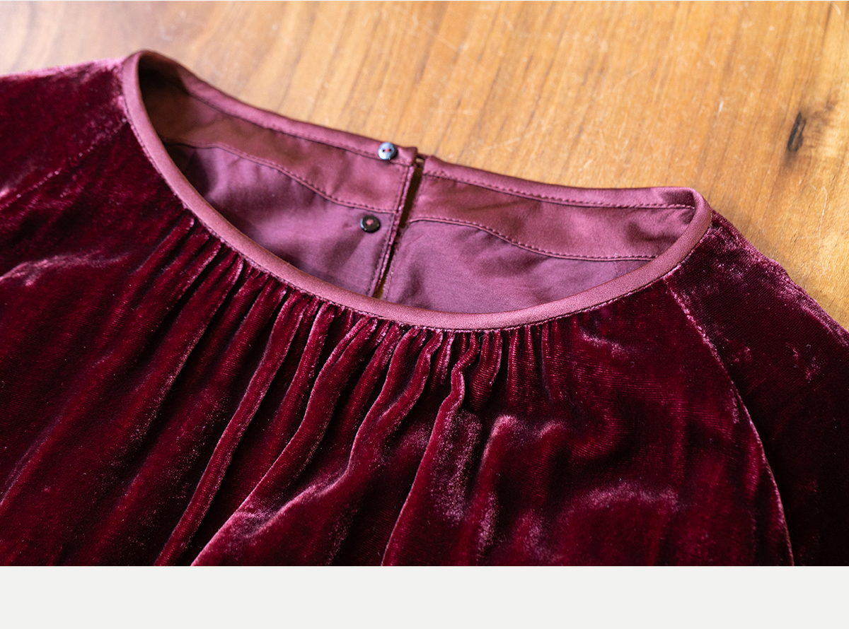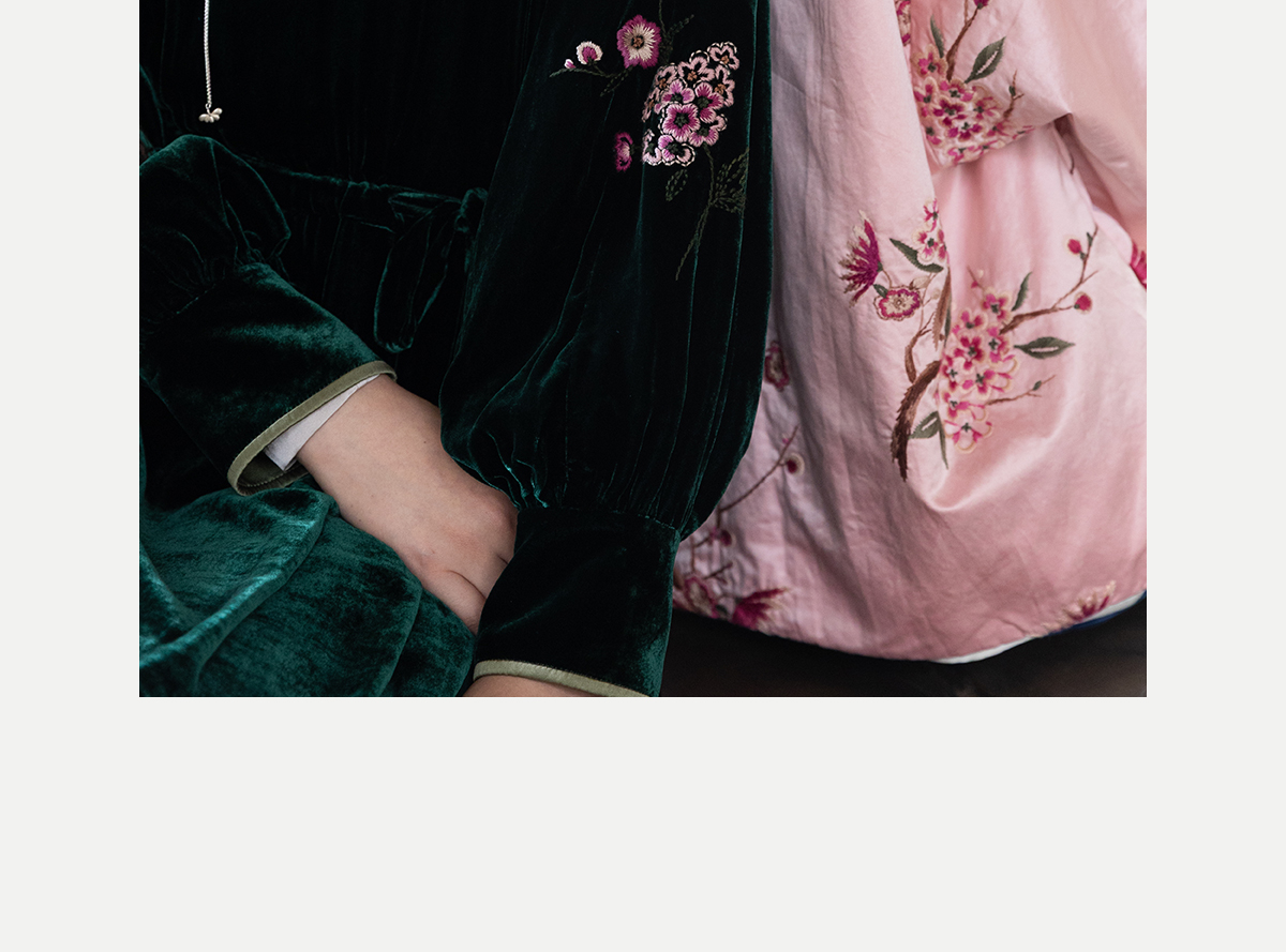 牧衣游原创 丝绒手工刺绣连衣裙新款宽松气质圆领中式长裙 月谣