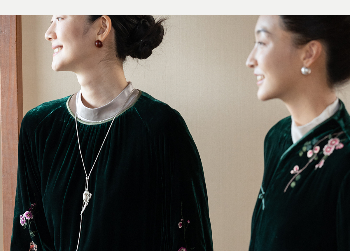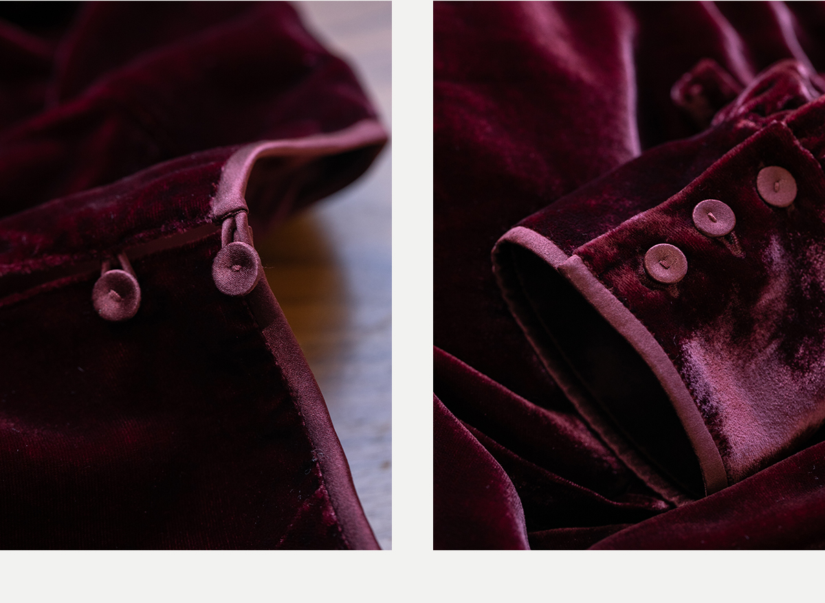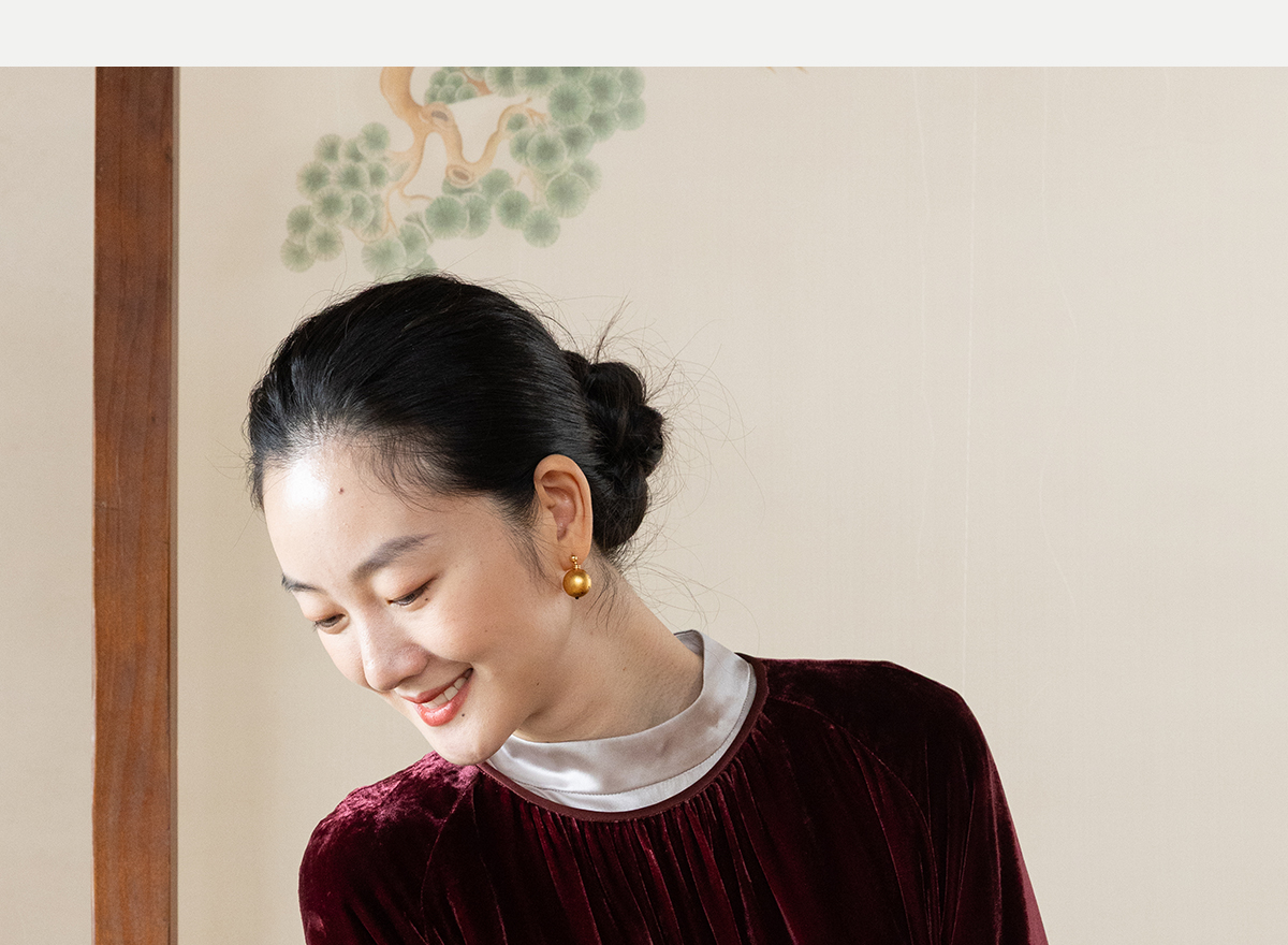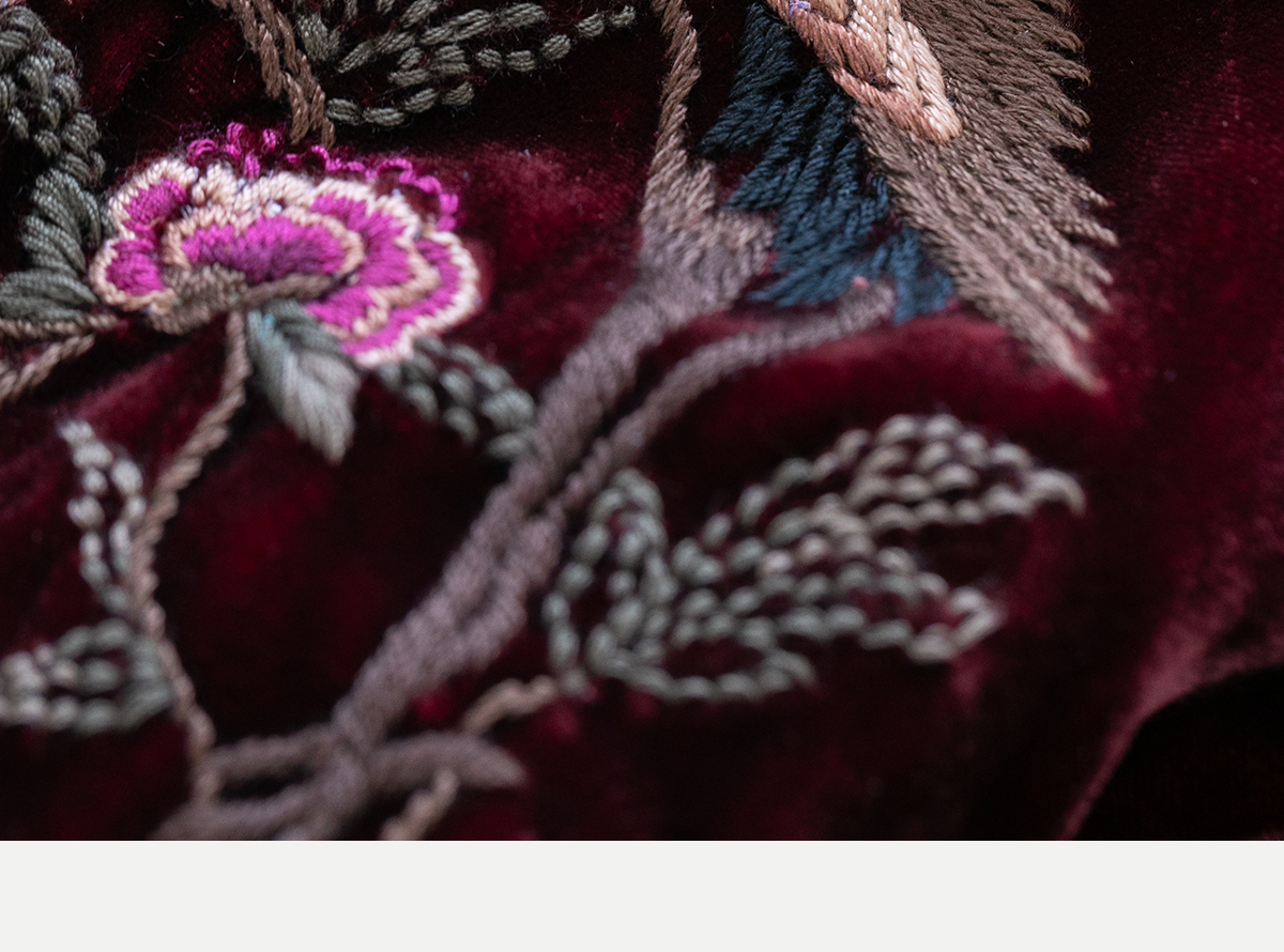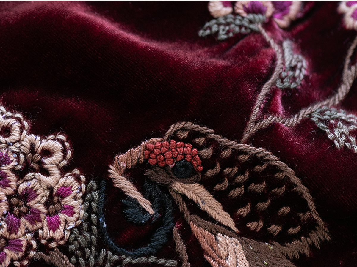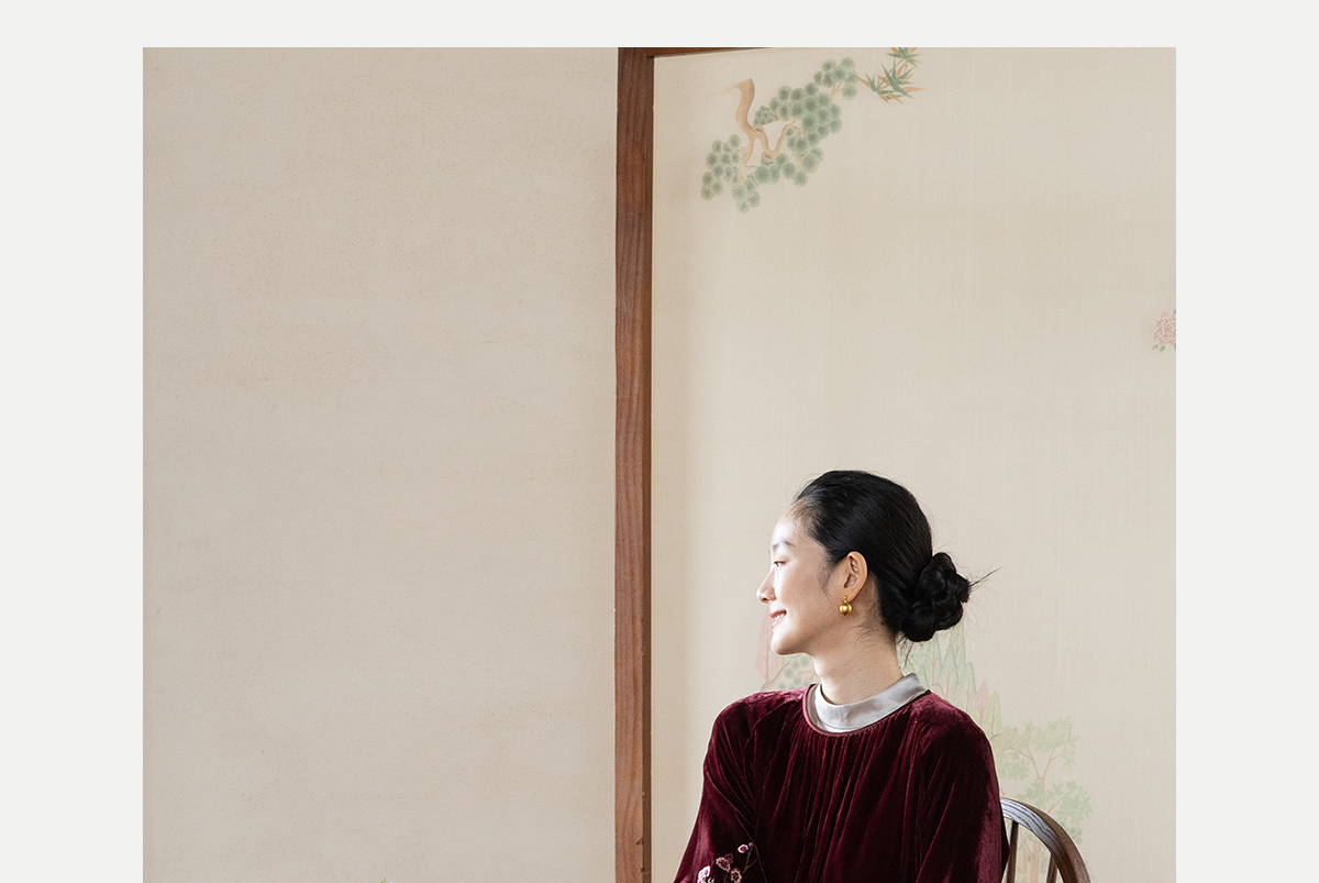 牧衣游原创 丝绒手工刺绣连衣裙新款宽松气质圆领中式长裙 月谣
