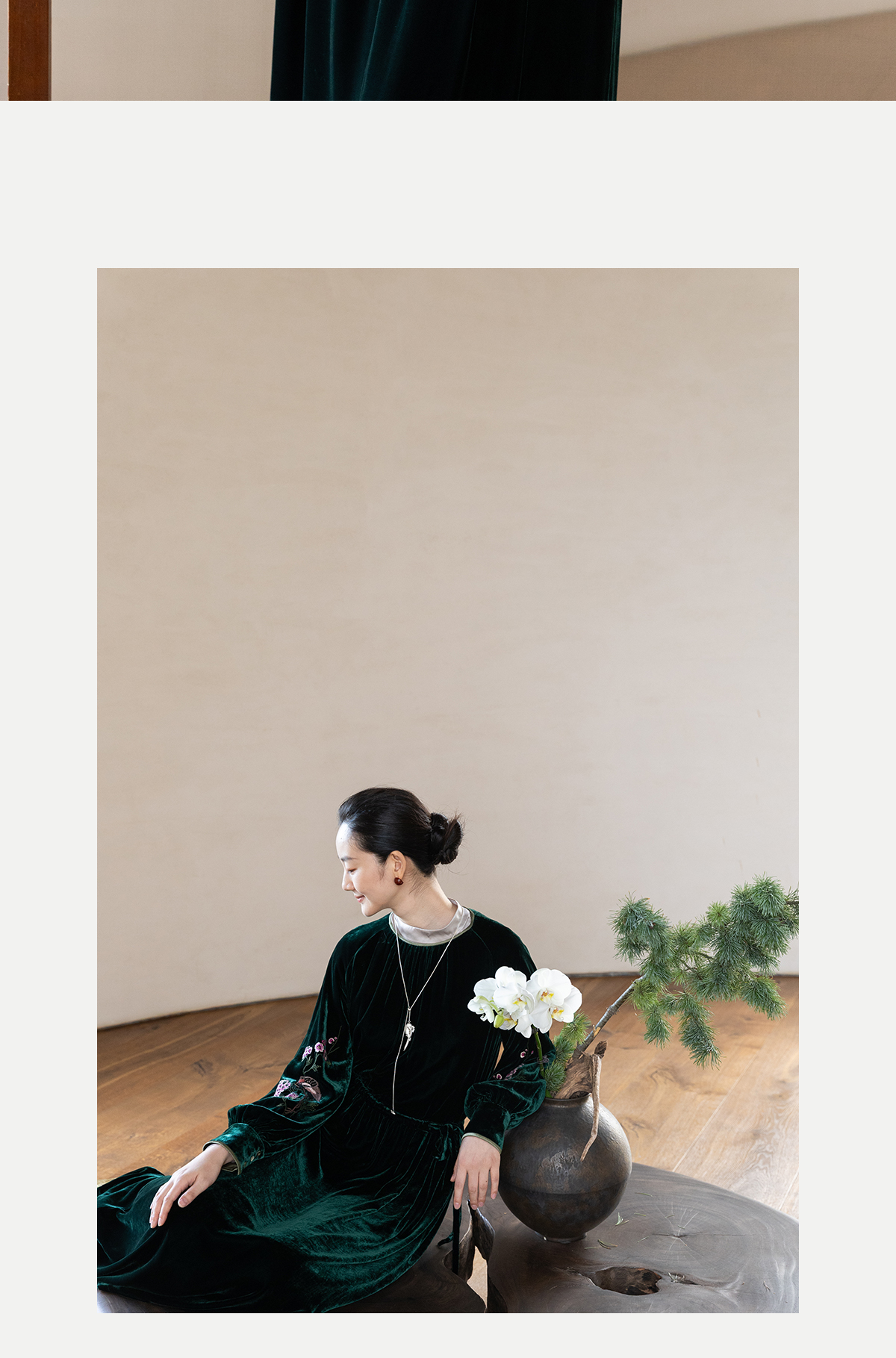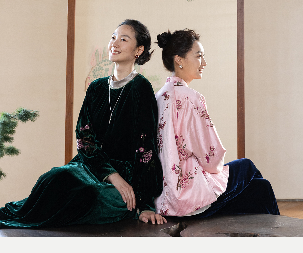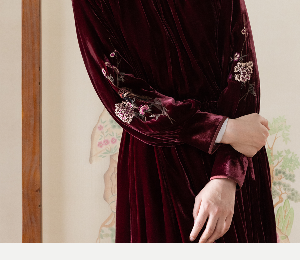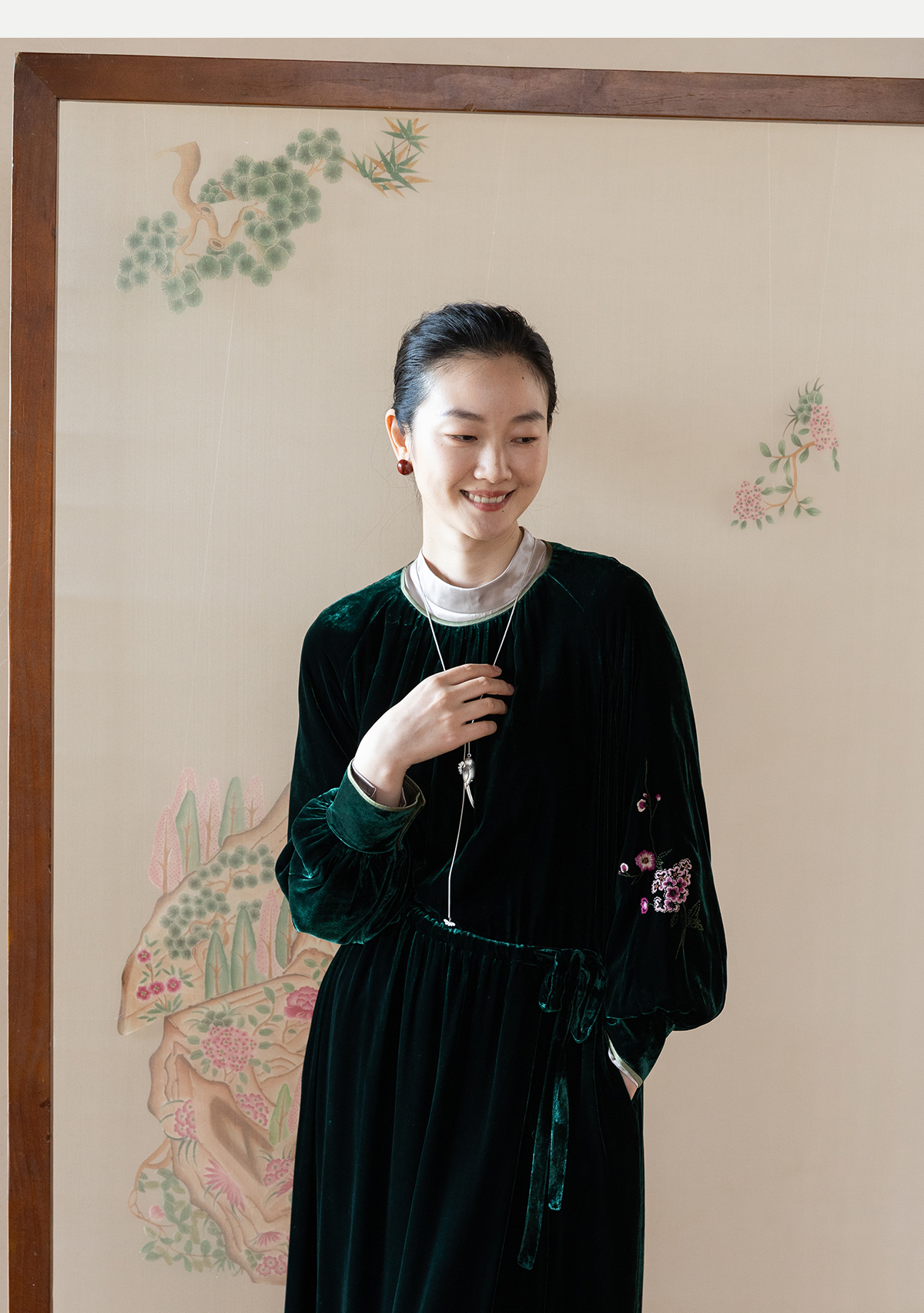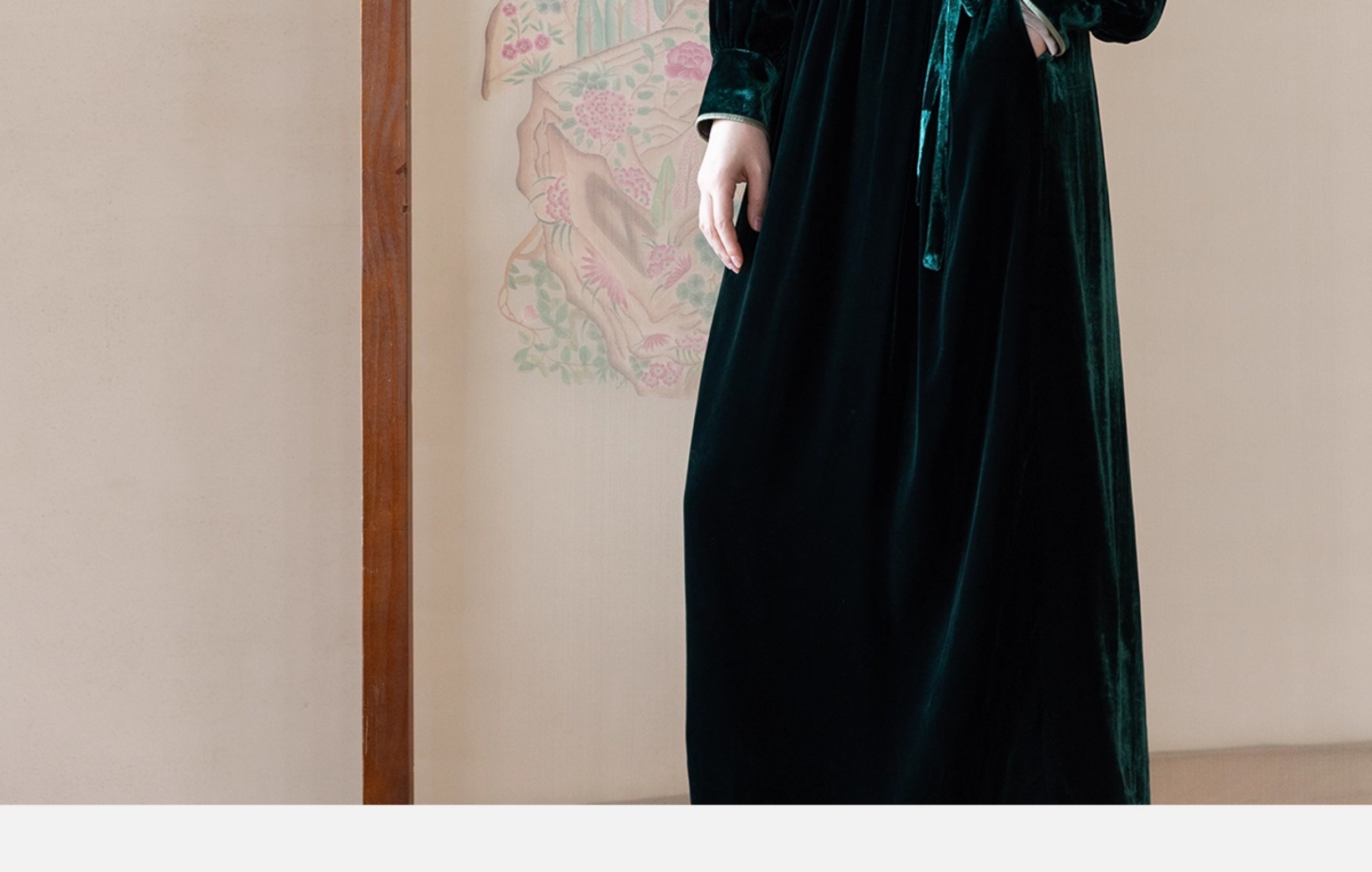 牧衣游原创 丝绒手工刺绣连衣裙新款宽松气质圆领中式长裙 月谣