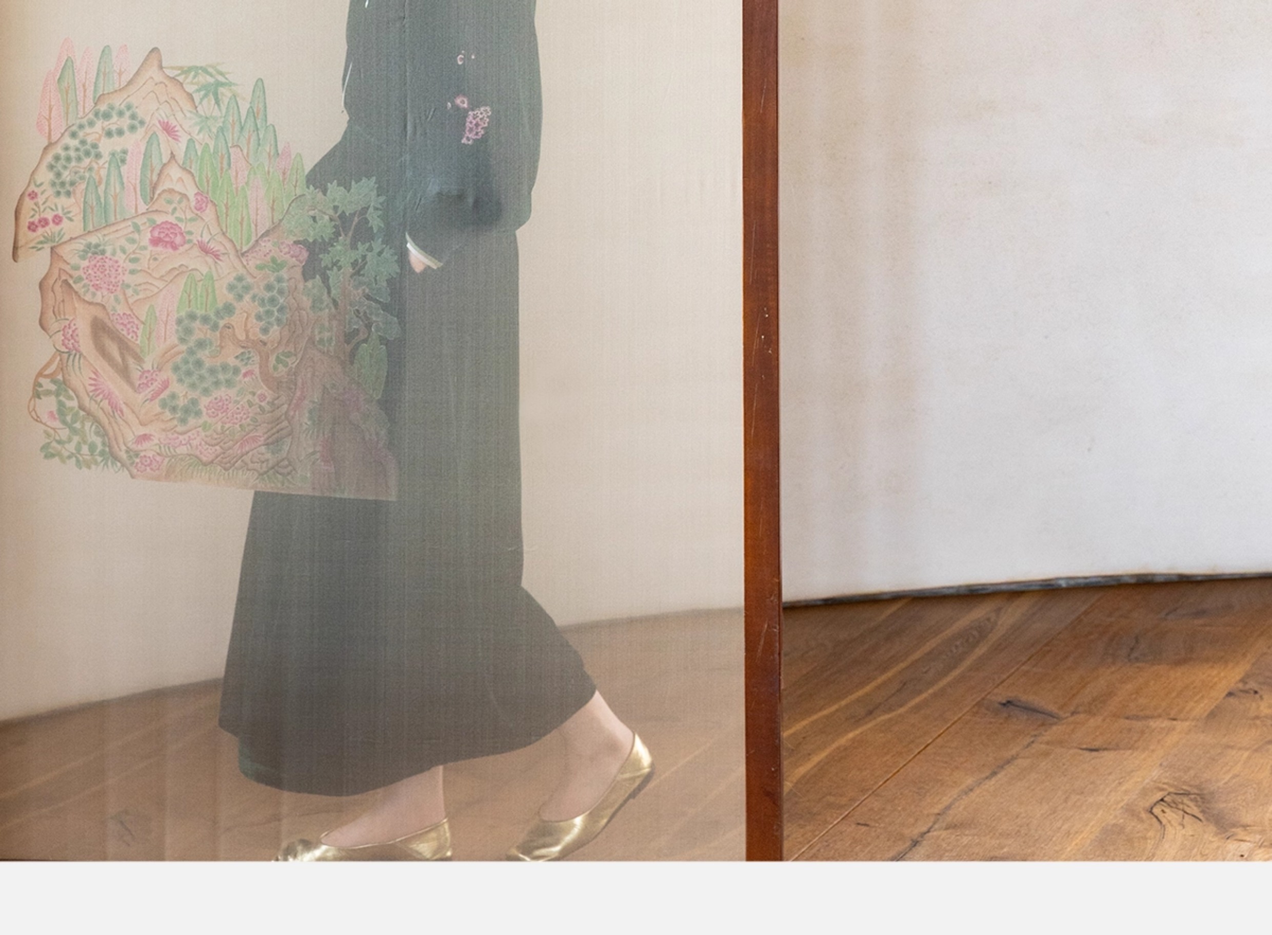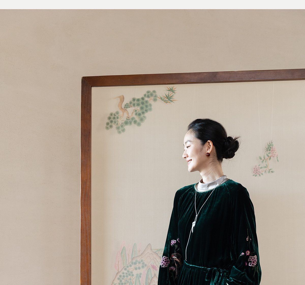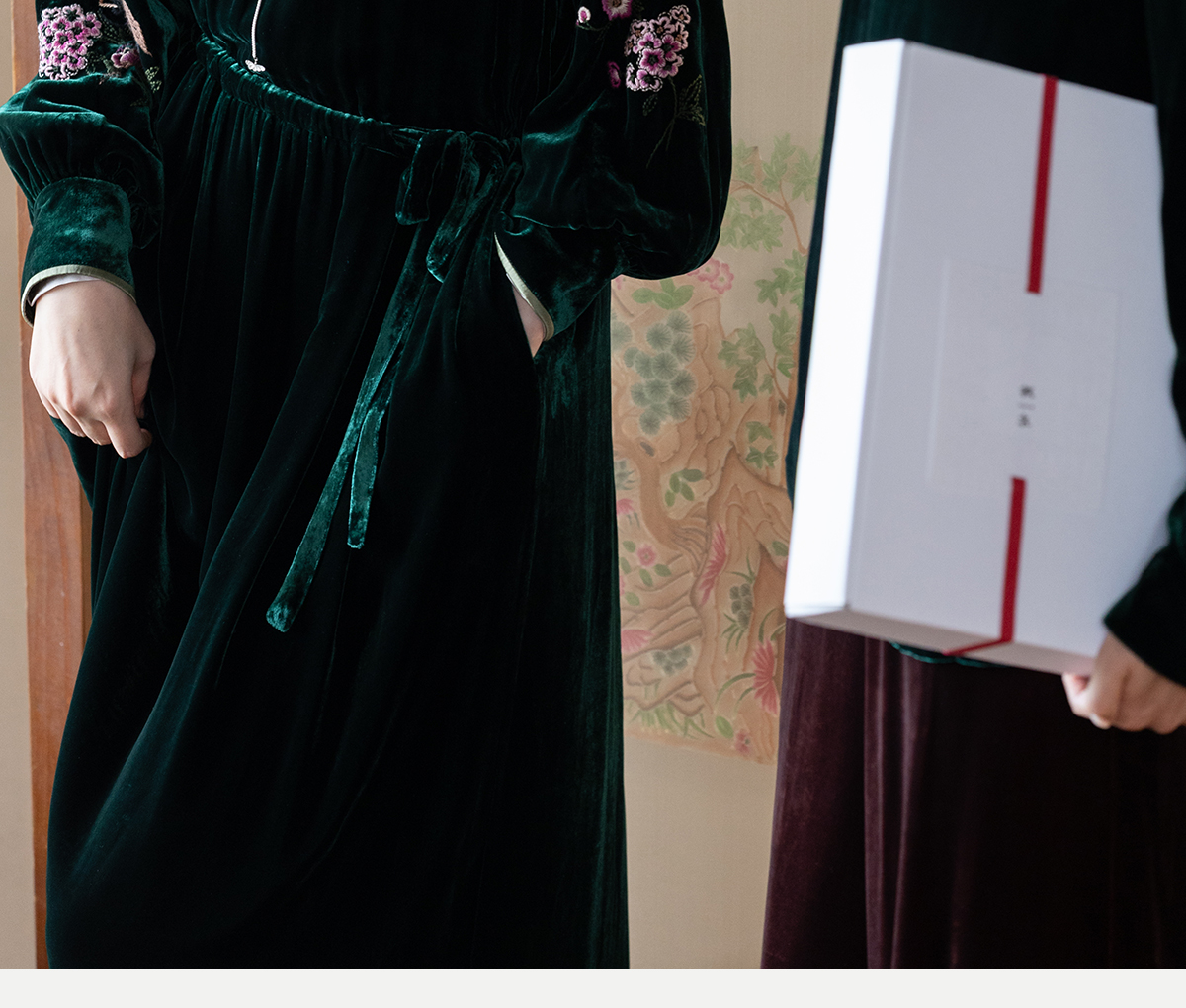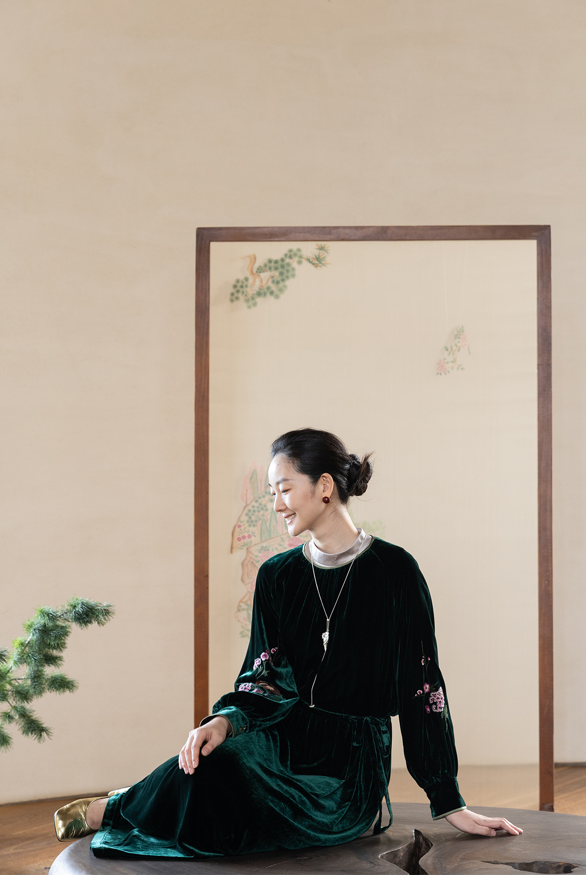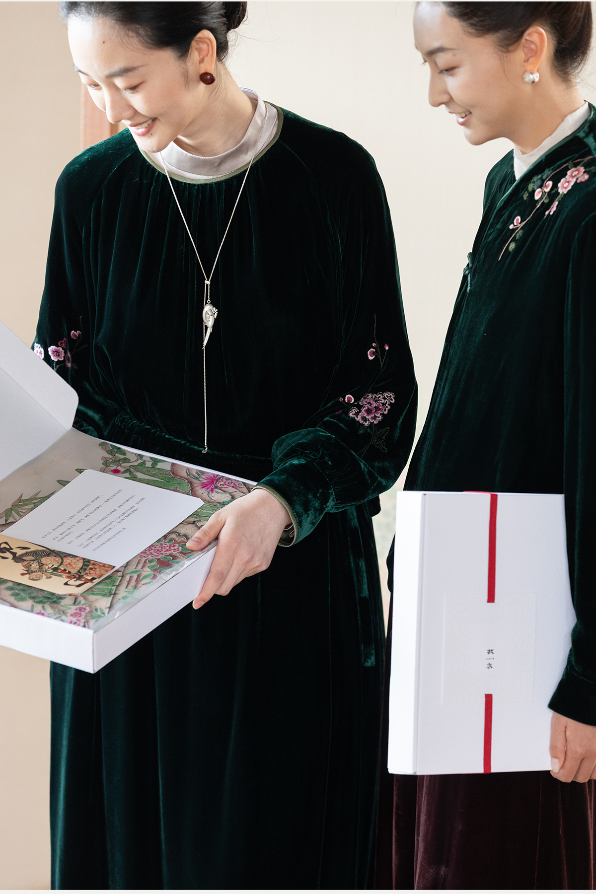 牧衣游原创 丝绒手工刺绣连衣裙新款宽松气质圆领中式长裙 月谣
