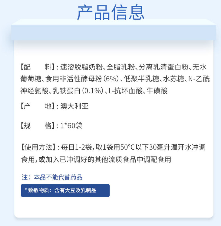 TLAMEE提拉米 乳铁蛋白调制乳粉 A2β-酪蛋白奶源60g