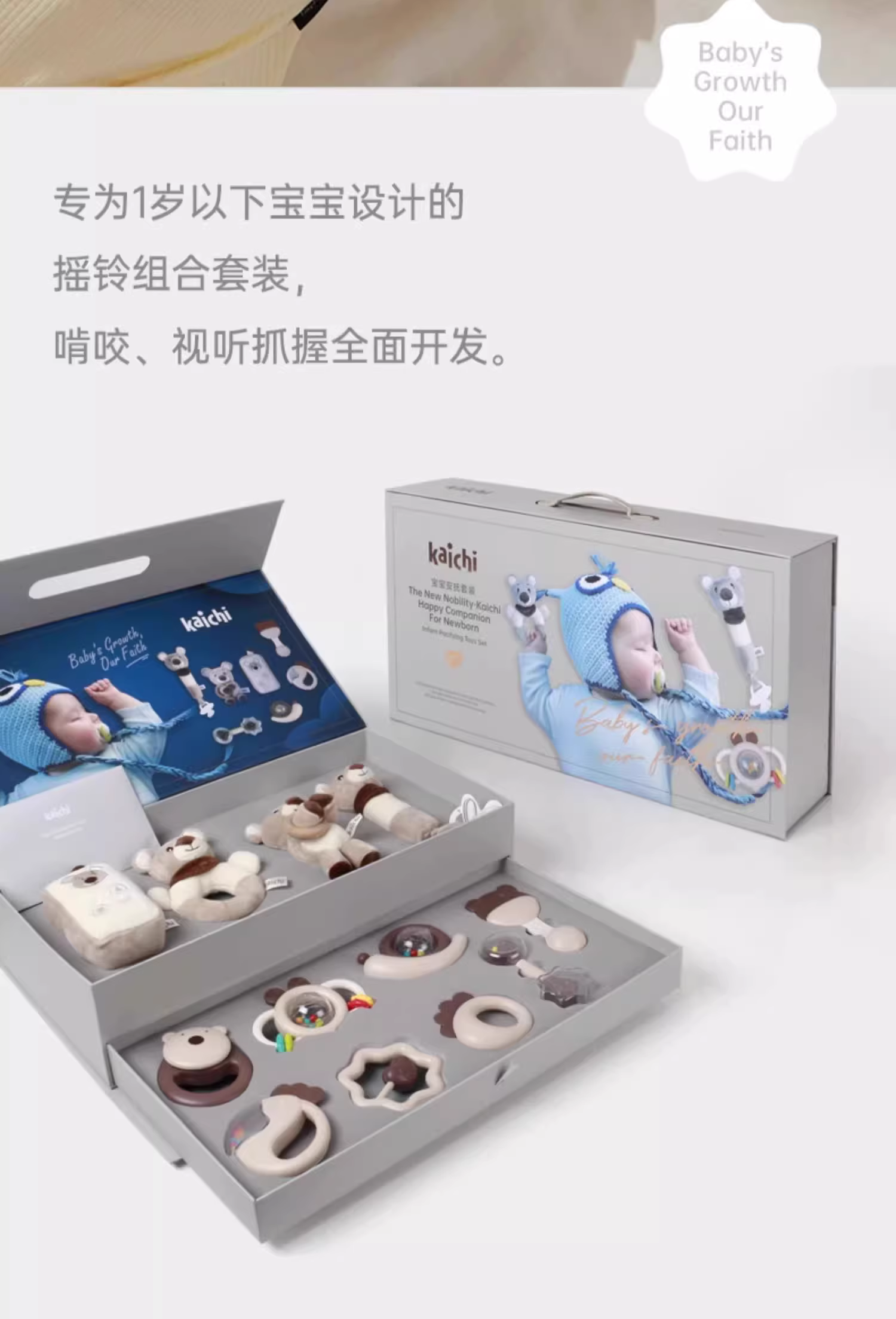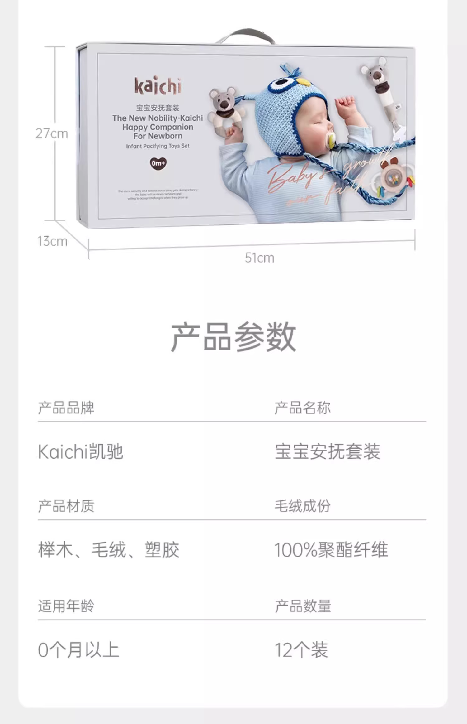 kaichi凯驰新生婴儿安抚套装礼盒0-1岁满3月宝宝毛绒玩具摇铃礼物
