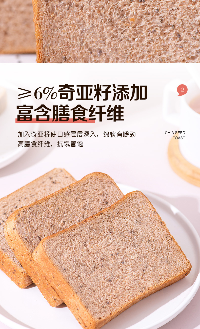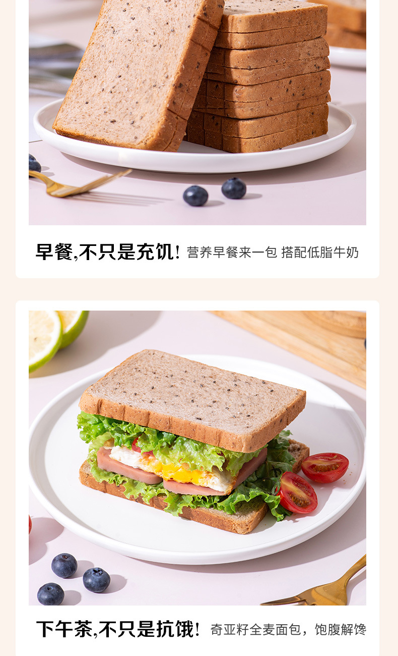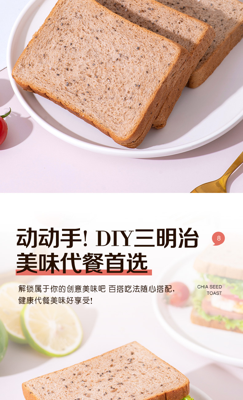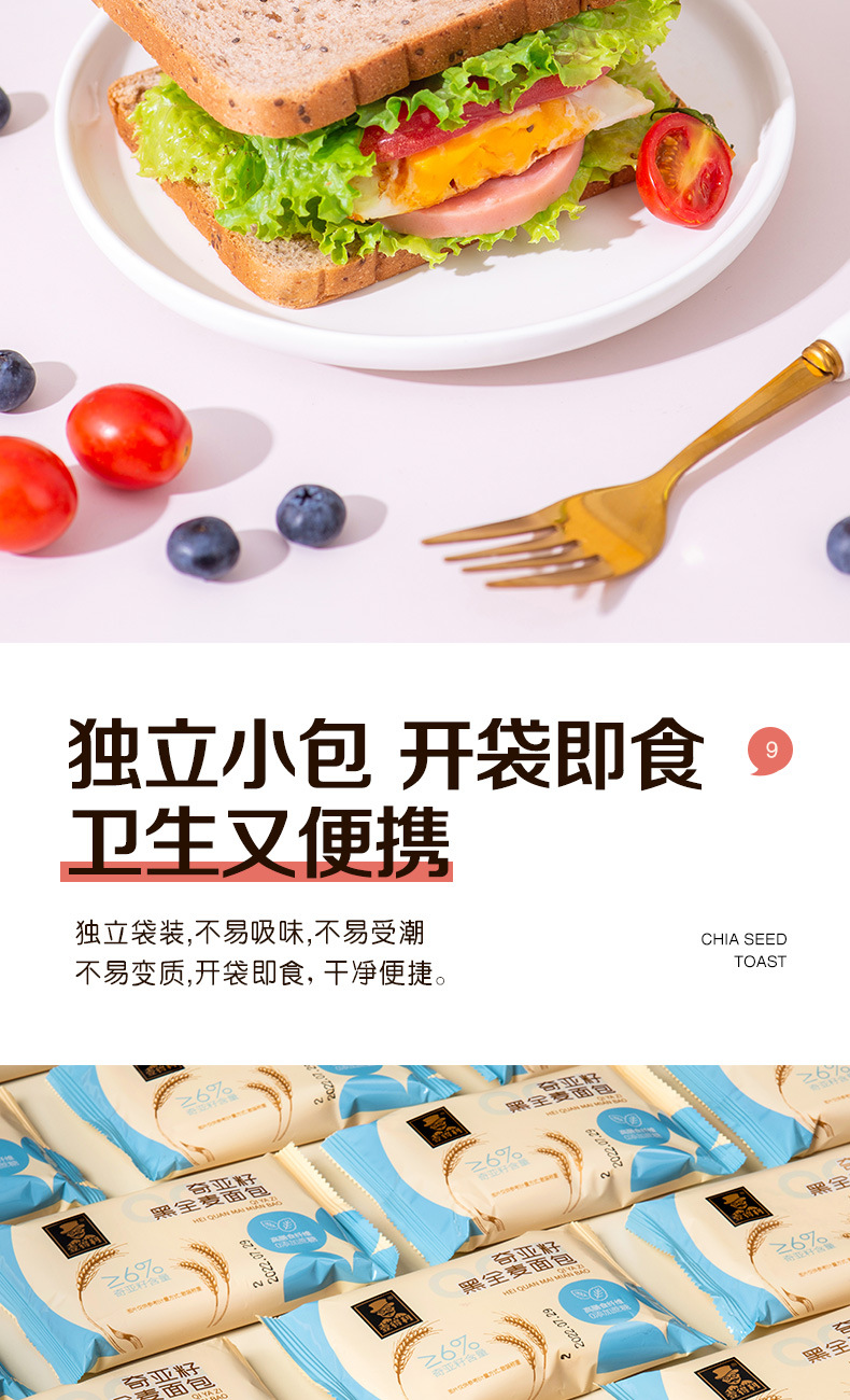 「独立包装」奇亚籽黑麦全麦面包吐司 代餐饱腹糕点零食