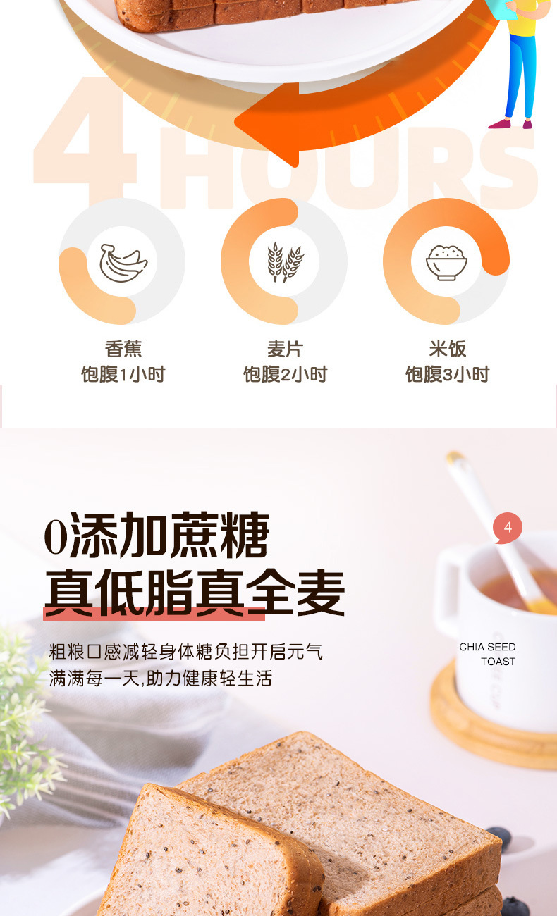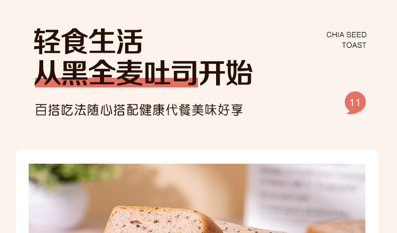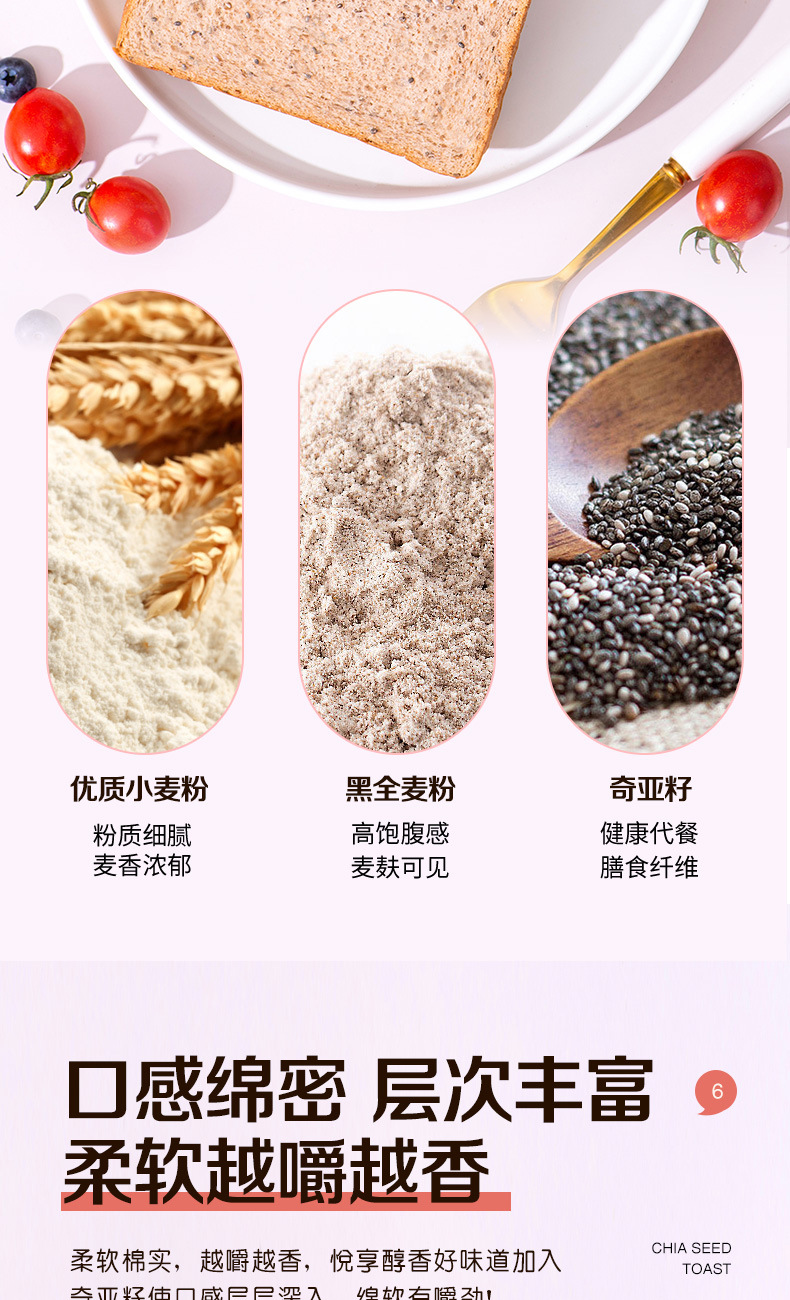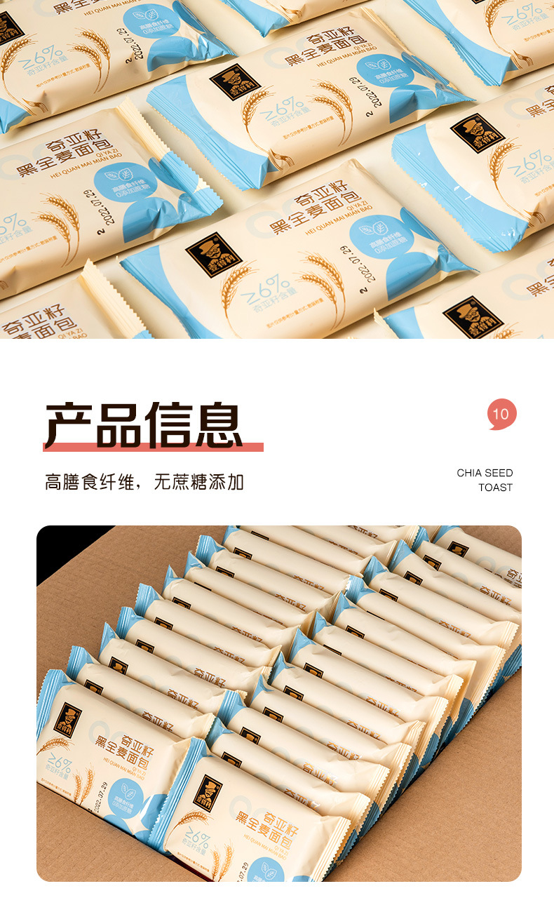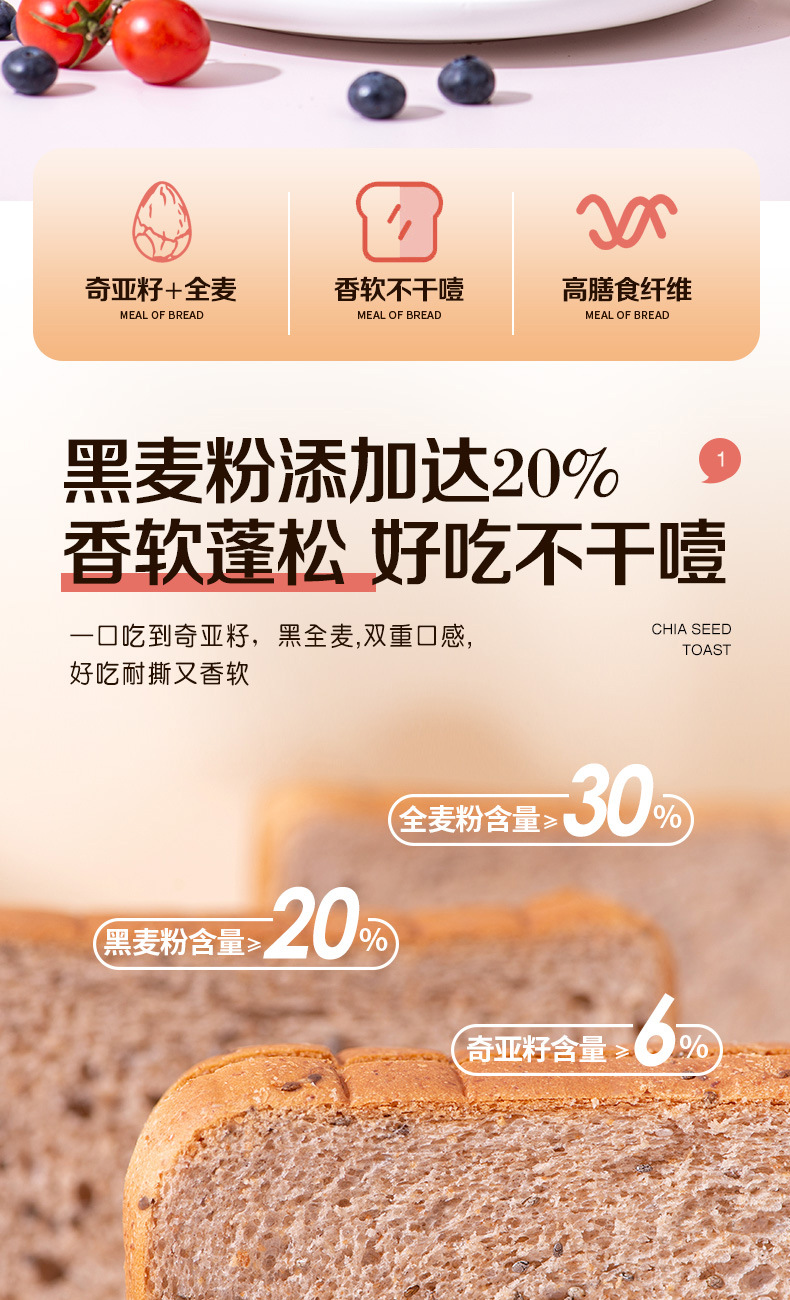 「独立包装」奇亚籽黑麦全麦面包吐司 代餐饱腹糕点零食