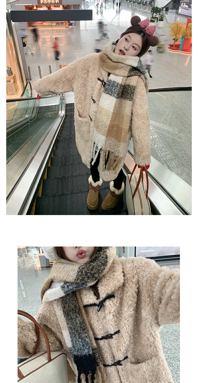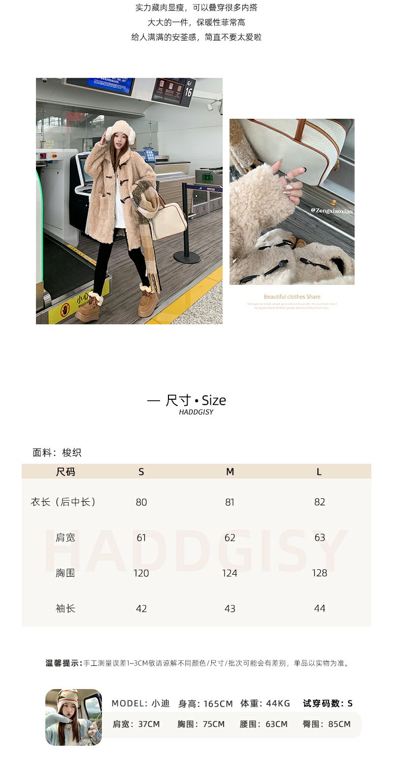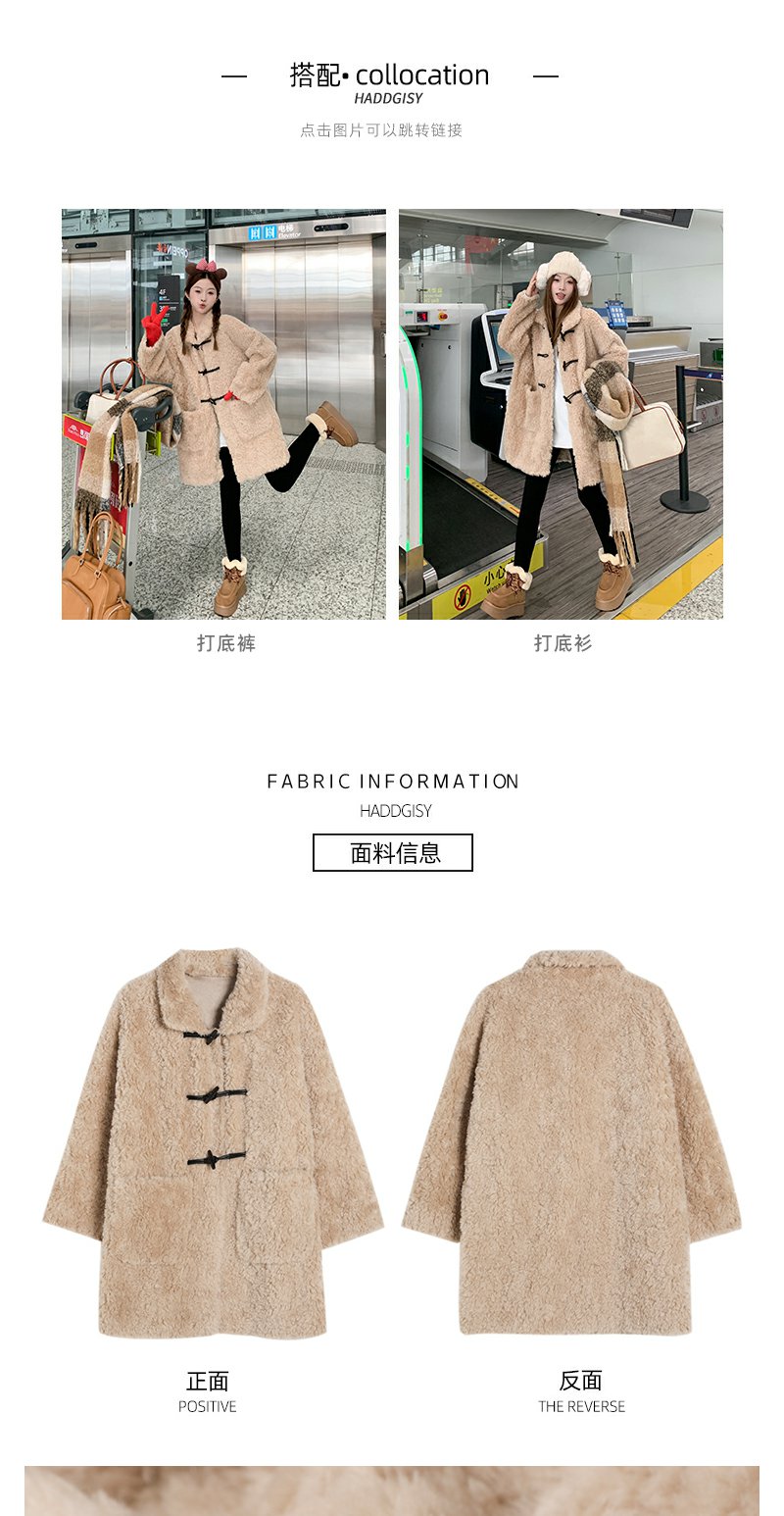 <曾小咸推荐>杏色翻领毛毛牛角扣中长款外套