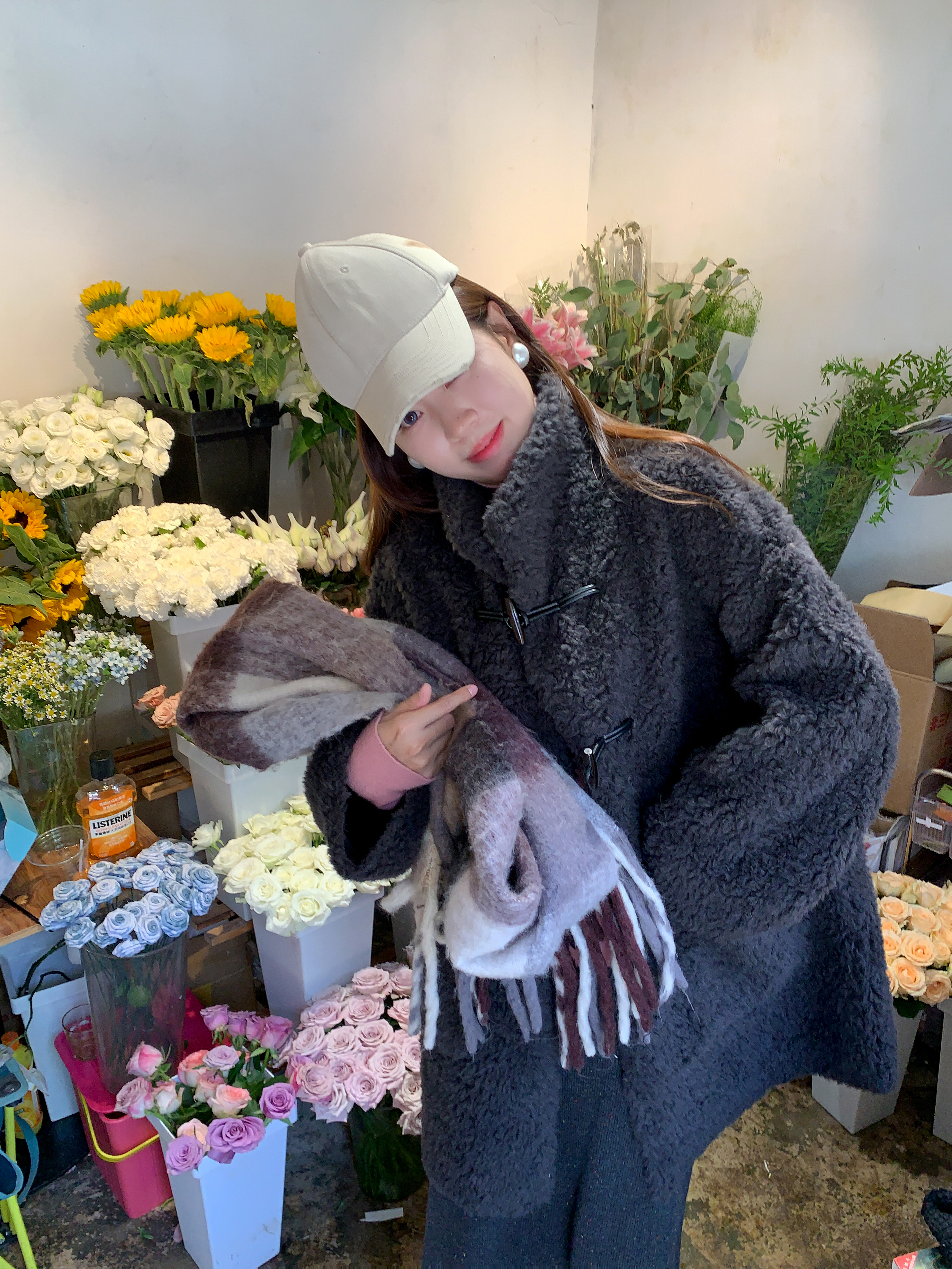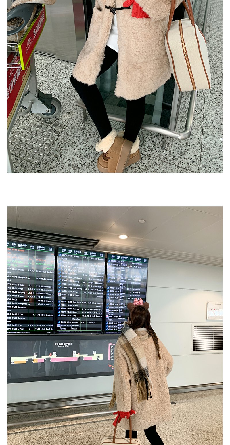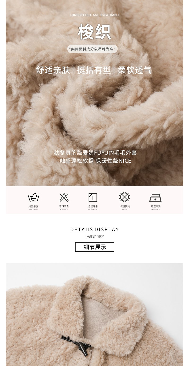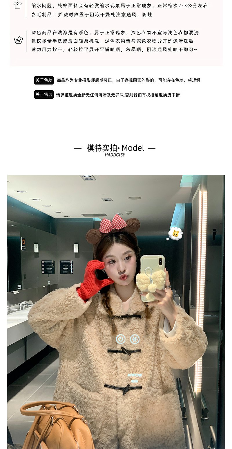<曾小咸推荐>杏色翻领毛毛牛角扣中长款外套
