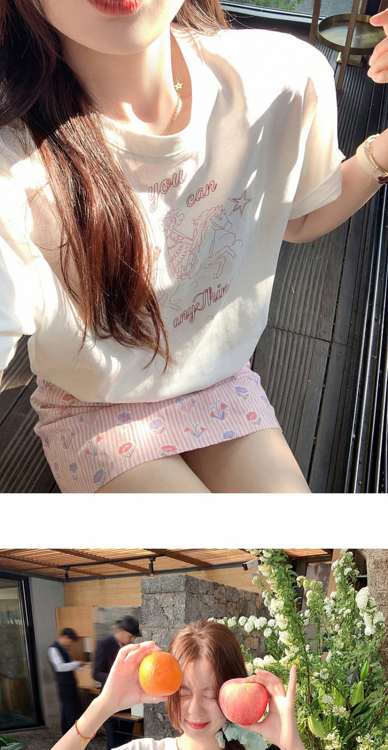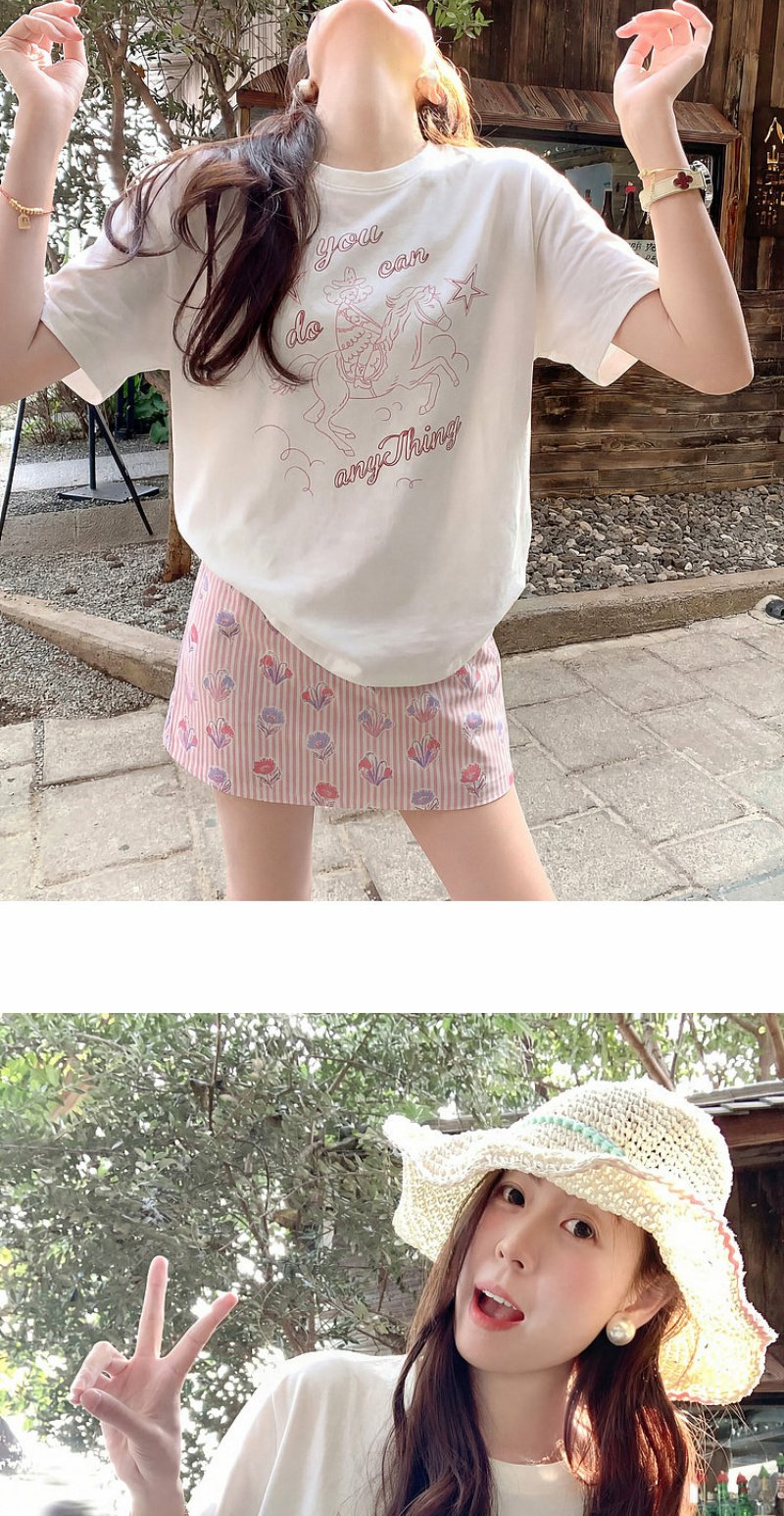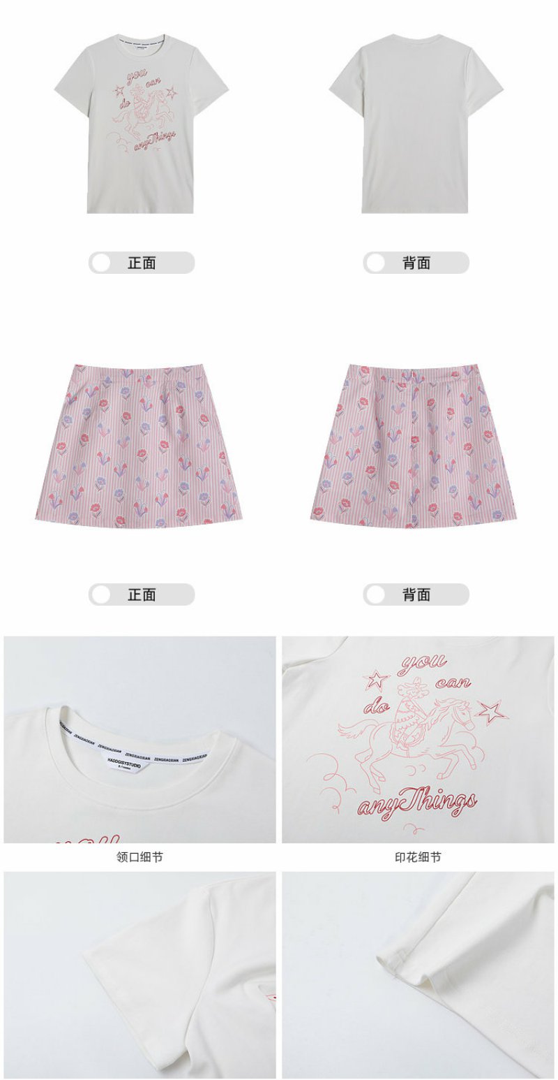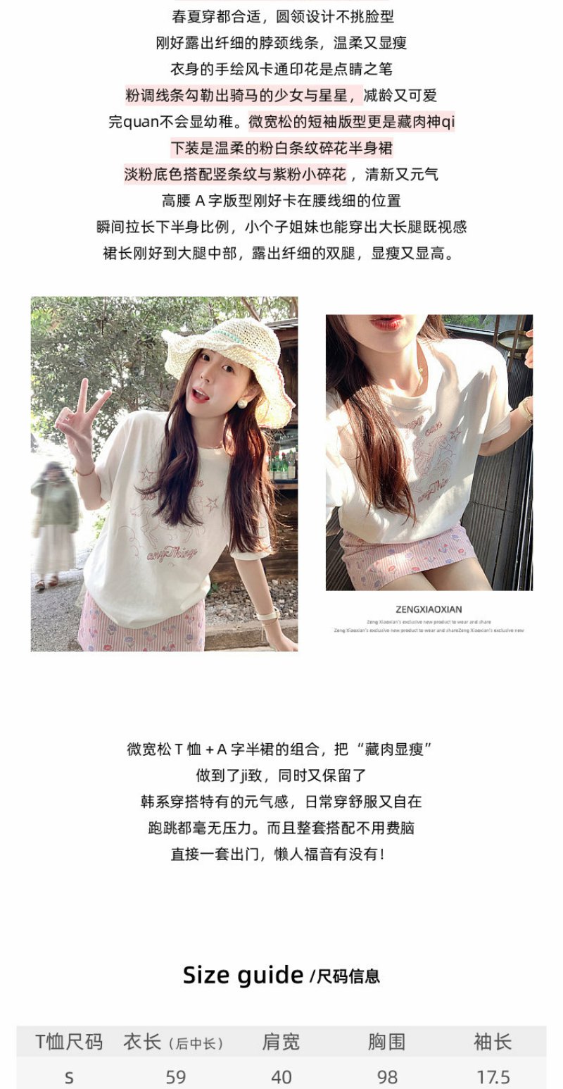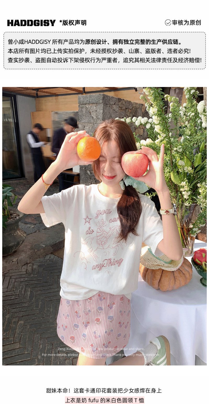 <曾小咸推荐>卡通印花圆领T恤条纹半身裙【预售7-15天发货】