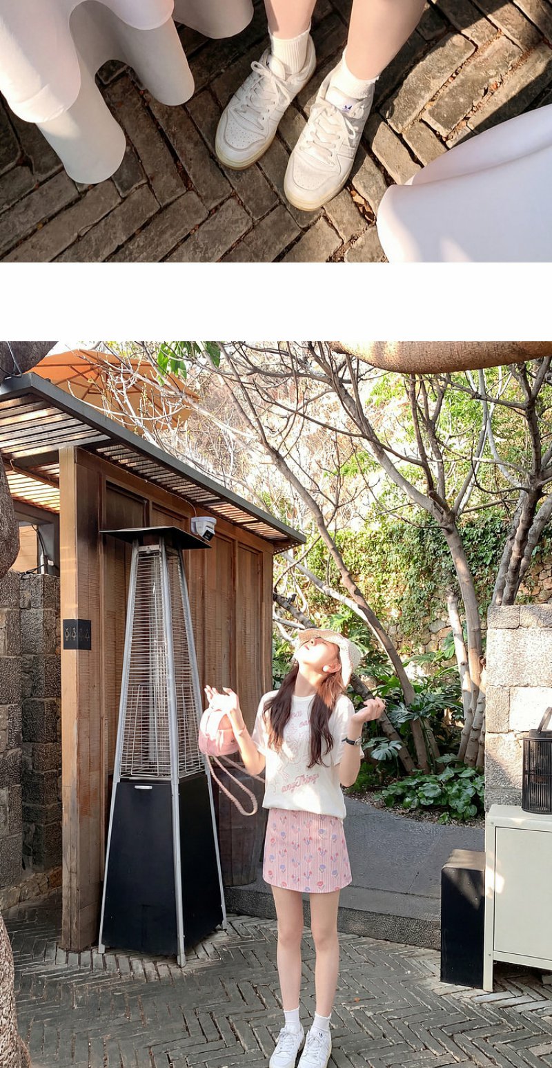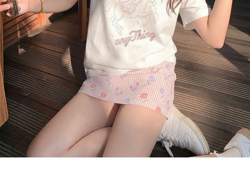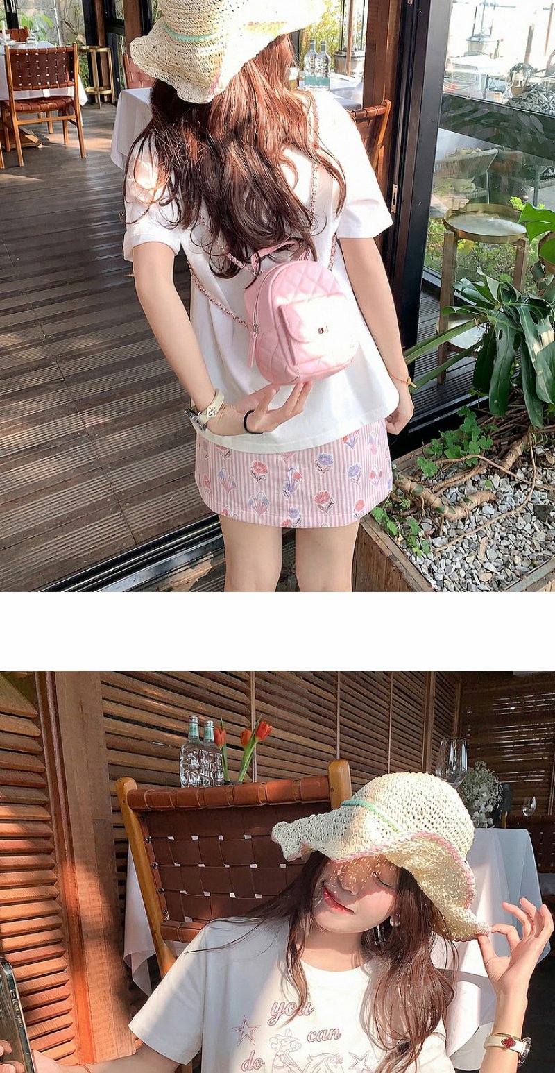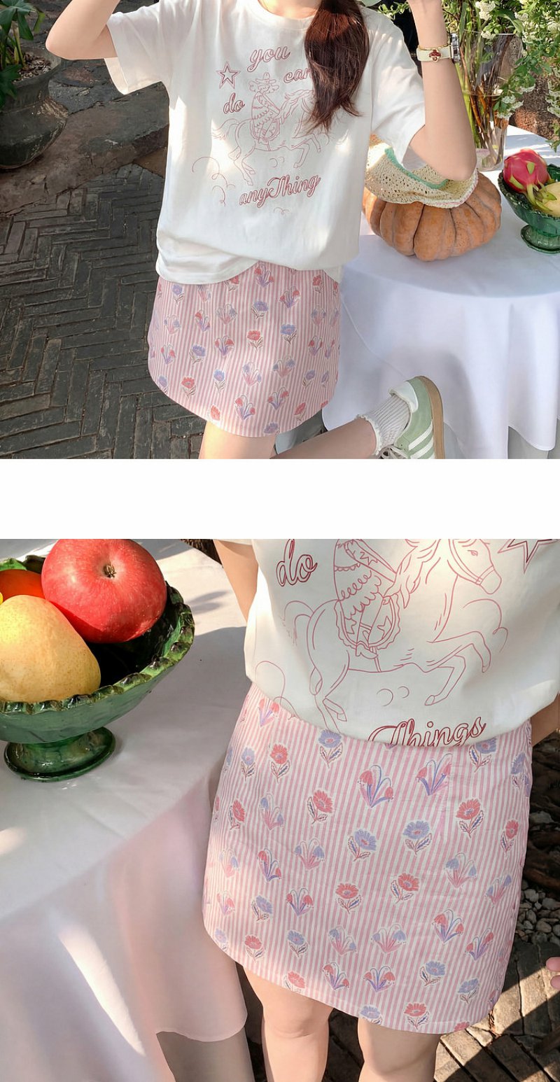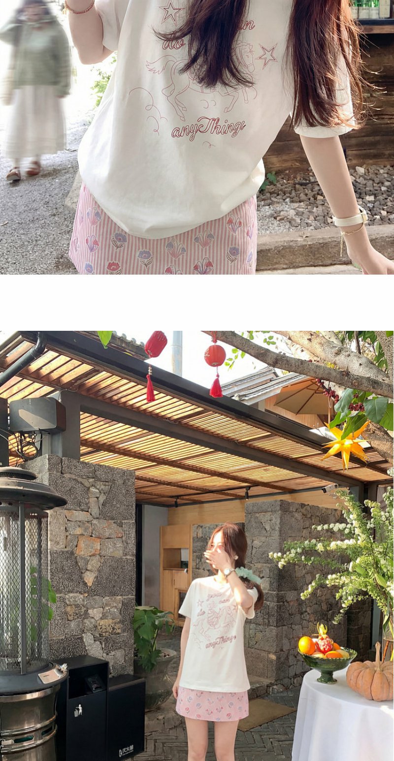 <曾小咸推荐>卡通印花圆领T恤条纹半身裙【预售7-15天发货】