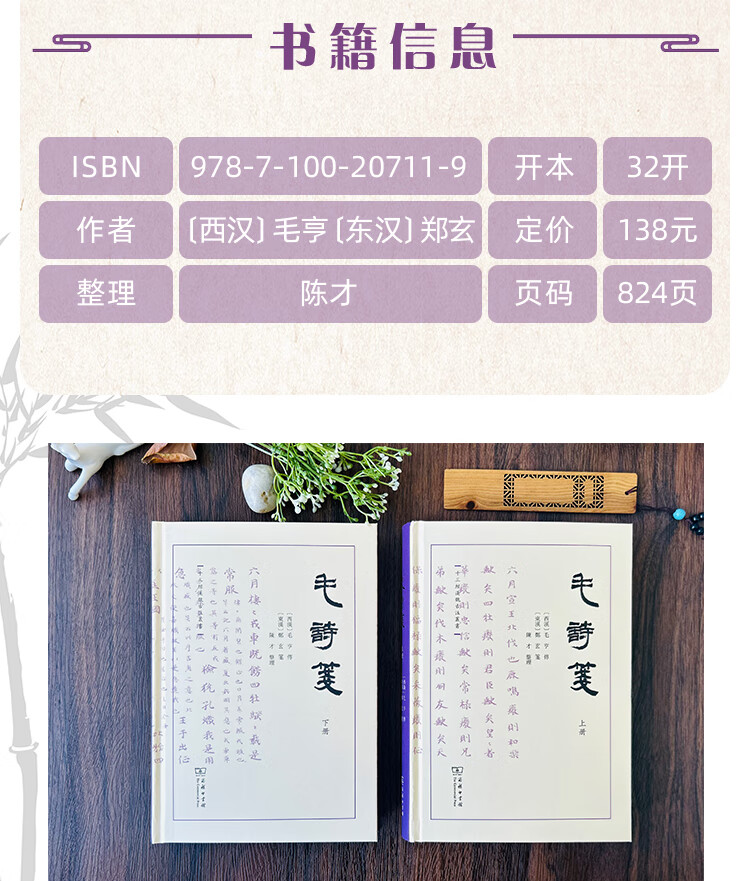 毛诗笺(全二册)(十三经汉魏古注丛书)(繁体横排) 〔西汉〕毛亨传,〔东汉〕郑玄笺,陈才整理 商务印书馆