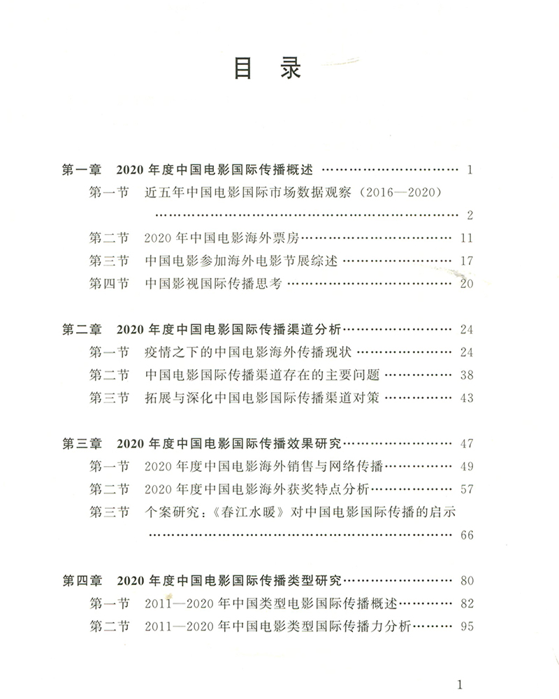 银皮书:2020中国电影国际传播年度报由告北京师范大学资深教授黄会林主编,北京电影学院杨远婴教授担任副主编,本书 以2020年中国电影在海外市场的整体传播状况为主要内容,具体包括包括中国电影海外发行概览、中国电影国际传播路径分析、中国电影国际传播类型分析、中国电影国际传播效果分析、中国电影国际传播的问题与思考等。 1.目前关于中国电影海外传播的专业书籍十分稀缺,《银皮书》作为延续9年的系列书籍,每年为电影学界、业界提供权威数据和扎实分析,具有一定的不可替代性。 2.中国电影海外传播作为近年来政府工作的重点、业界关注的热点、学界研究的焦点,引起持续的热烈讨论,《银皮书》聚焦这一重要话题,时效性、话题性强。 3.《银皮书》涉及大量具体案例和分析,将为中国电影业界的策划、创作、发行等提供重要参考。