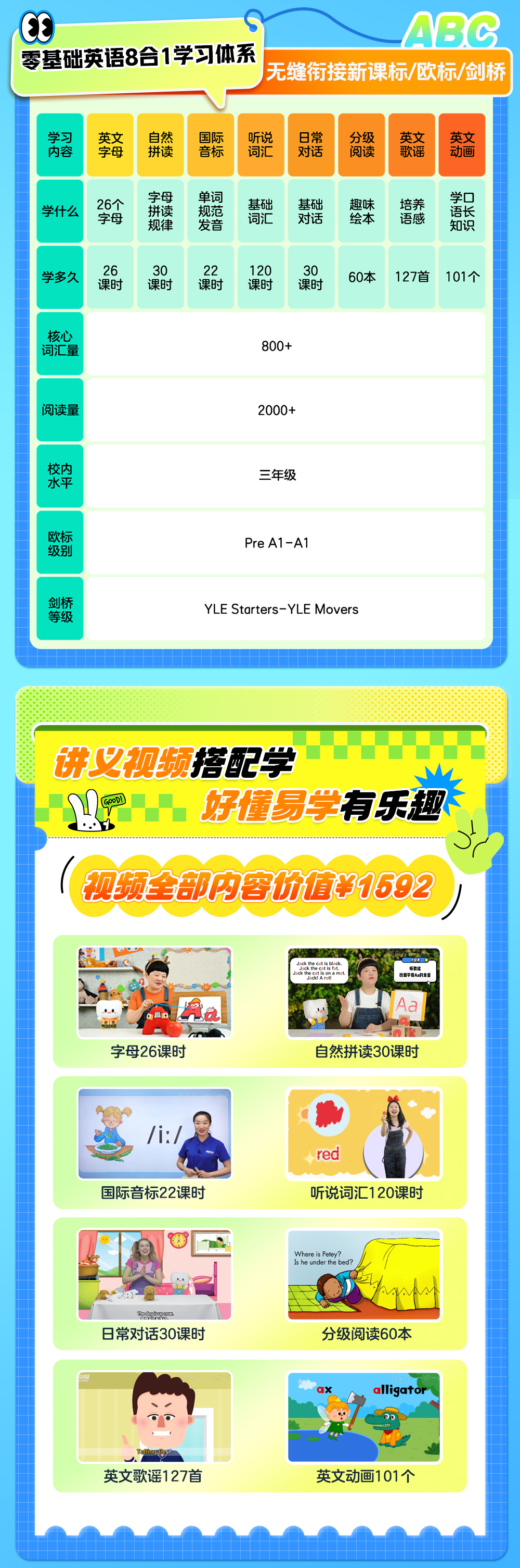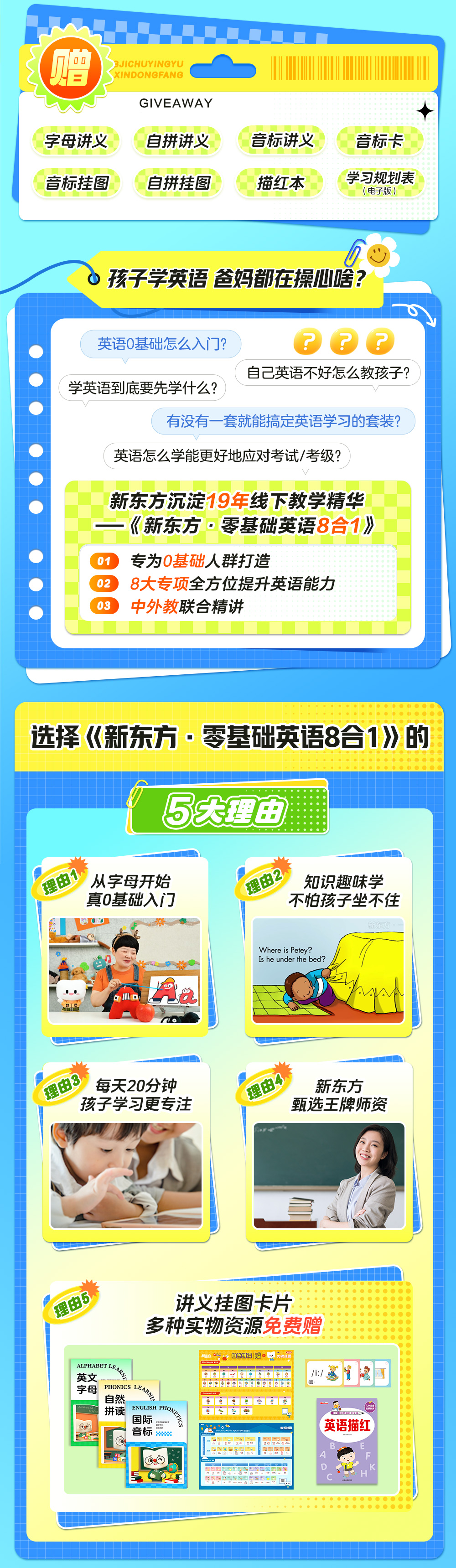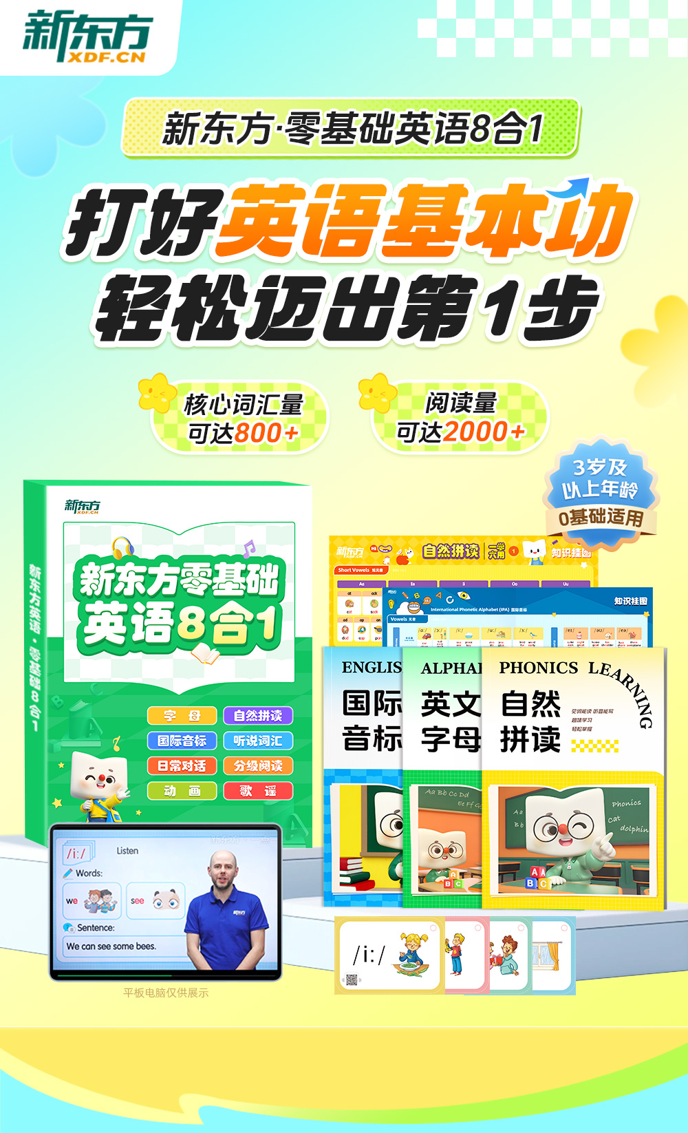 【新东方】零基础八合一(自然拼读+音标+听说词汇+拓展词汇+日常对话+分级绘本+动画 +歌谣)