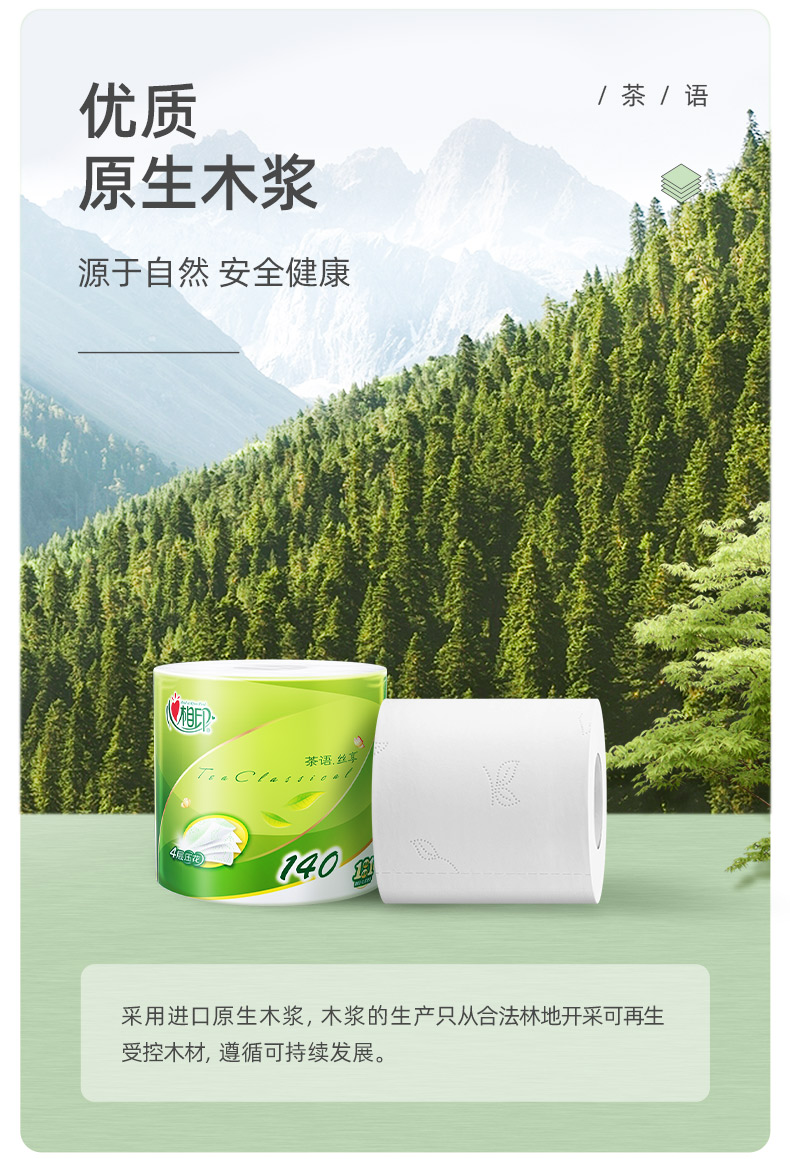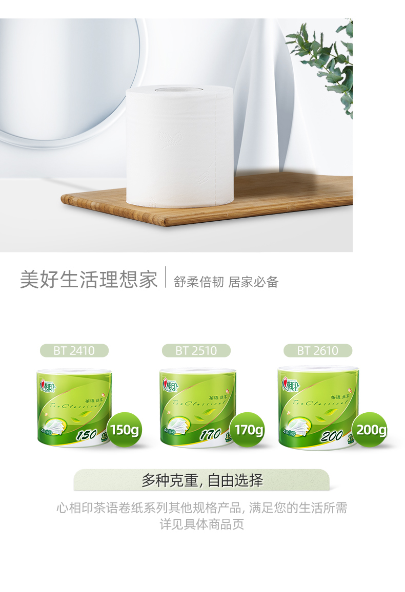 【日化洗护】心相印茶语经典140克27粒装四层茶叶压花卷筒卫生纸BT927 QSH