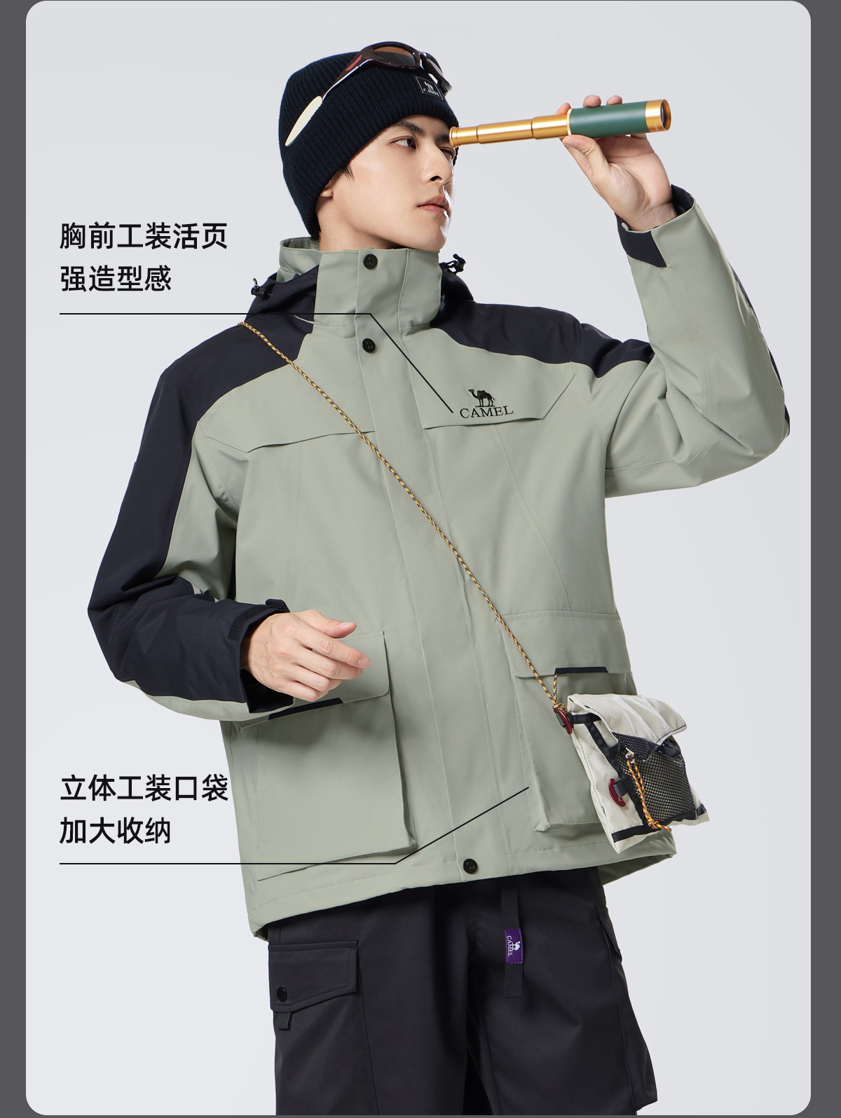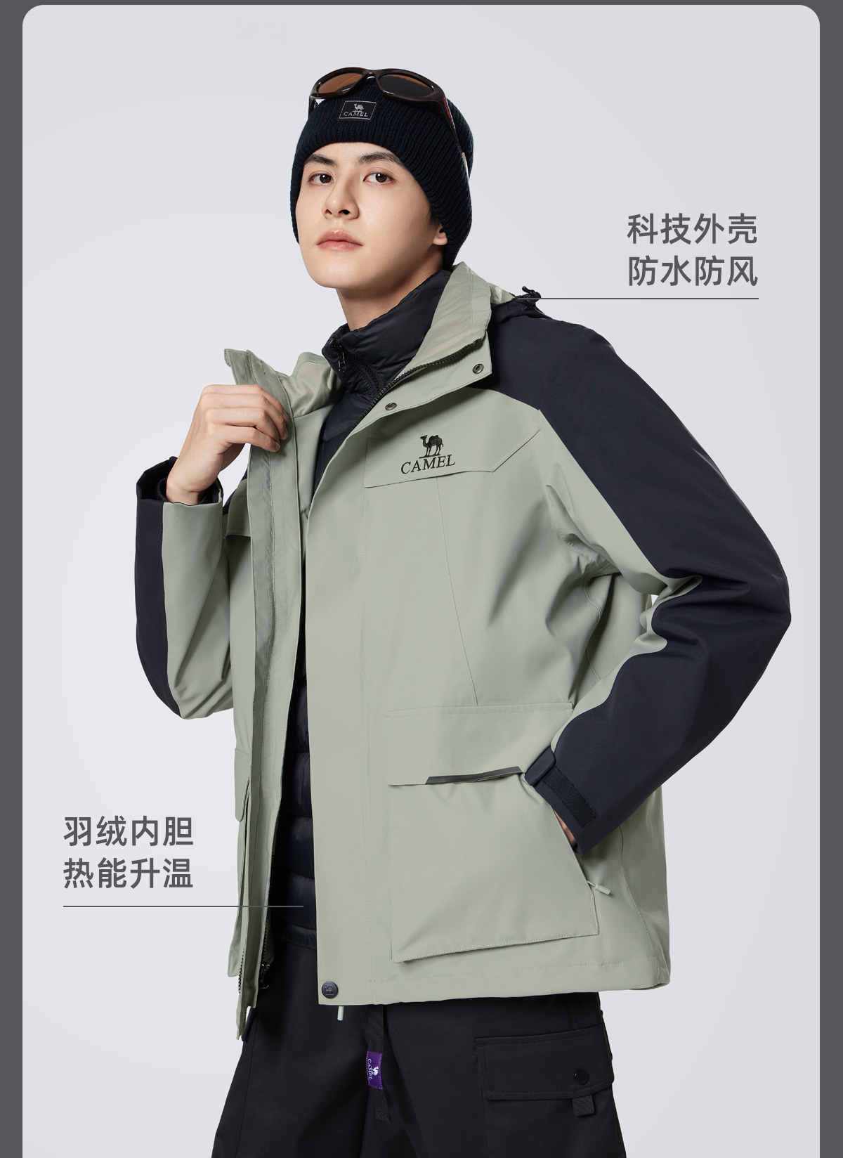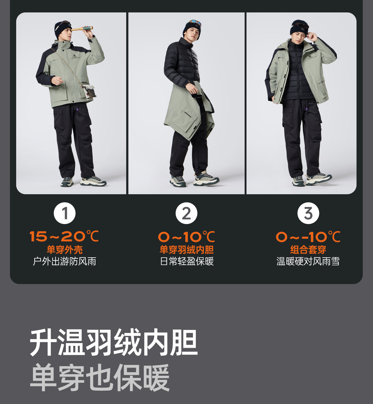 骆驼男装三合一羽绒冲锋衣男秋冬季2025新款工装加厚登山服外套男 M34CA45637