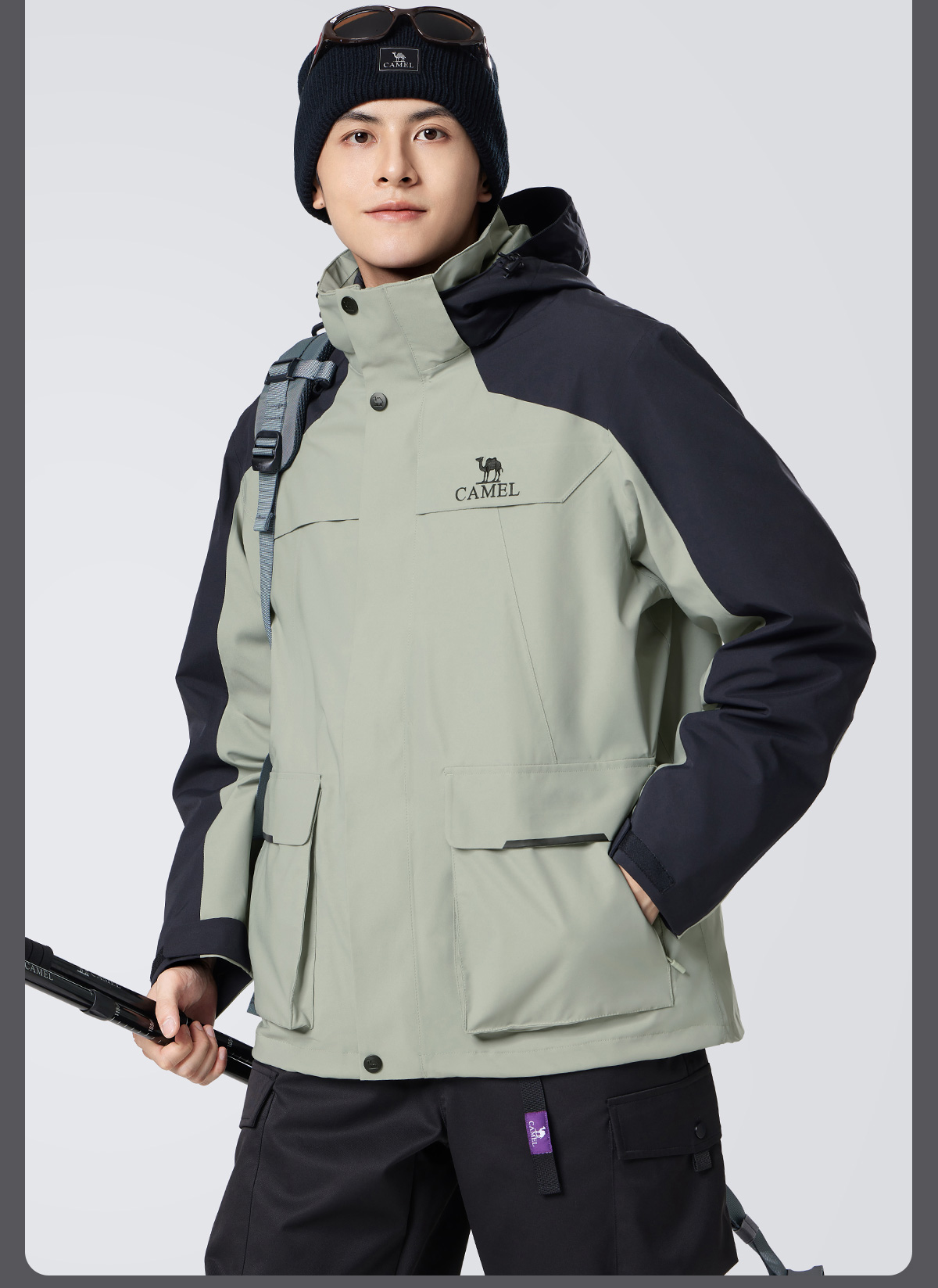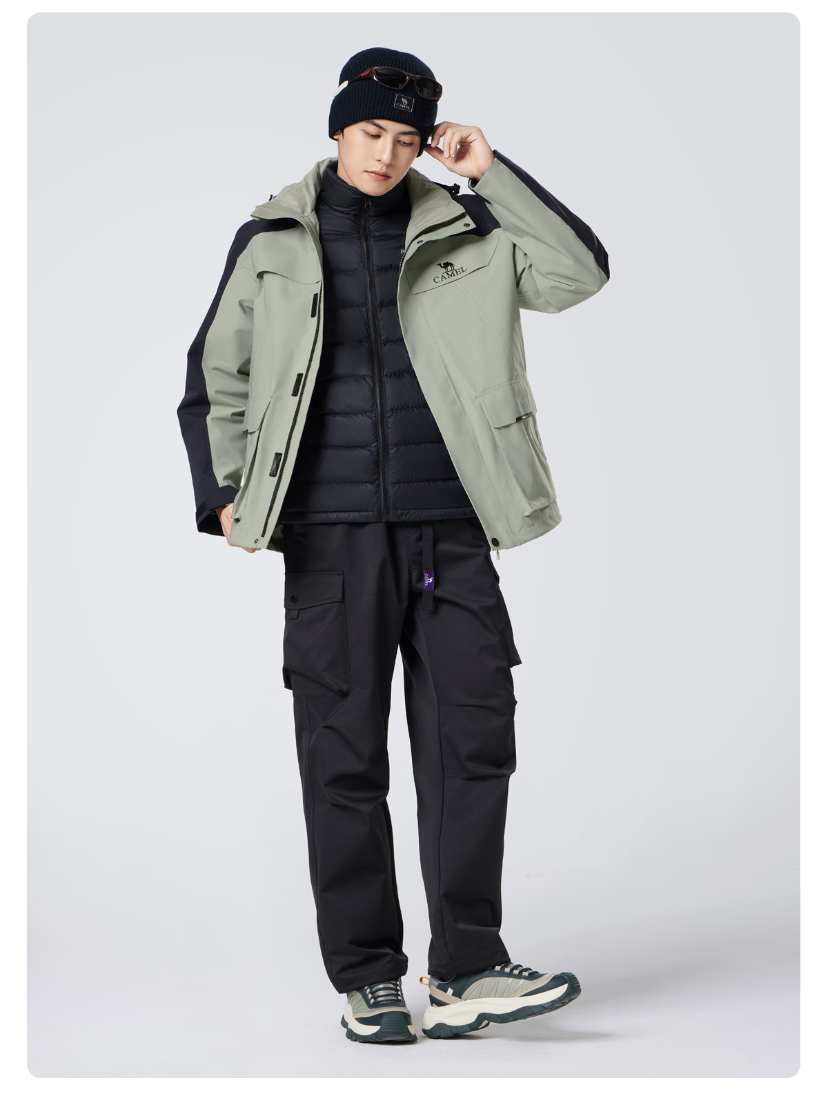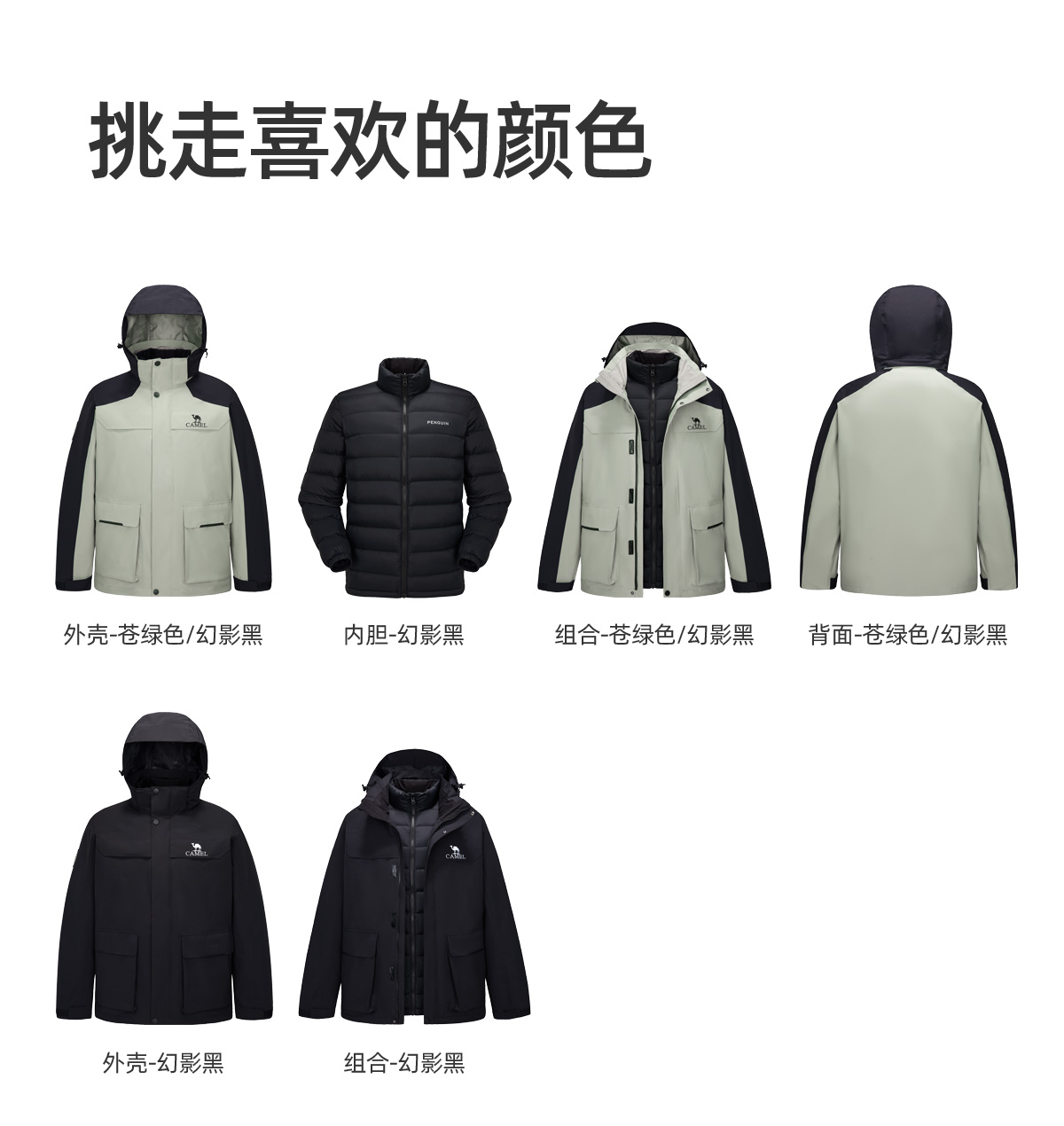 骆驼男装三合一羽绒冲锋衣男秋冬季2025新款工装加厚登山服外套男 M34CA45637