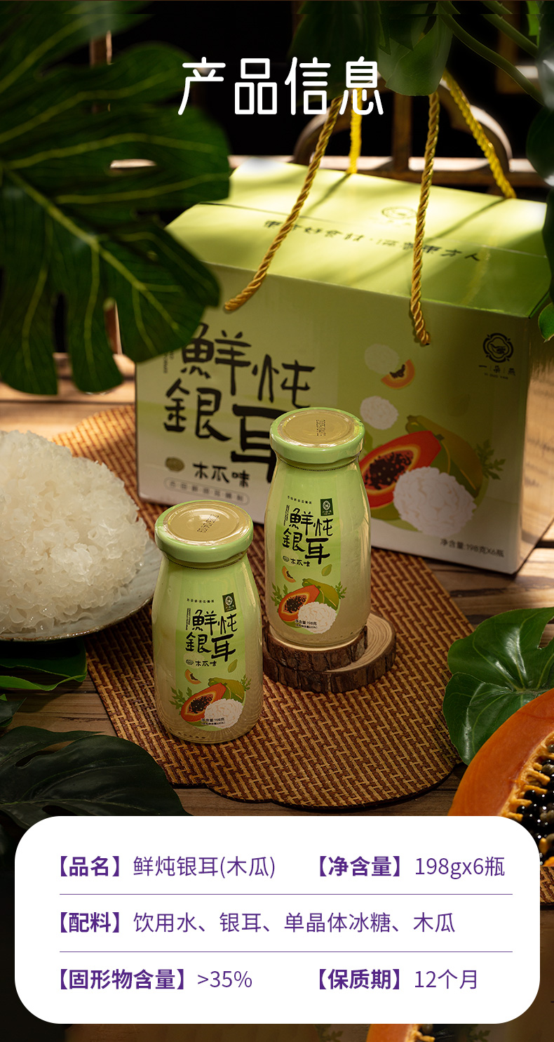 鲜炖银耳-鲜炖木瓜银耳羹,198g/瓶,1箱6瓶,生产日期2025.11月,保质期12个月