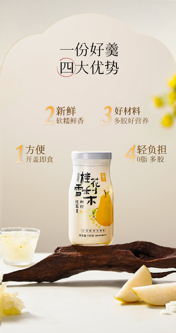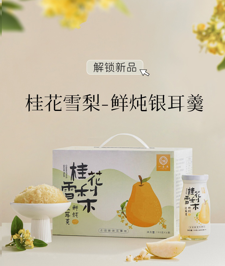 鲜炖银耳-桂花雪梨银耳羹,198g/瓶 ,1箱6瓶,生产日期2025.11月,保质期12个月