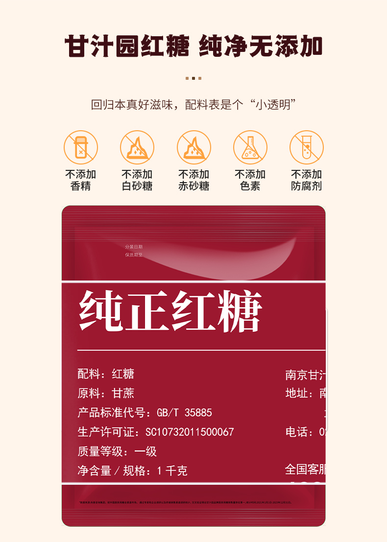 甘汁园 纯正红糖1kg*3袋