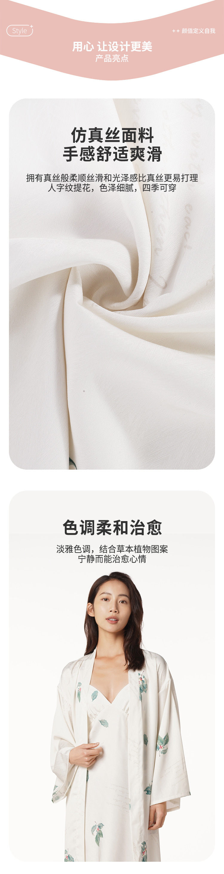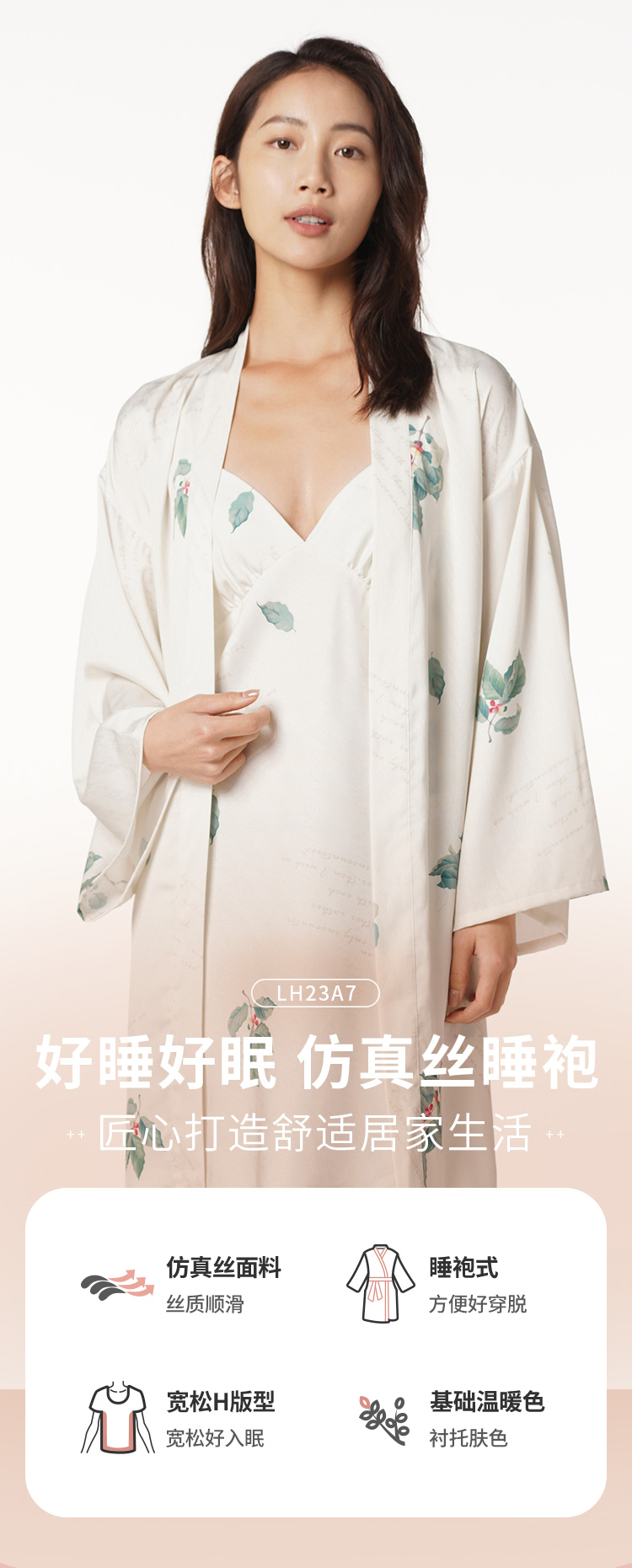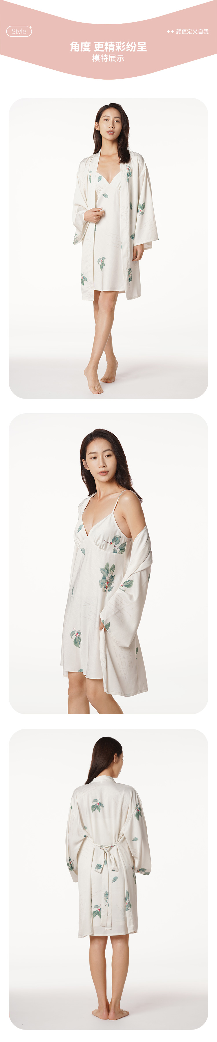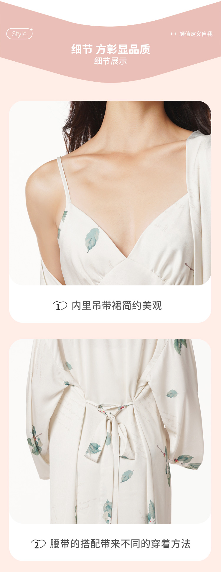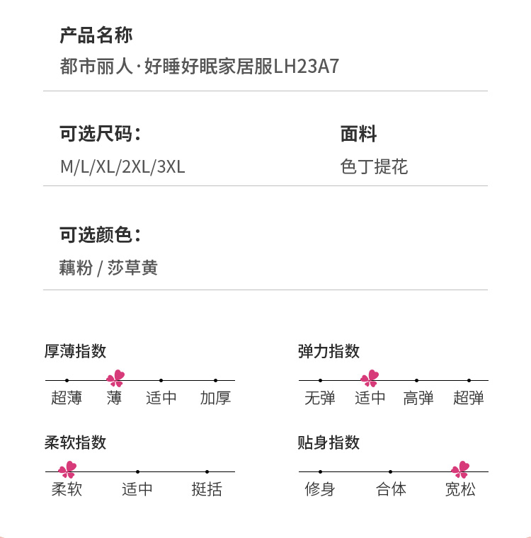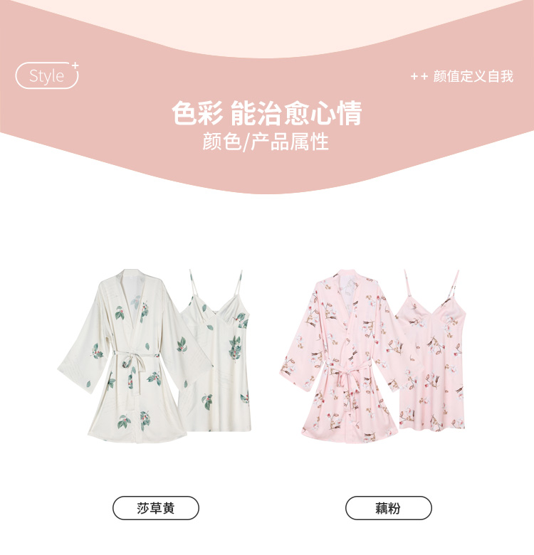 都市丽人好睡好眠女士丝质两件袍色丁提花薄家居服两件套睡衣LH23A7