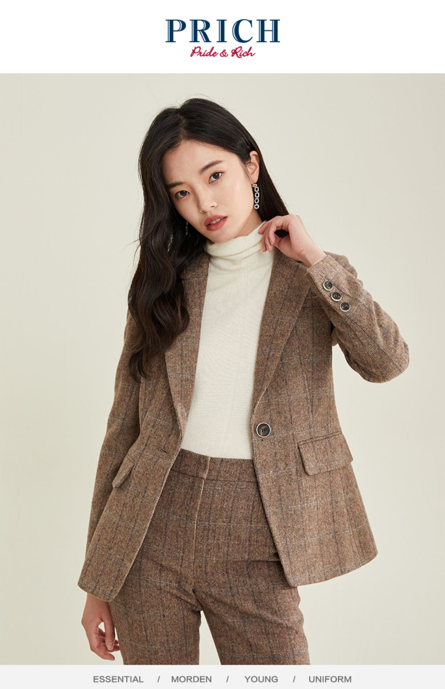 PRICH2021年冬季新款气质收腰设计感小众西装外套女PRJKB8T09N