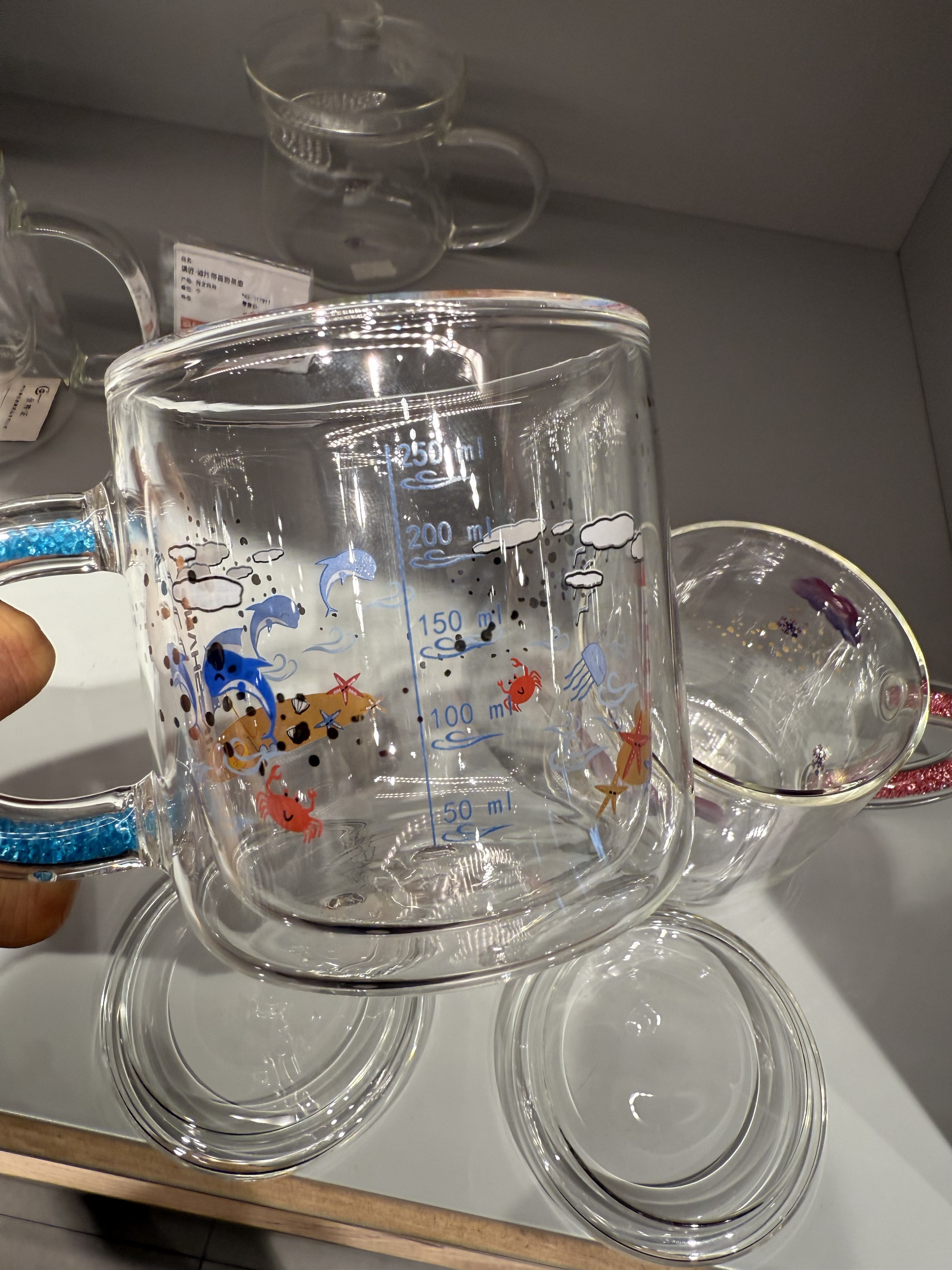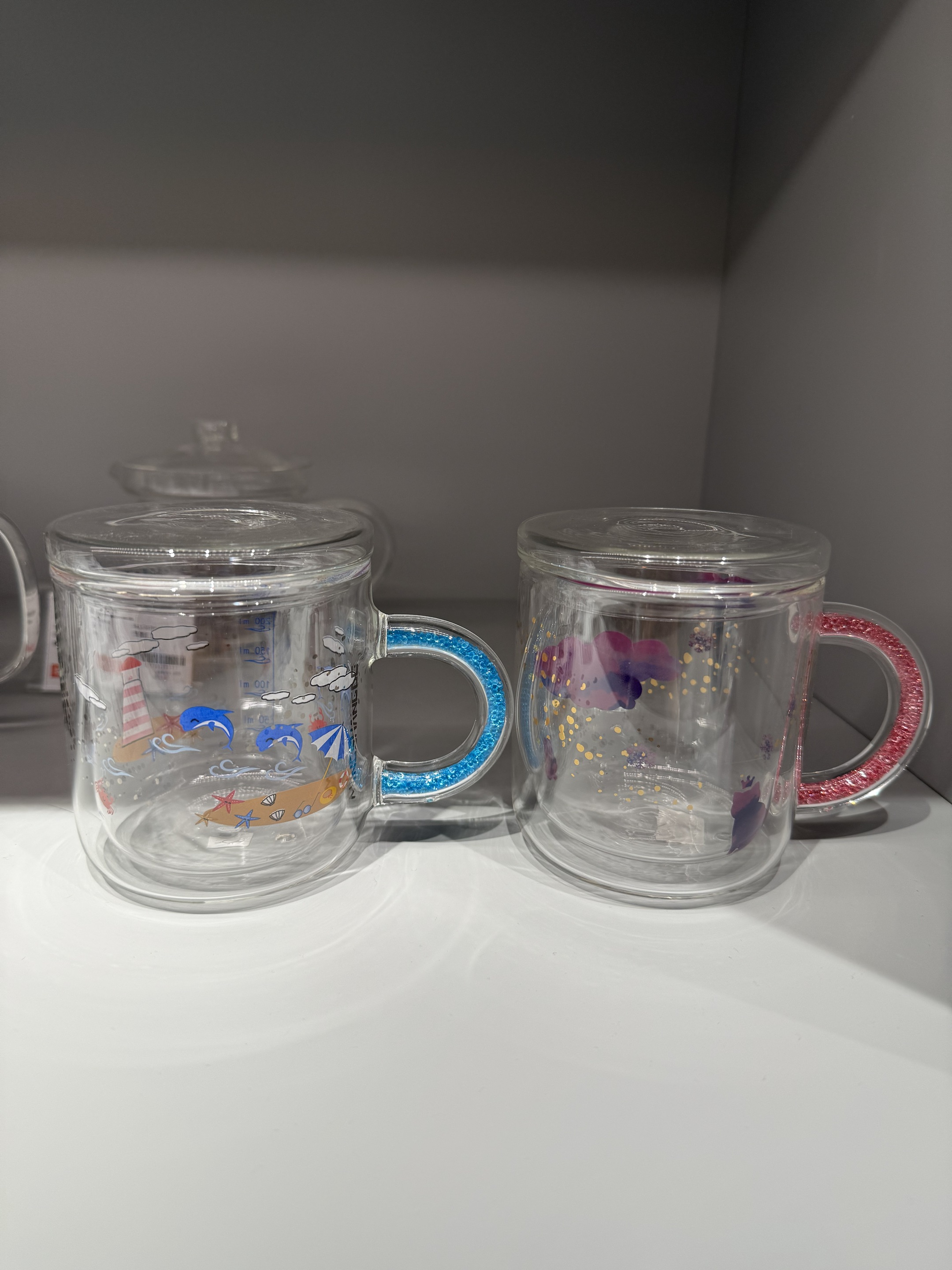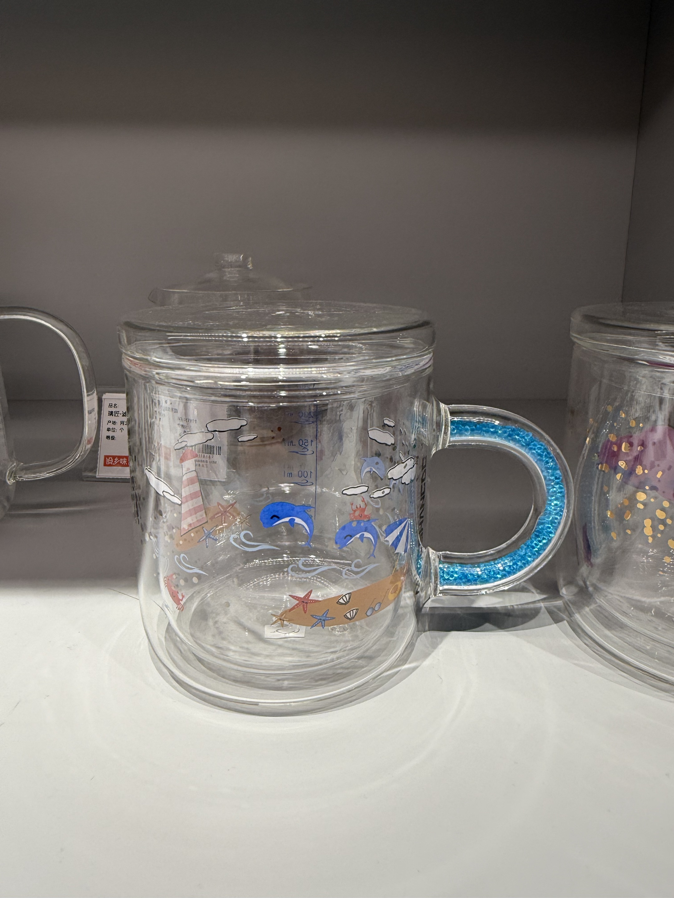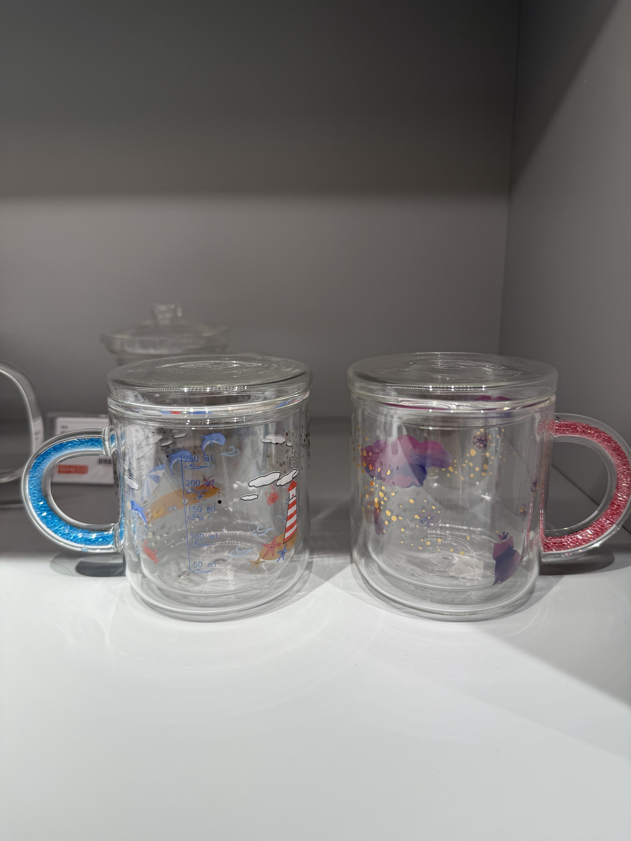 璃匠粉蓝对杯高硼硅玻璃带盖200ml