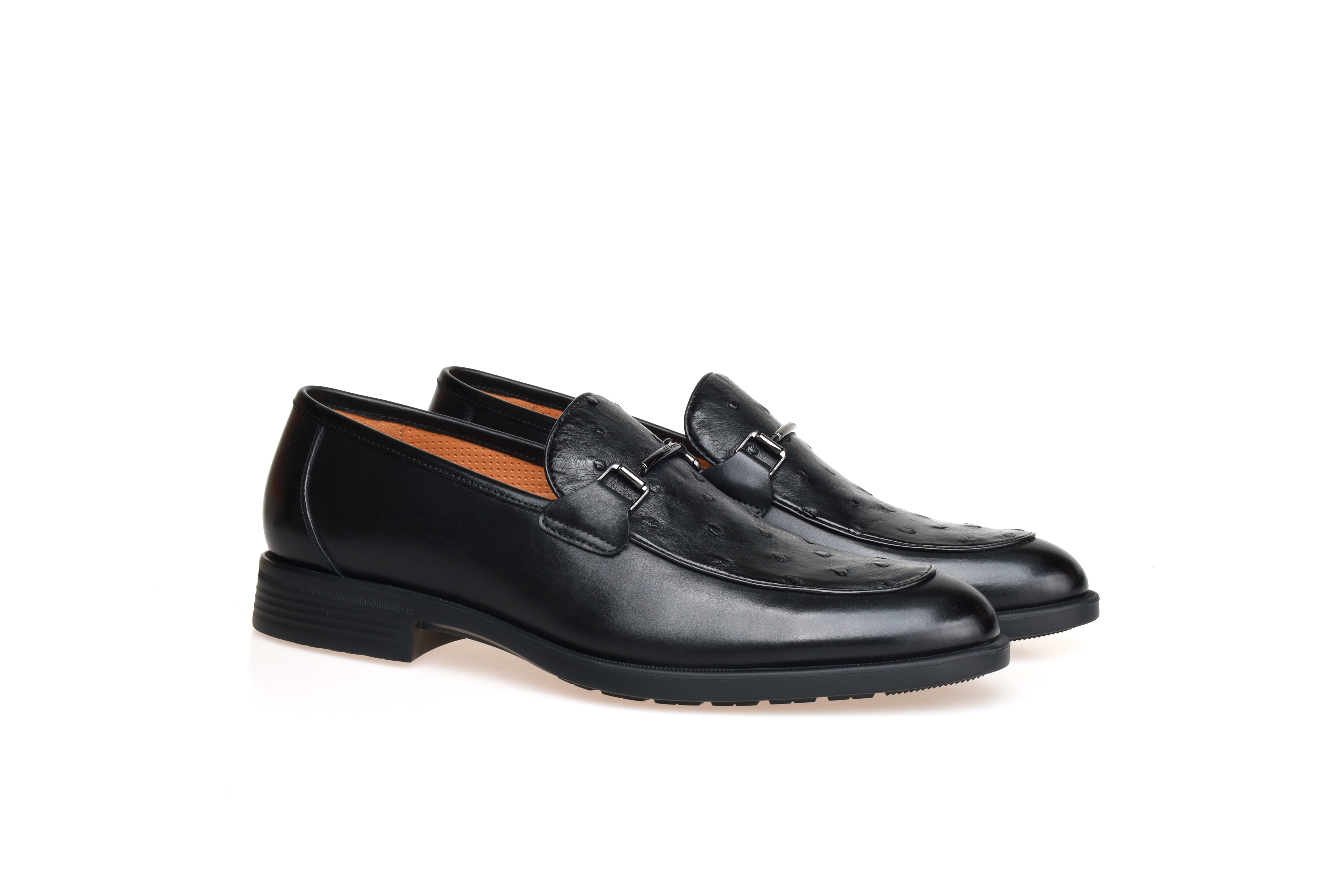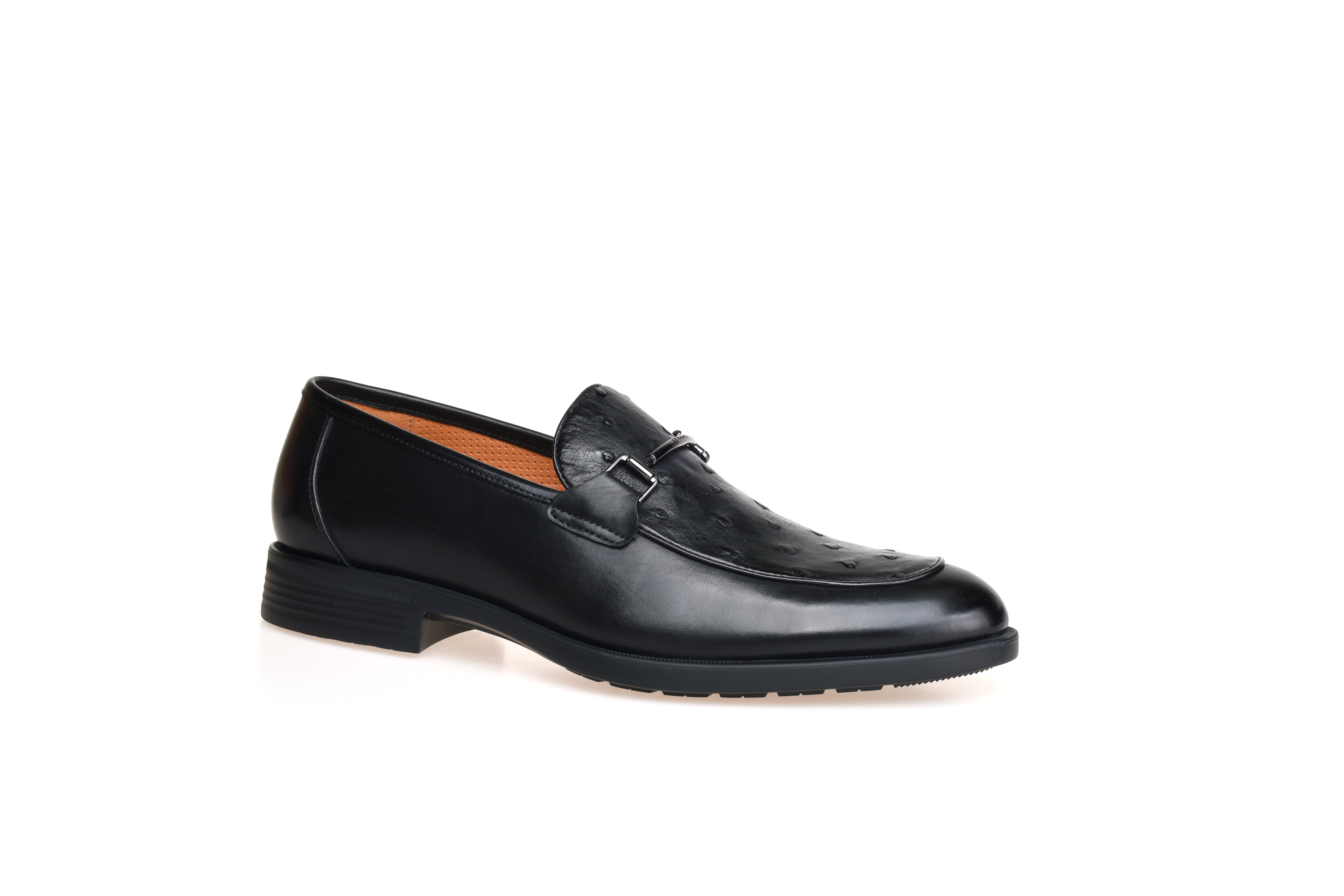 豪麟名鞋都彭男鞋皮鞋牛皮革+鸵鸟皮革E34130541黑色