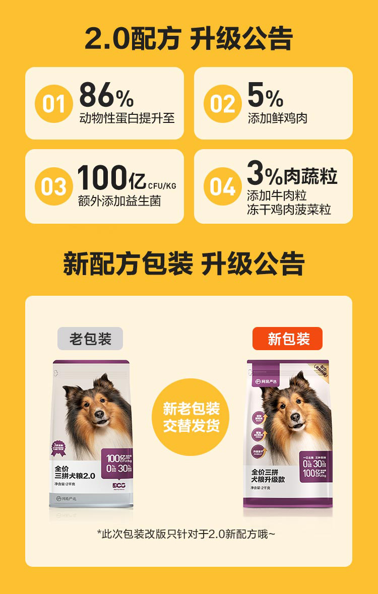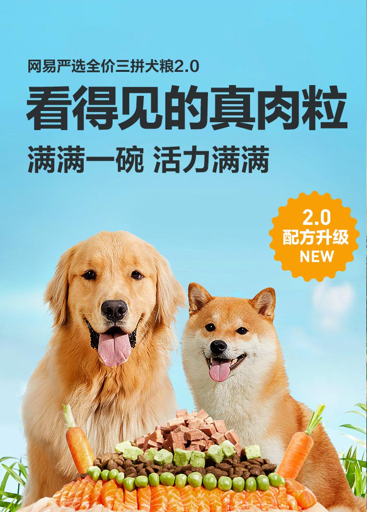 网易严选 全价三拼犬粮升级款无谷狗粮营养健康配比冻干主粮2kg/袋