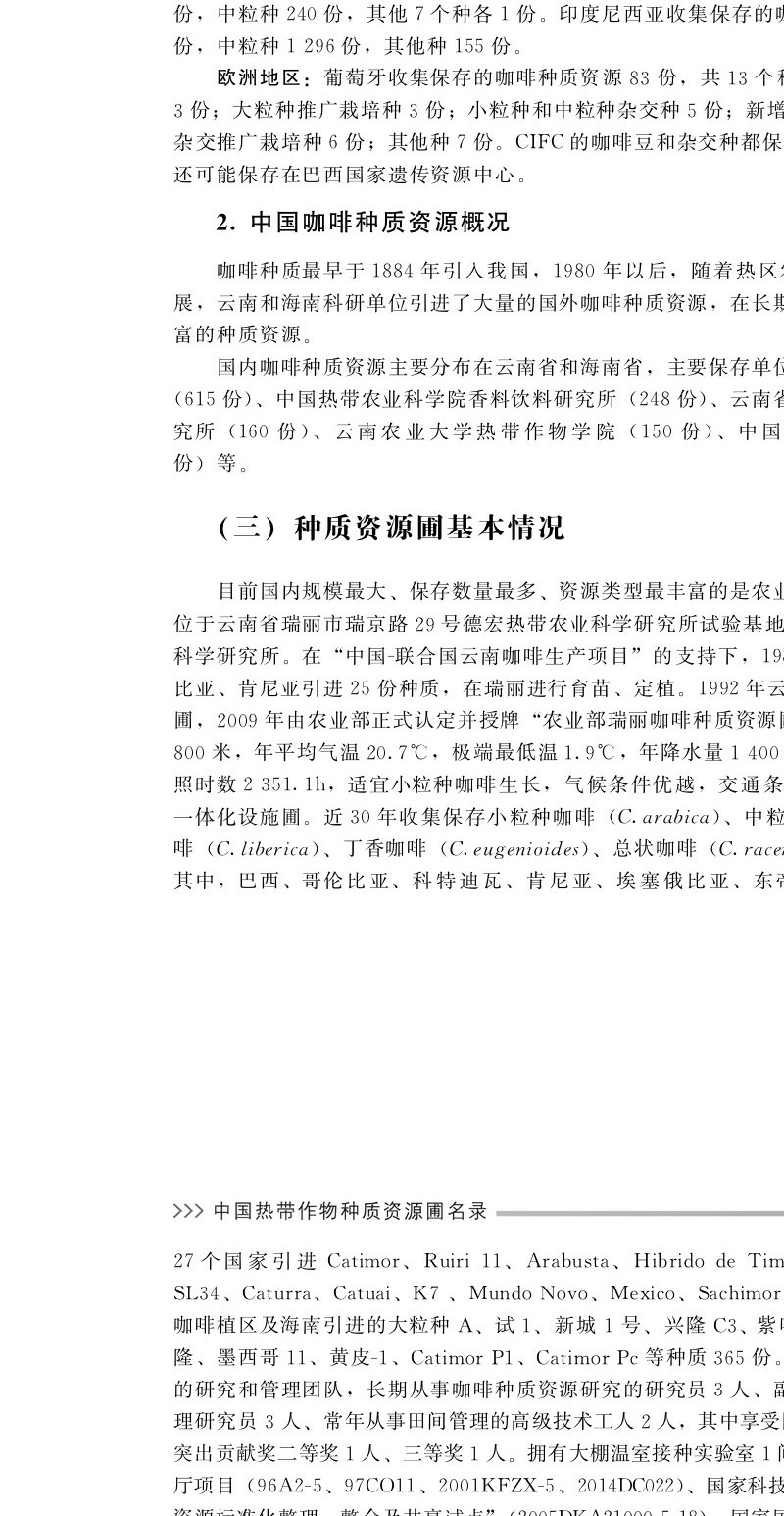 中国热带作物种质资源圃名录 【中国农业出版社官方正版】