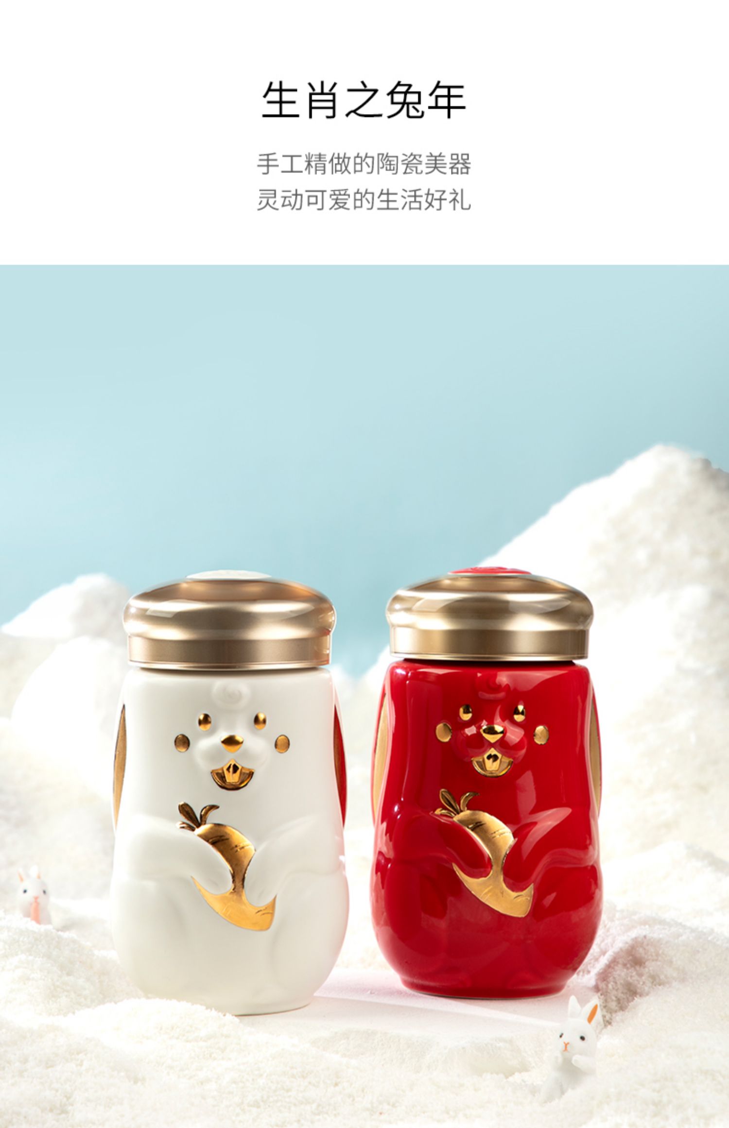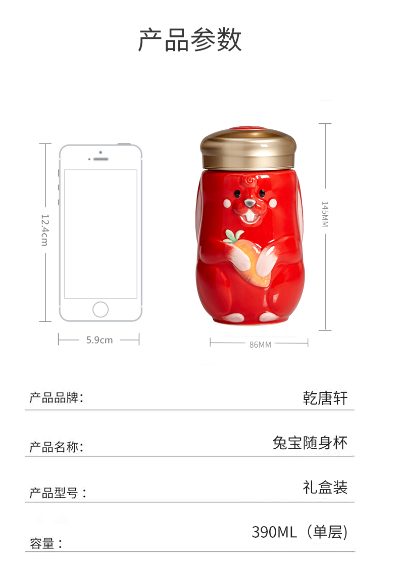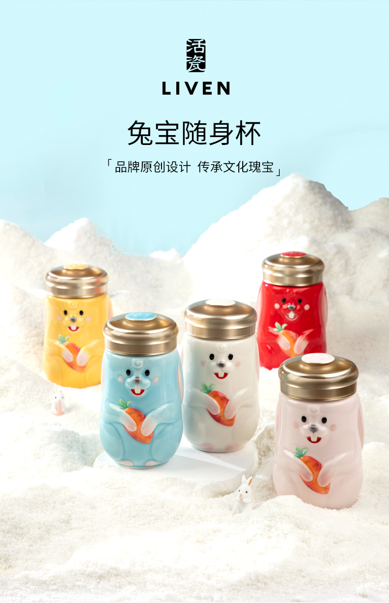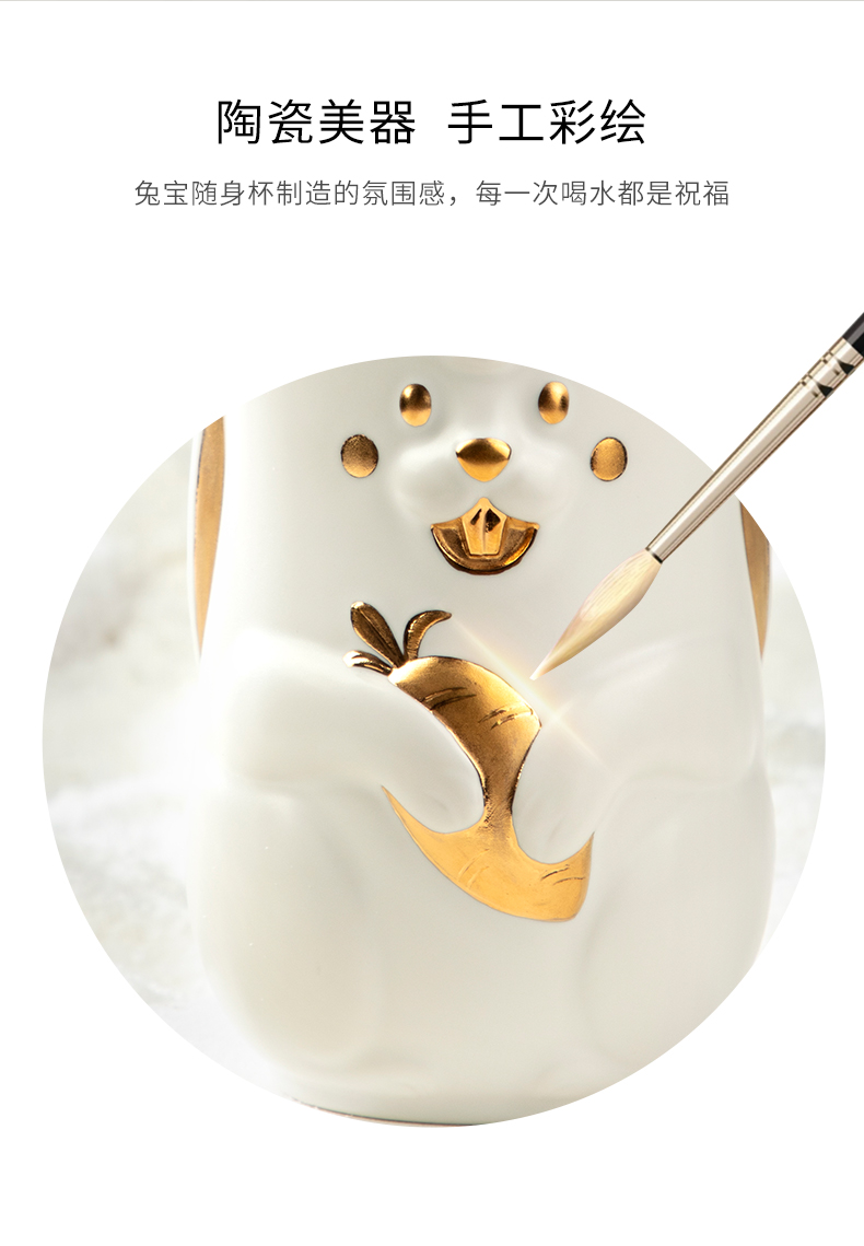 乾唐轩活瓷2023新款兔宝随身杯可爱陶瓷便携随手杯礼盒390ML