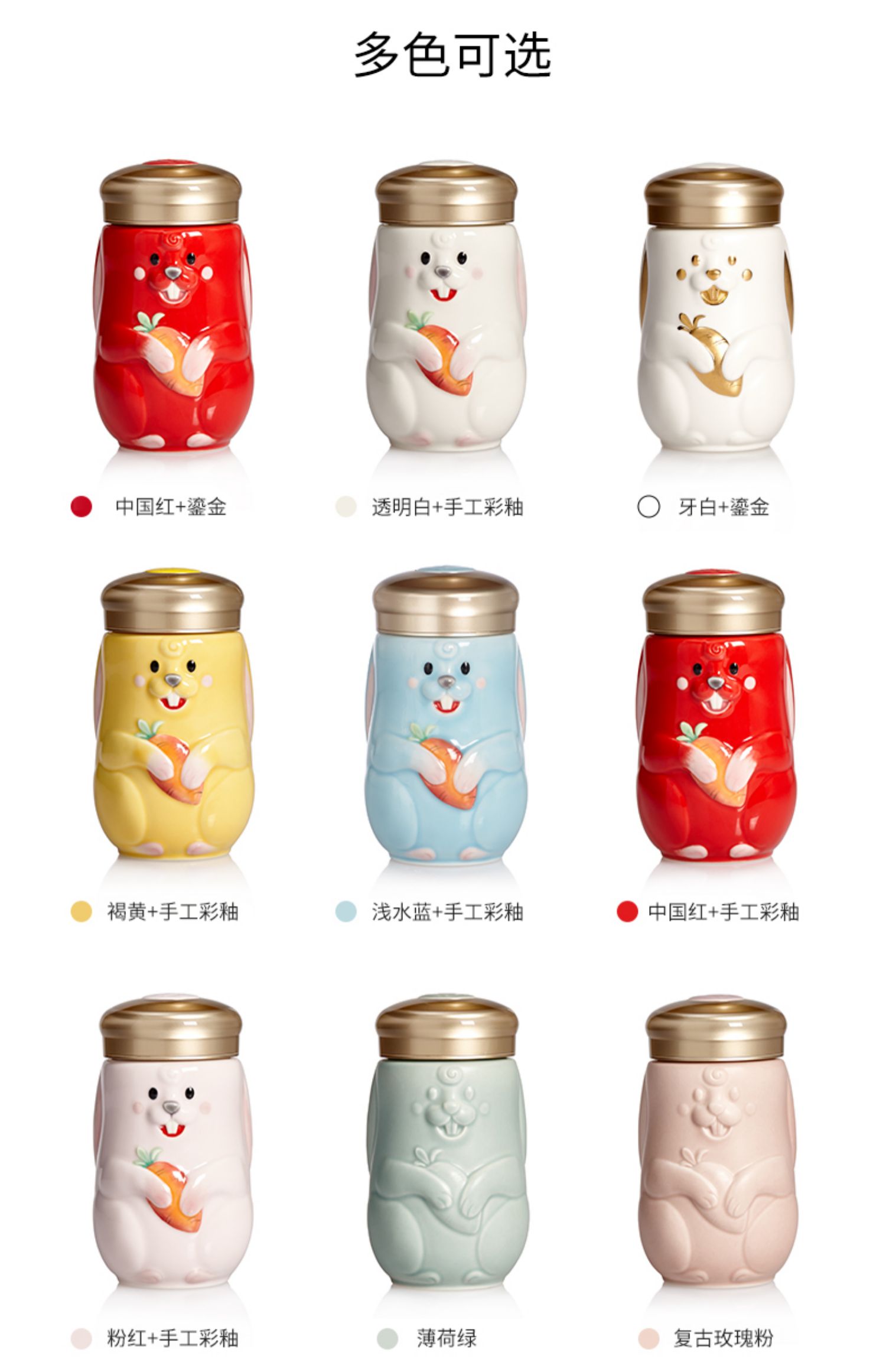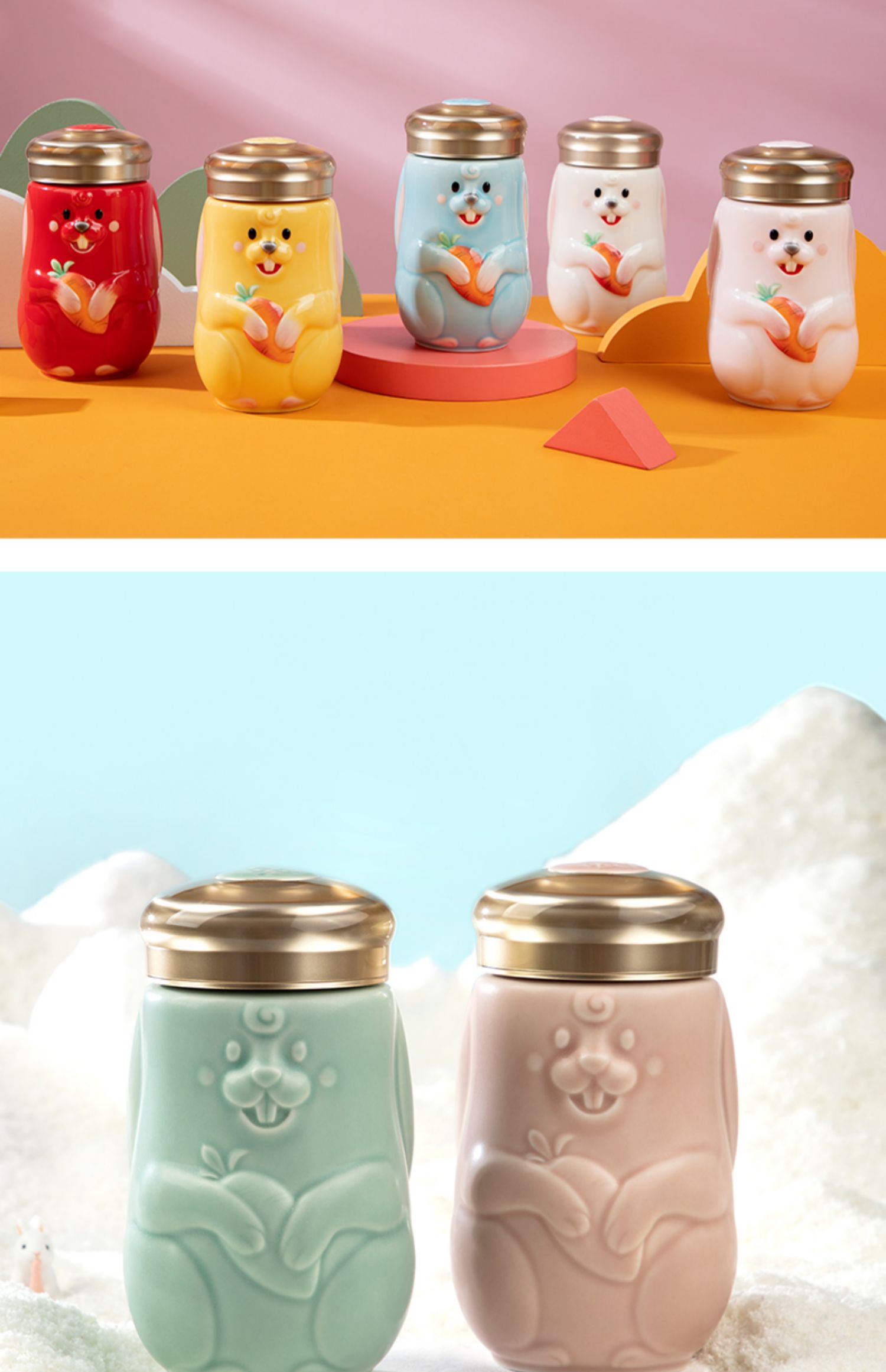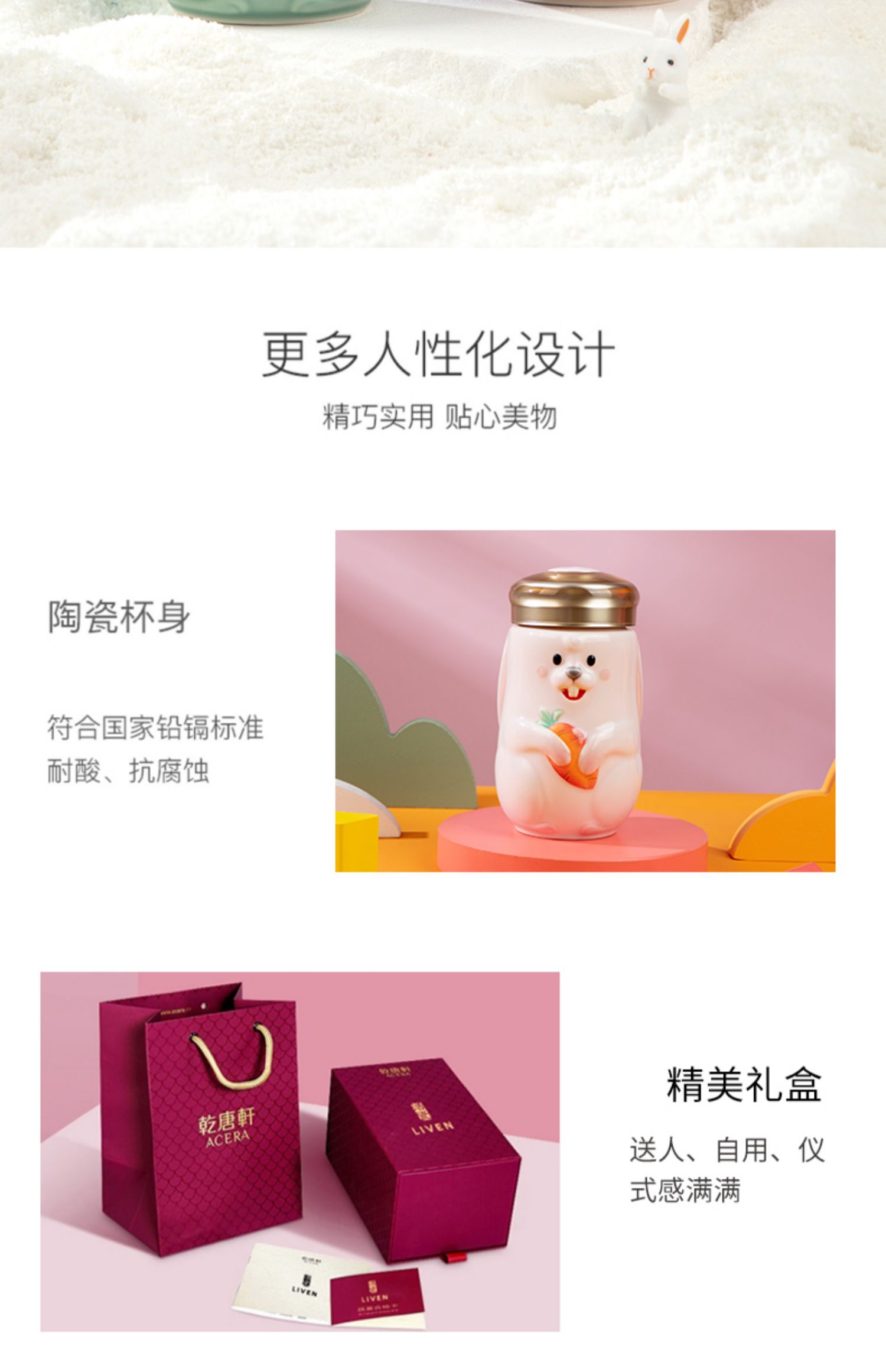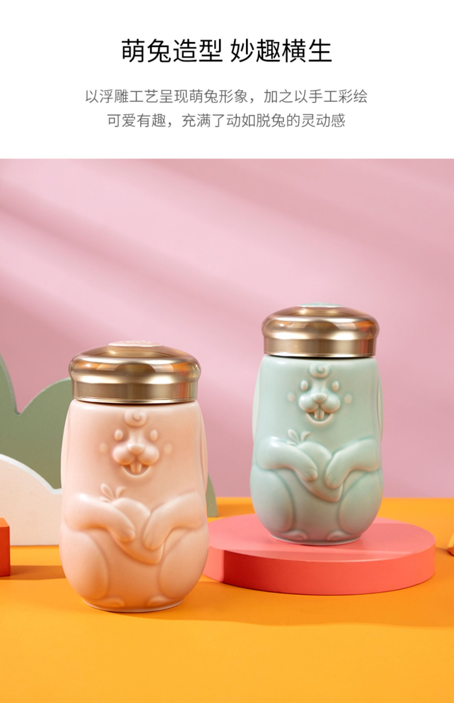 乾唐轩活瓷2023新款兔宝随身杯可爱陶瓷便携随手杯礼盒390ML
