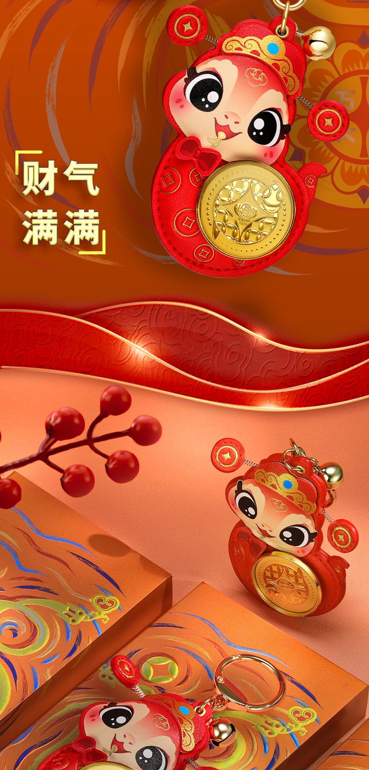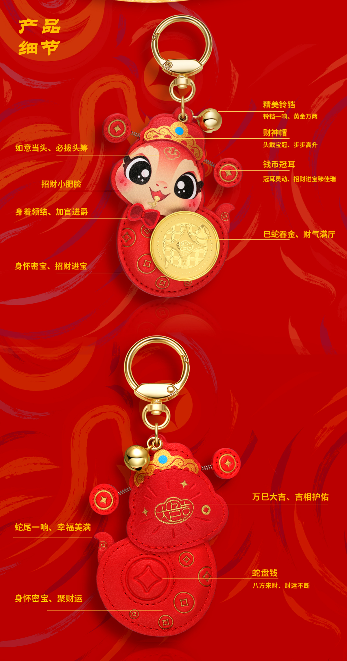 万巳大吉财神蛇足金钥匙扣挂件包挂饰生日伴手礼新年礼物送朋友