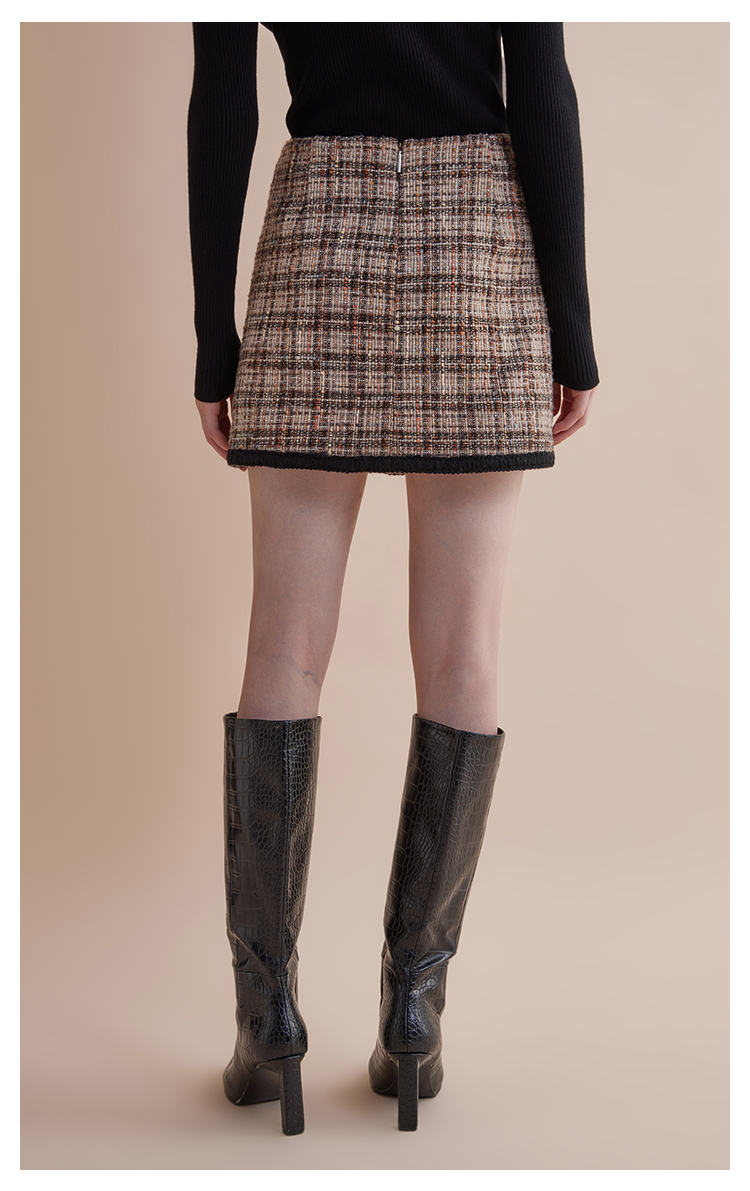 【JASON WU】新款格纹羊毛小香风修身短外套夹克短裙女