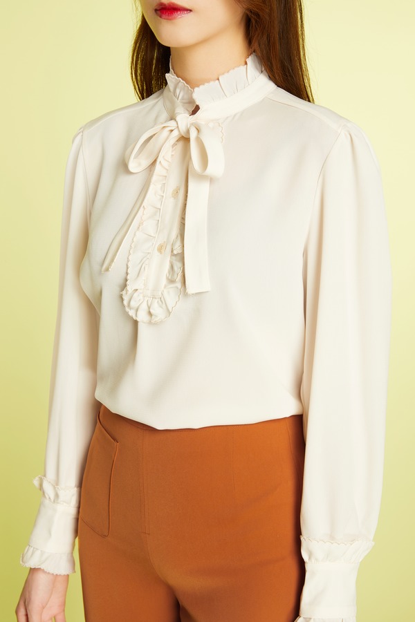 Le Malene 立领荷叶边飘带衬衣 11446