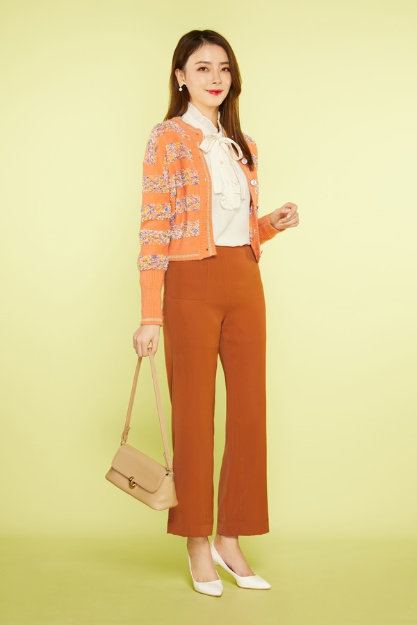 OCTAVIA 条纹饰粉色毛衣开衫 5626