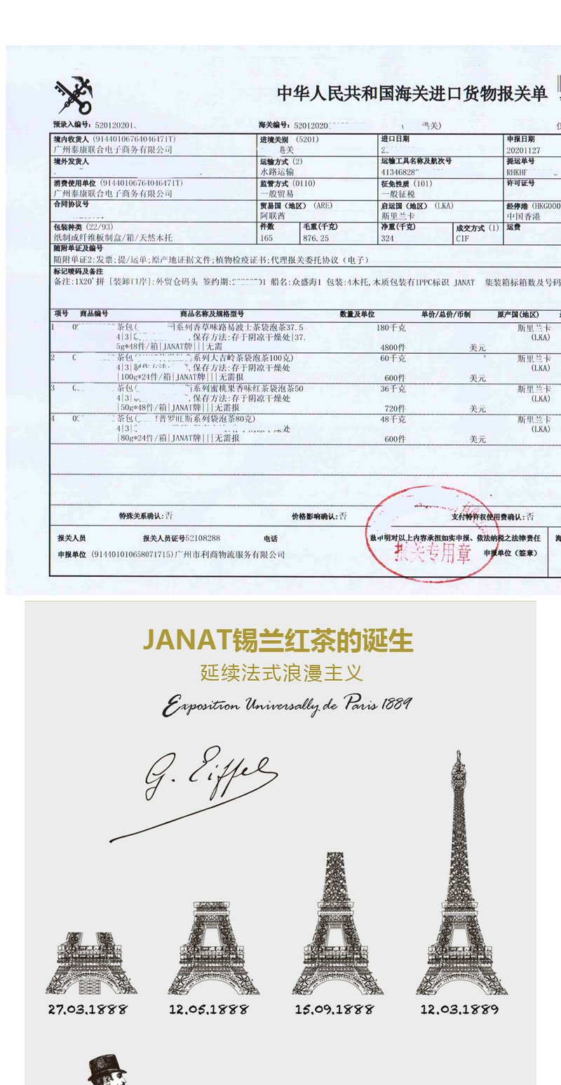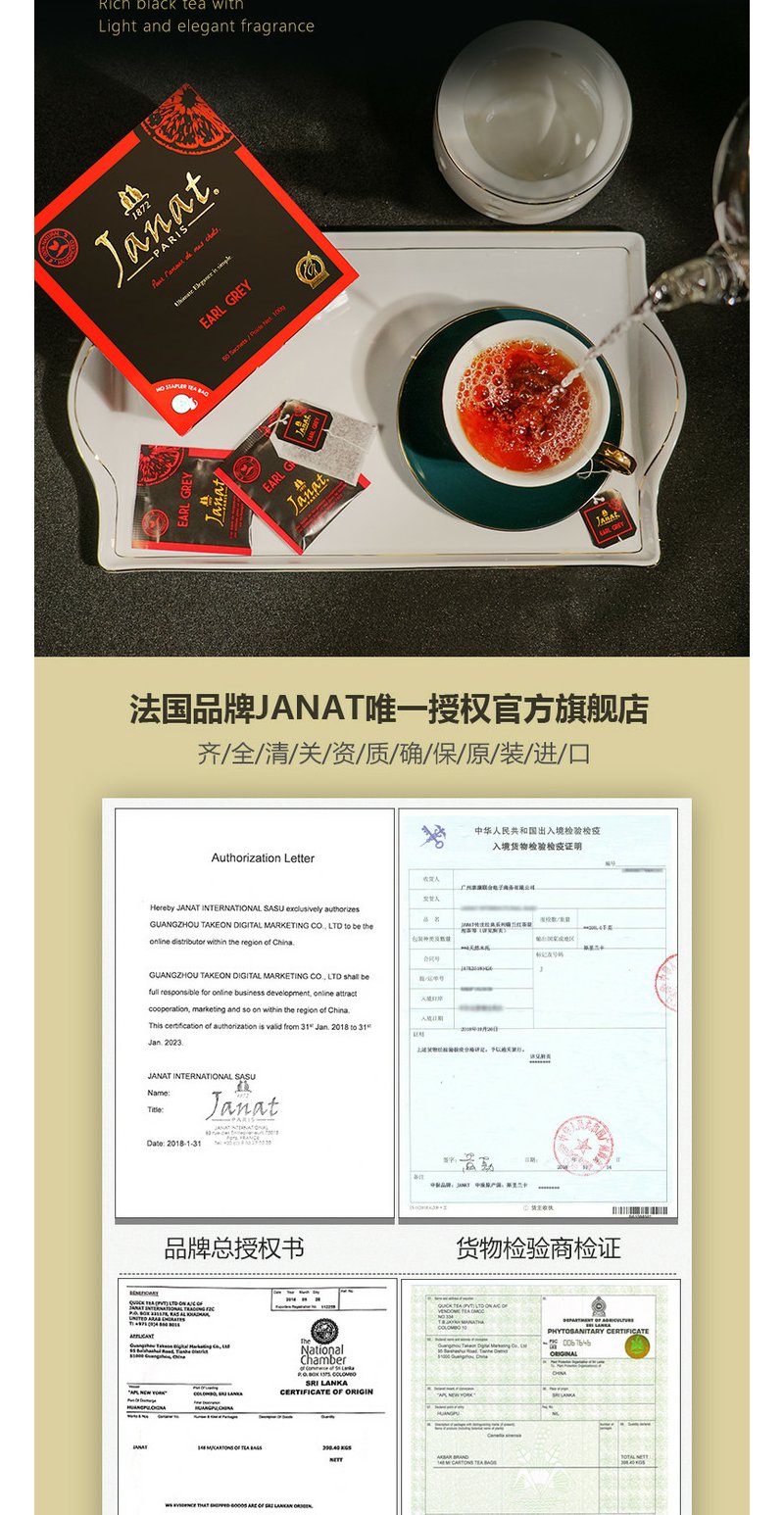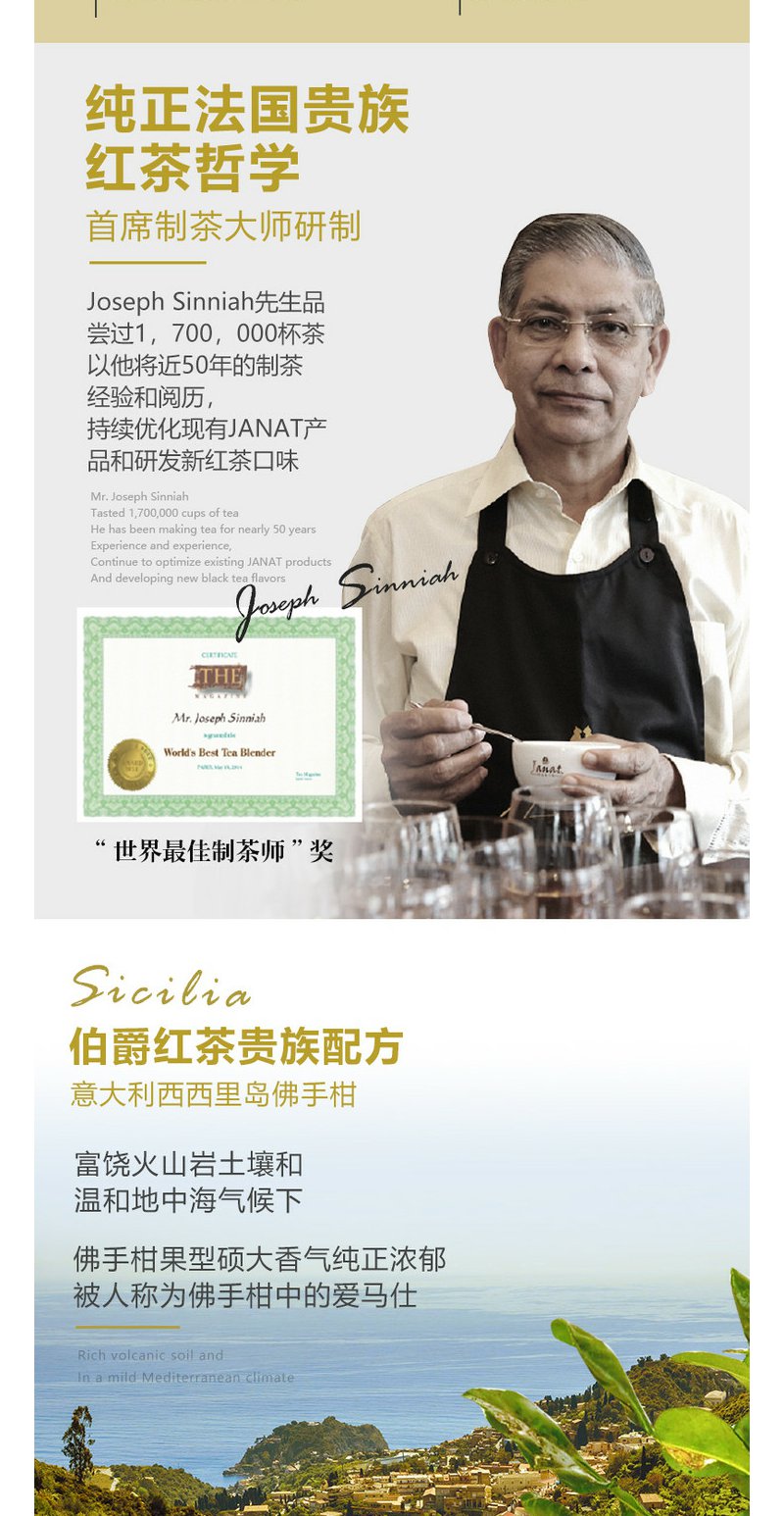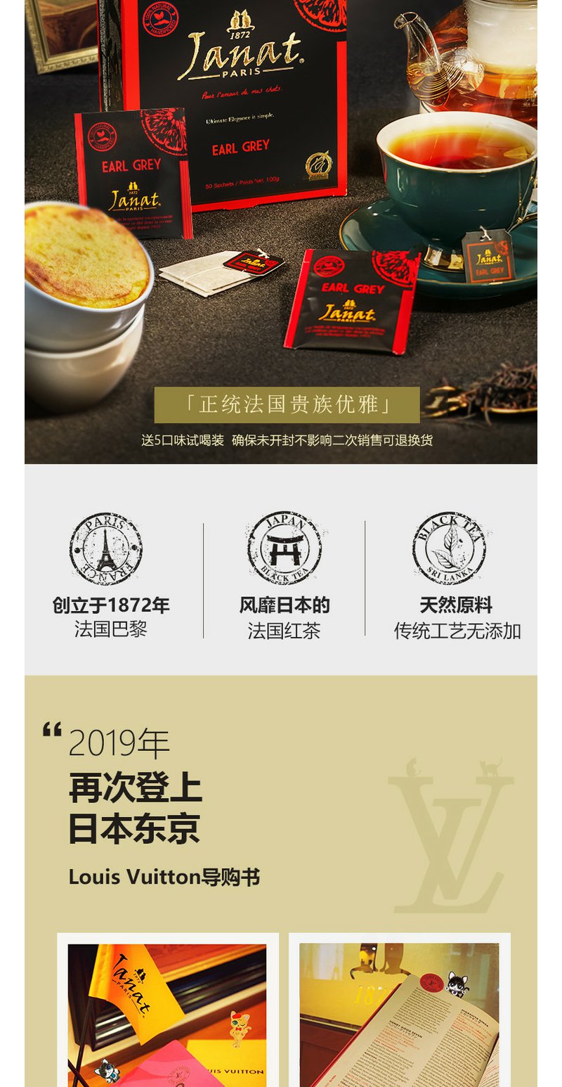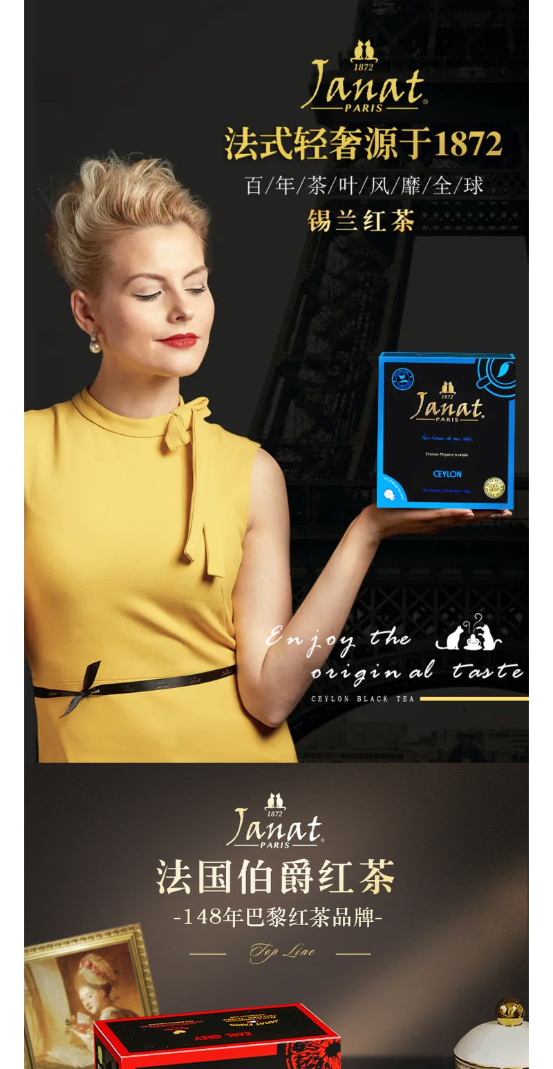 Janat传世经典红茶锡兰/伯爵/大吉岭红茶3口味任选巴黎贵族品牌袋泡茶50包
