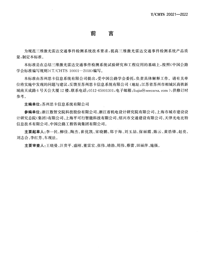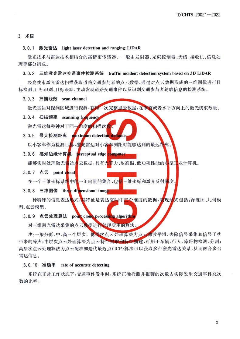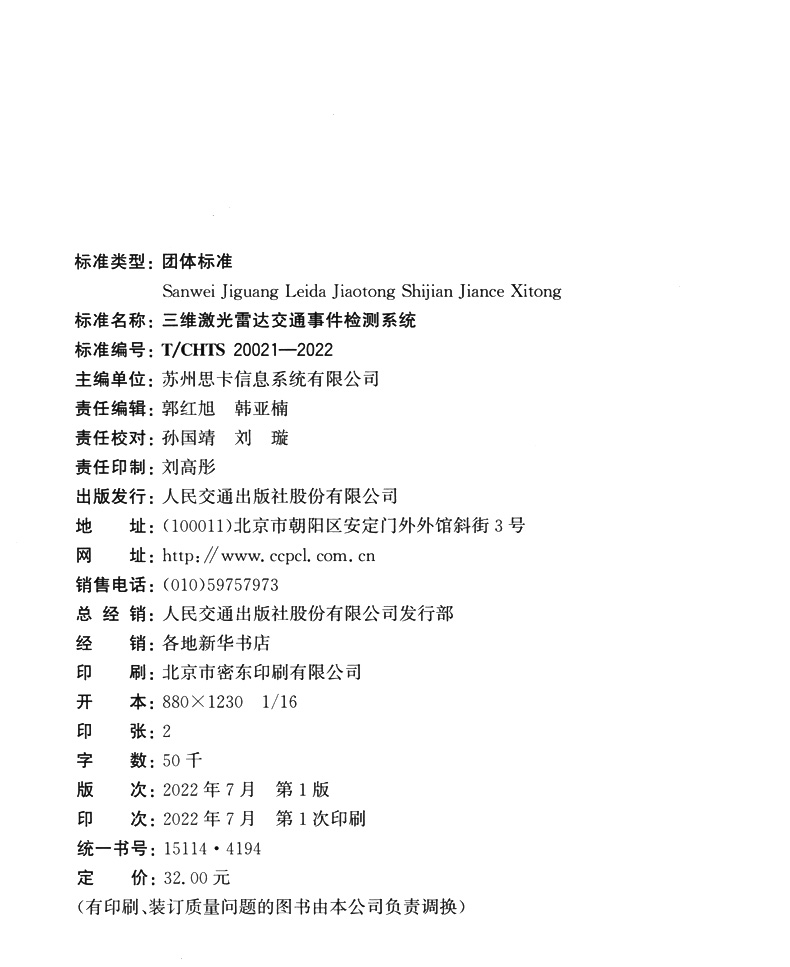 书名:三维激光雷达交通事件检测系统( T/CHTS 20021-2022 )