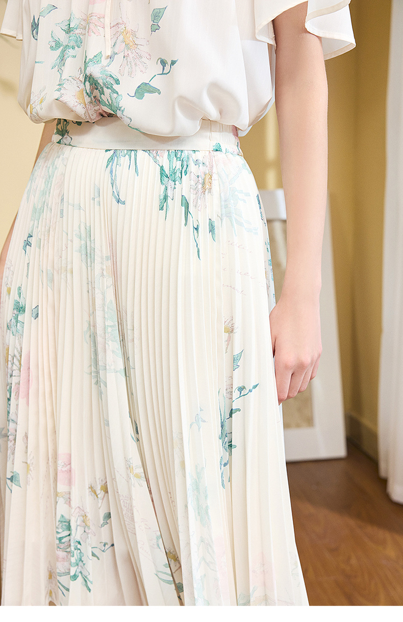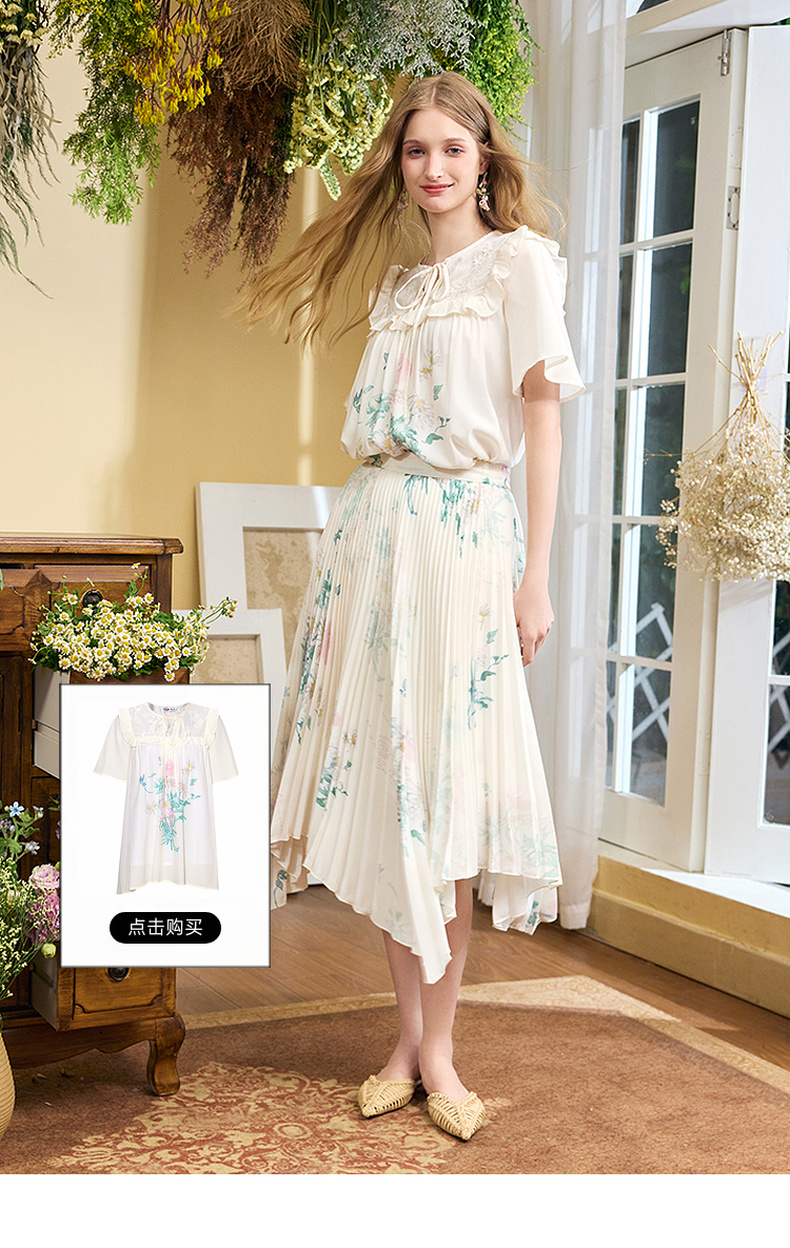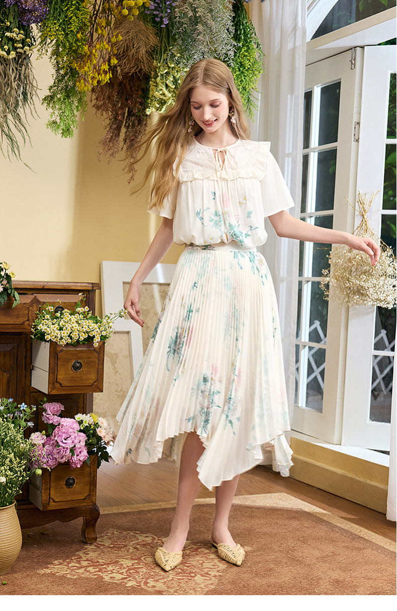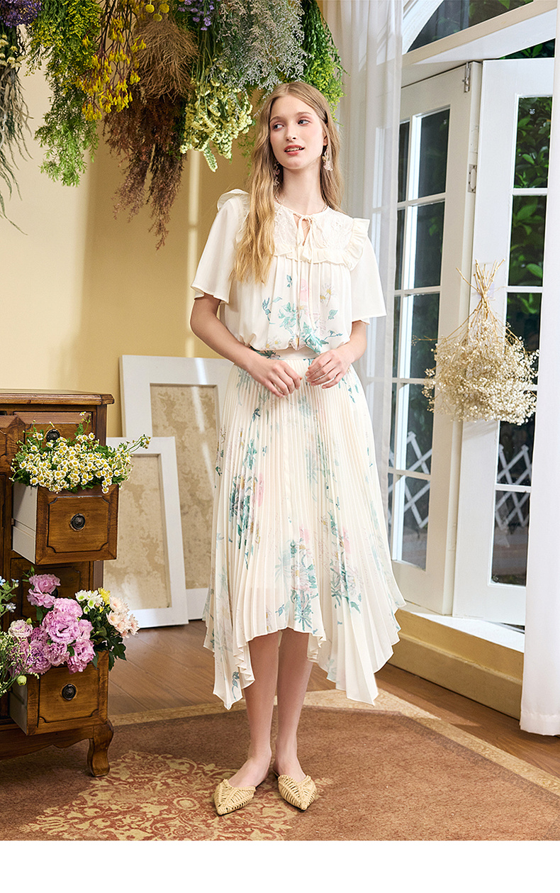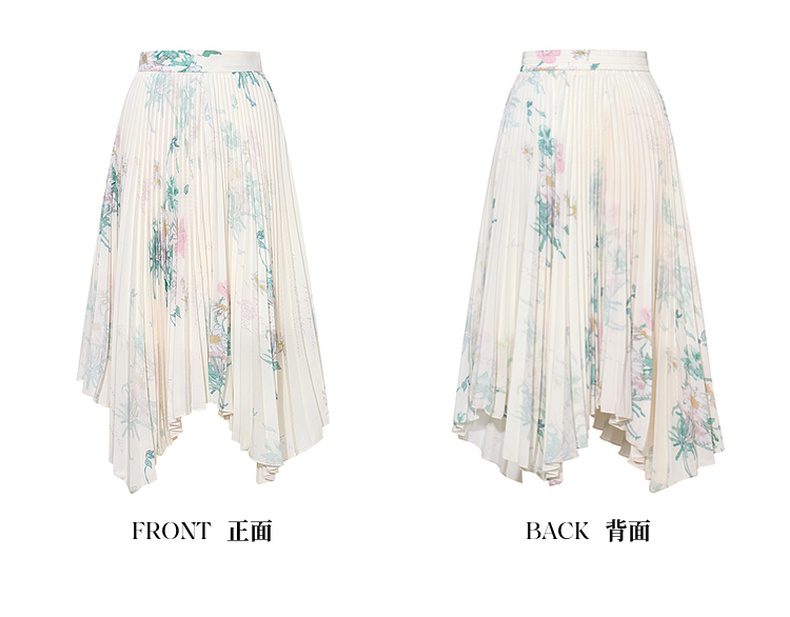 两三事梵高文艺阡陌交响2024夏季新款碎花印花不规则百褶裙半身裙