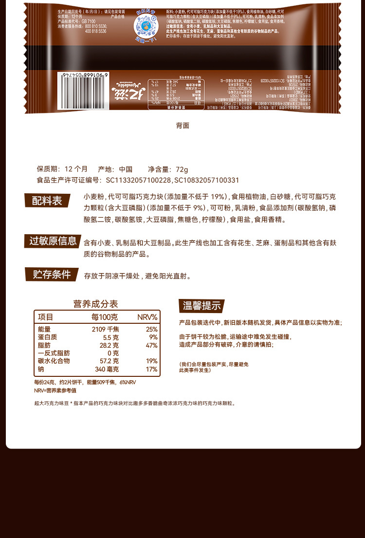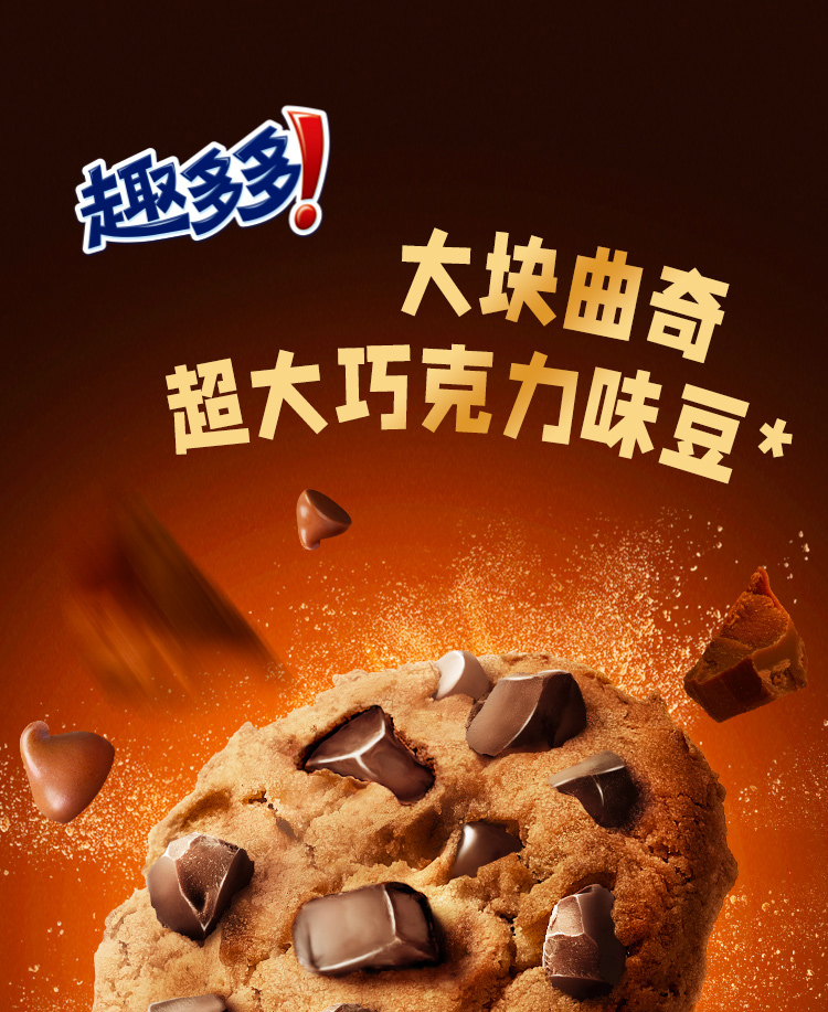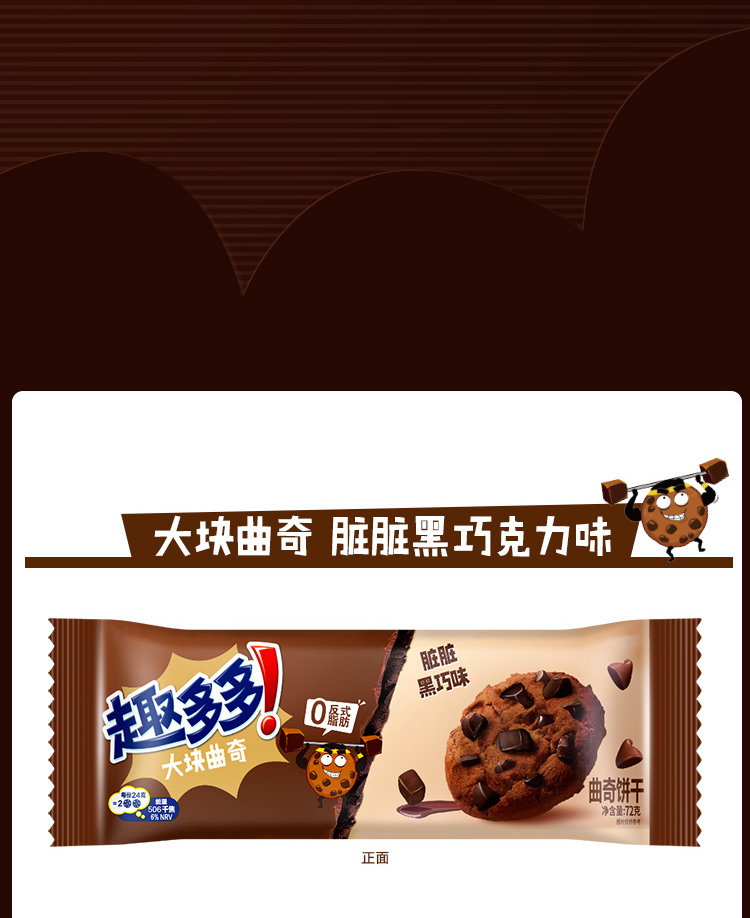 趣多多大块巧克力味系列曲奇饼干巧克力原味72g*4