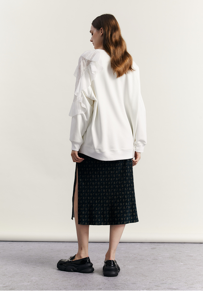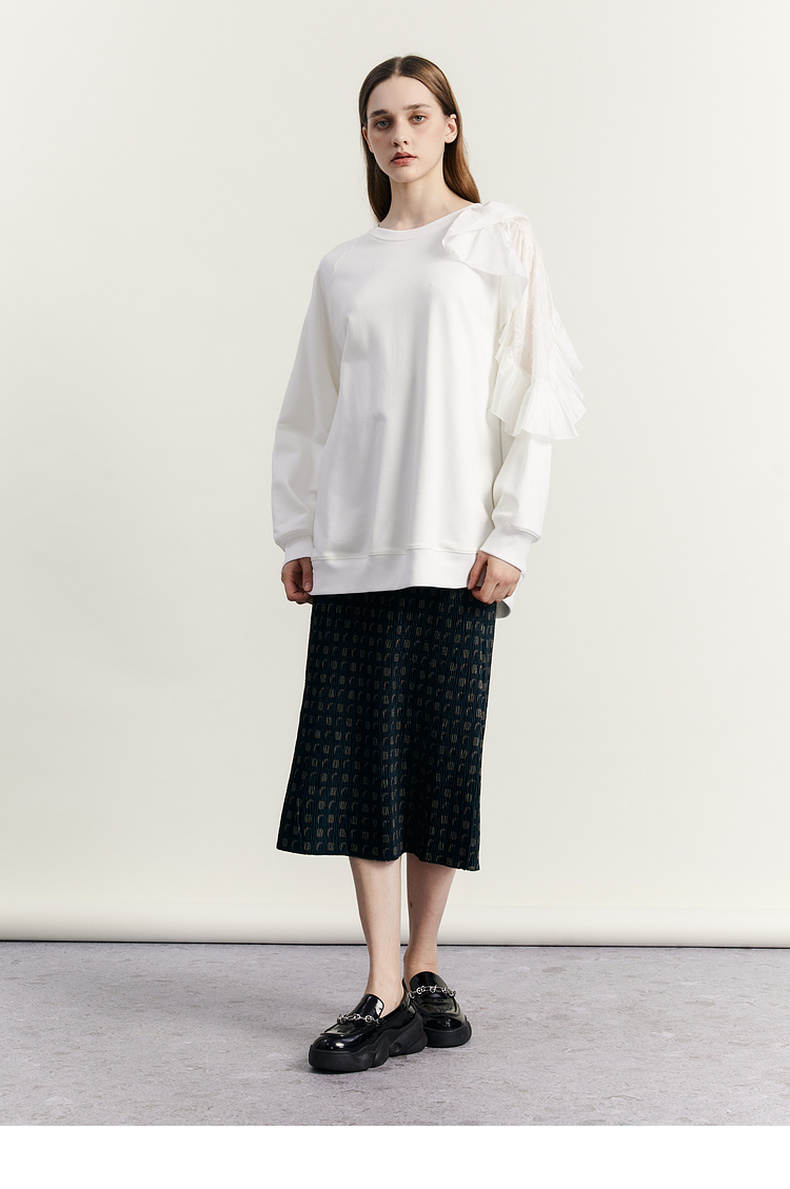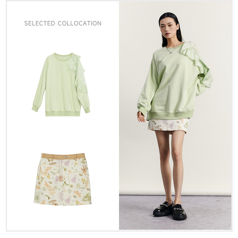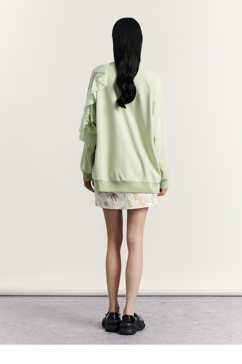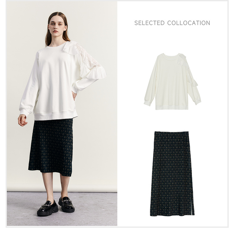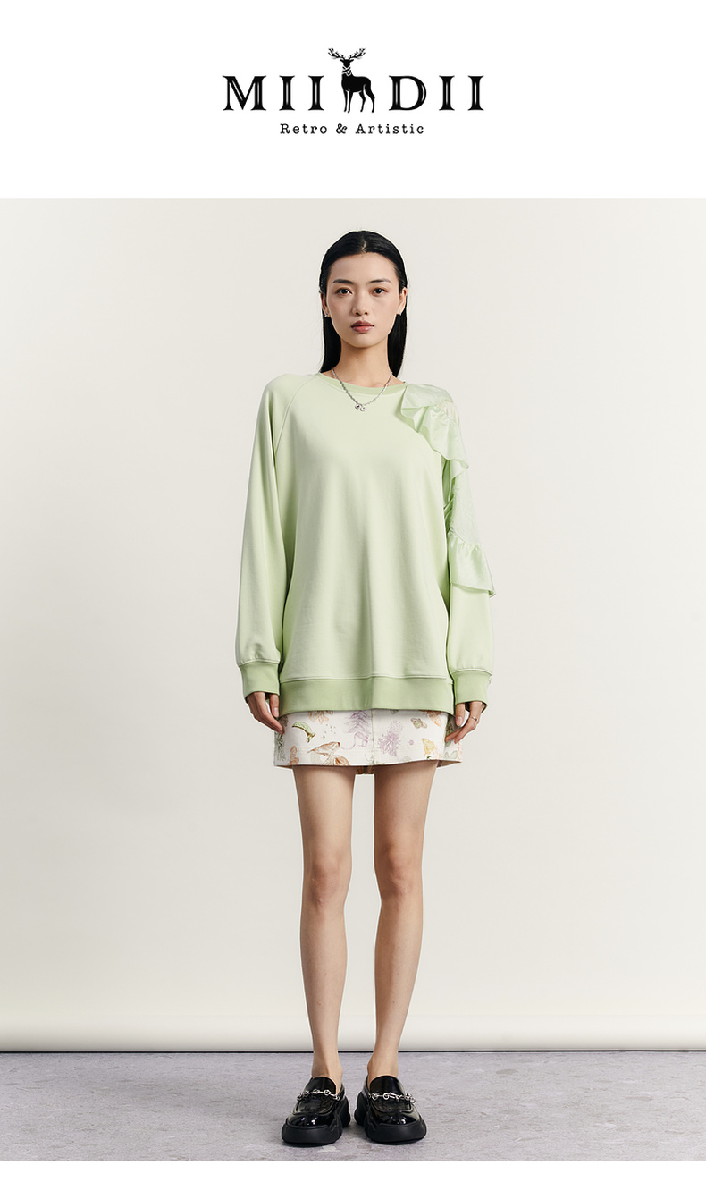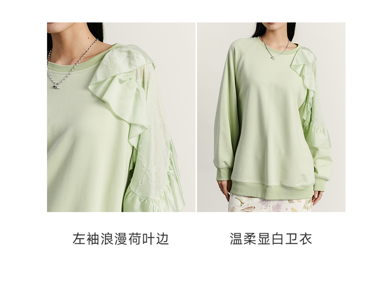 谜底中长款卫衣女2023秋款时尚浪漫荷叶边圆领宽松长袖233MV1053