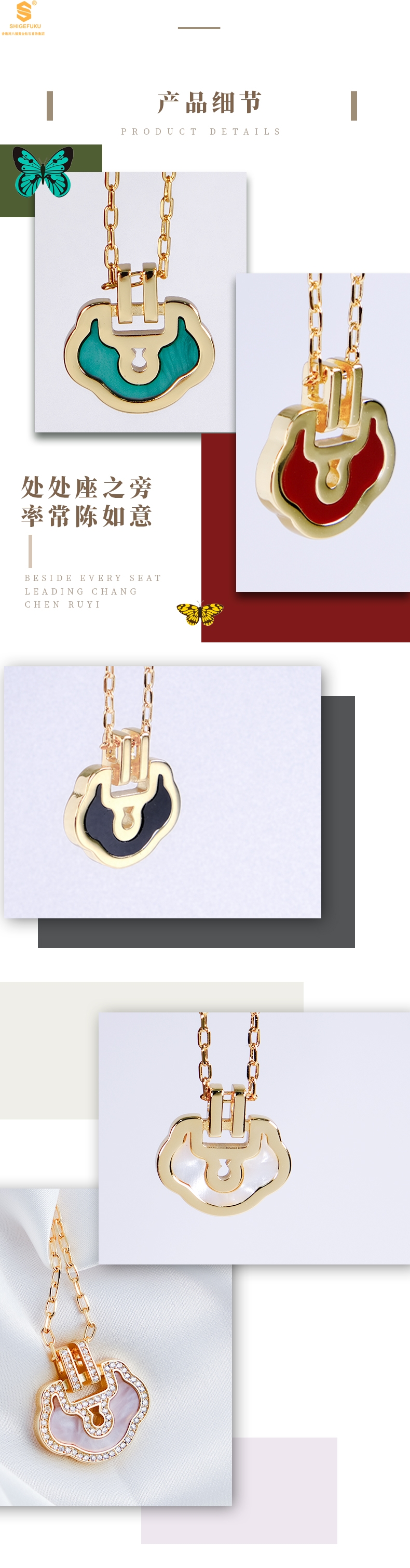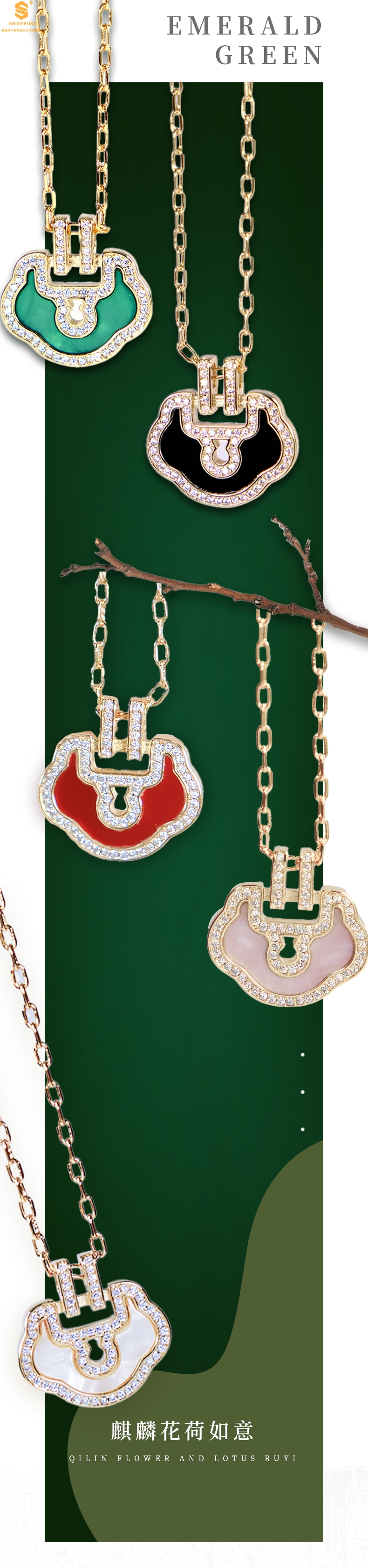 【精美饰品丨麒麟花荷如意项链】项链采用“锁”作为设计灵感,外框镶嵌了靓丽的小钻,设计风格别具一格,款式精致美丽,典雅大方,适合多种场合佩戴
