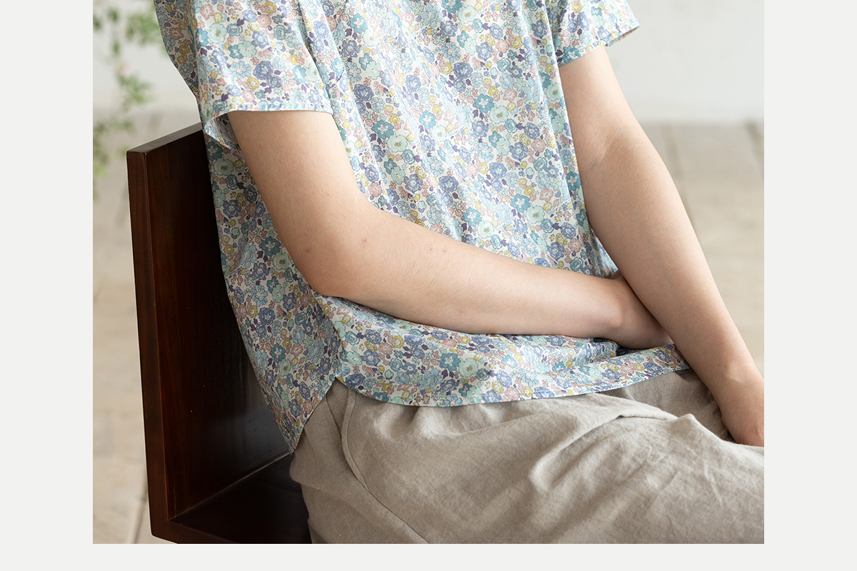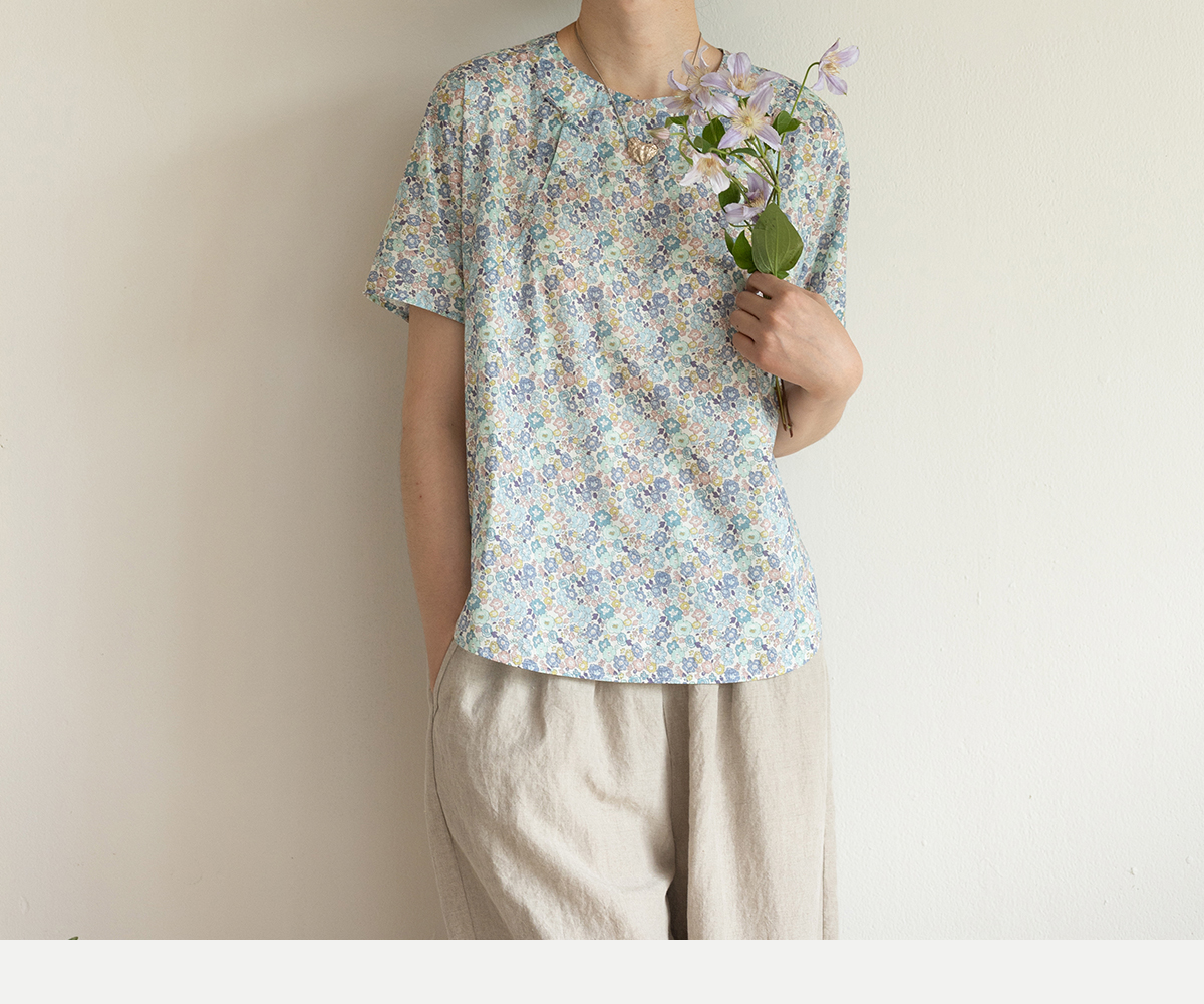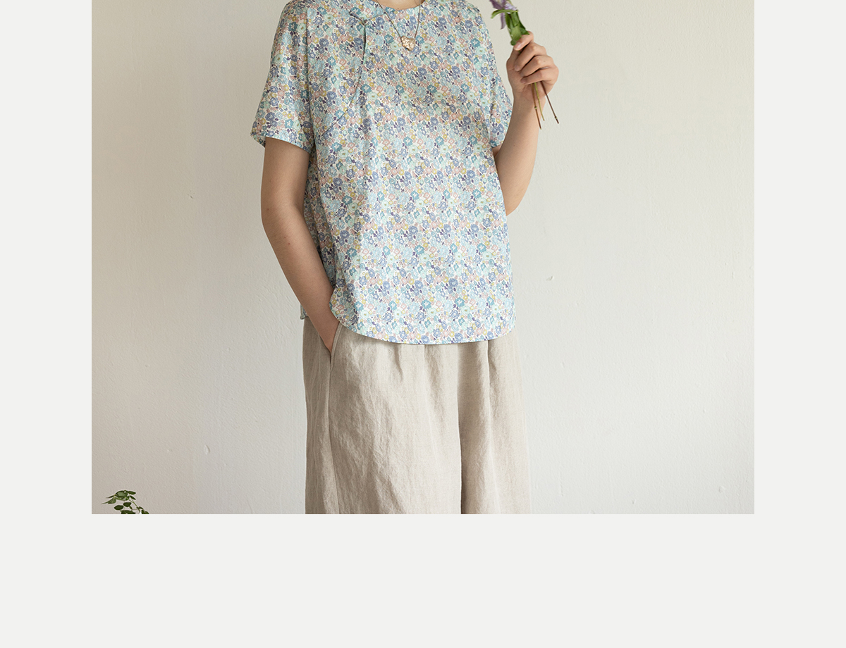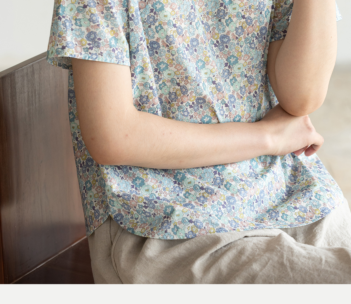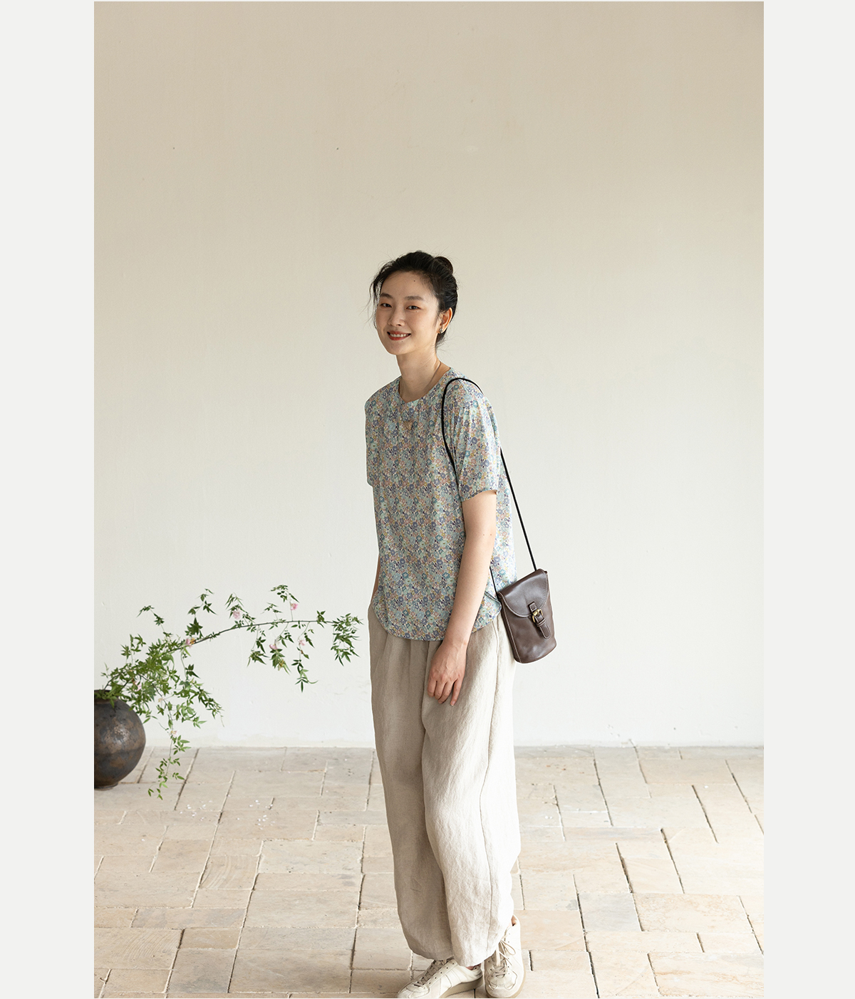 牧衣游原创夏花印花纯棉套头衫轻薄文艺碎花新中式上衣小衫 满弦