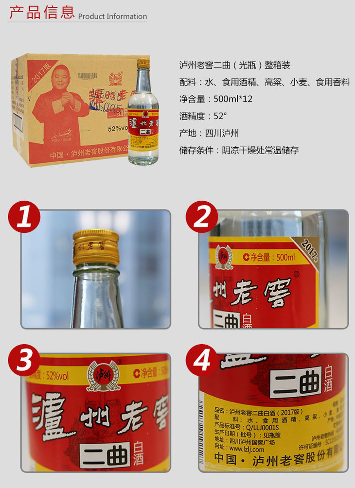 【泸州老窖官方形象店】52度 泸州老窖二曲白酒(2017版) 500ml*12