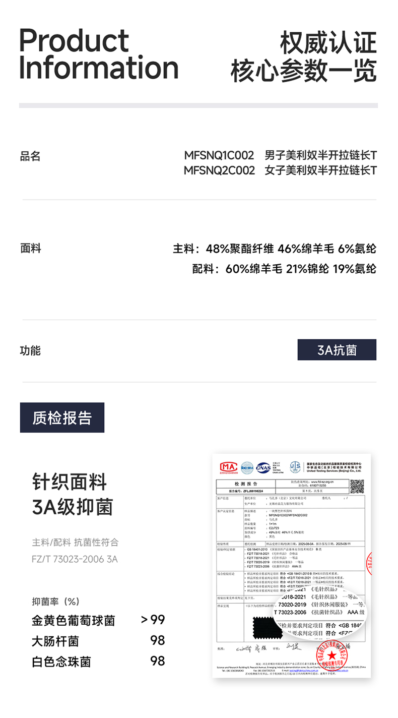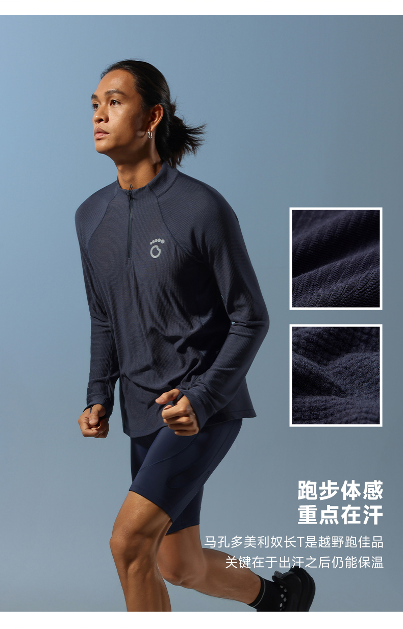 原创单品丨美利奴羊毛半开拉链长袖 柔软3A抑菌 出汗仍保温 腋下一片网布透气 摆臂灵活
