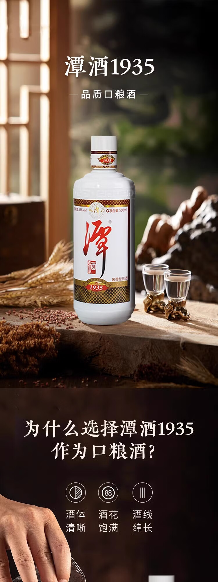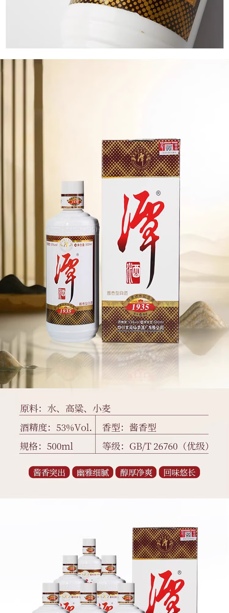 潭酒1935经典大曲坤沙 53度纯粮食酿造酱香型白酒 整箱500ml*6瓶包邮