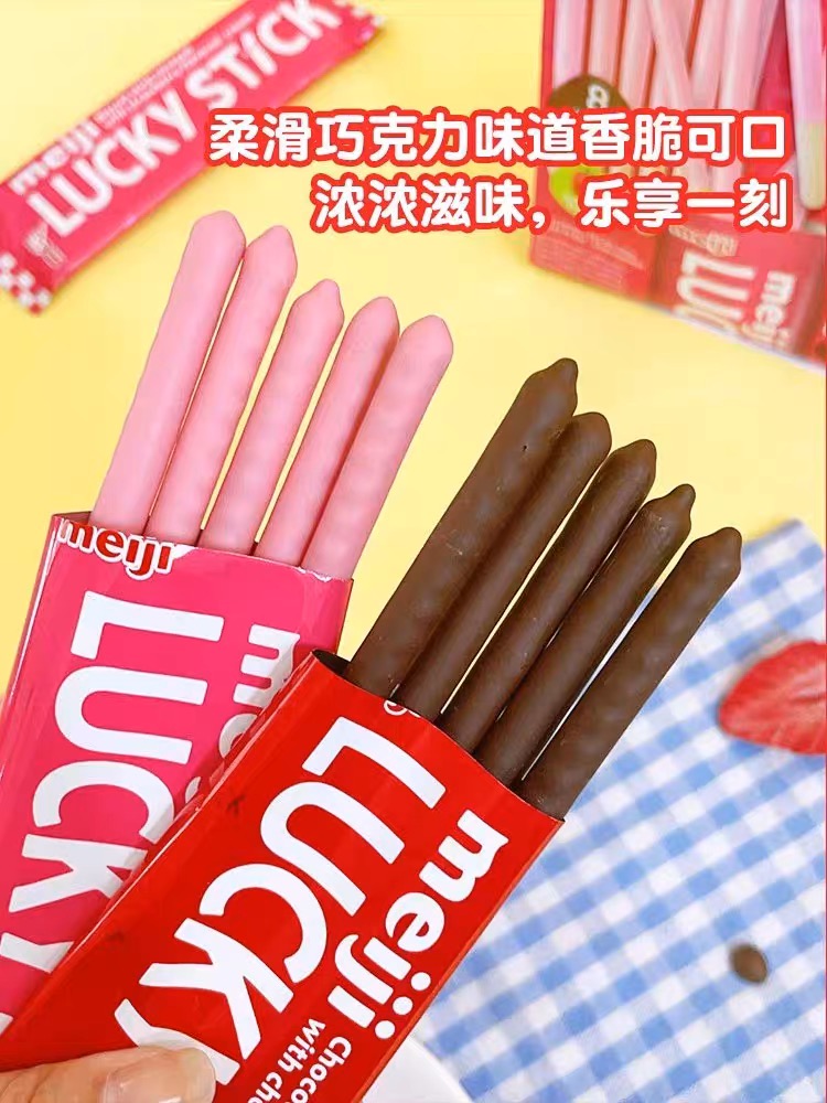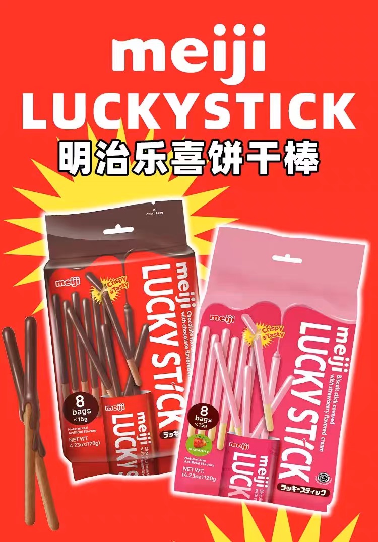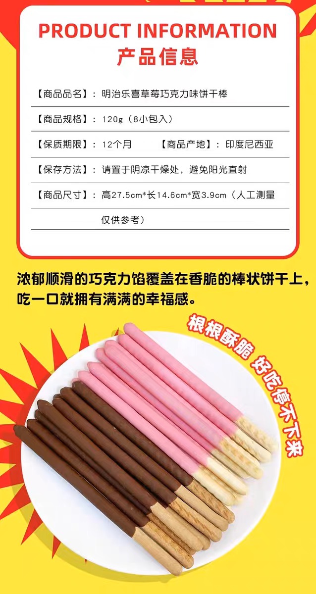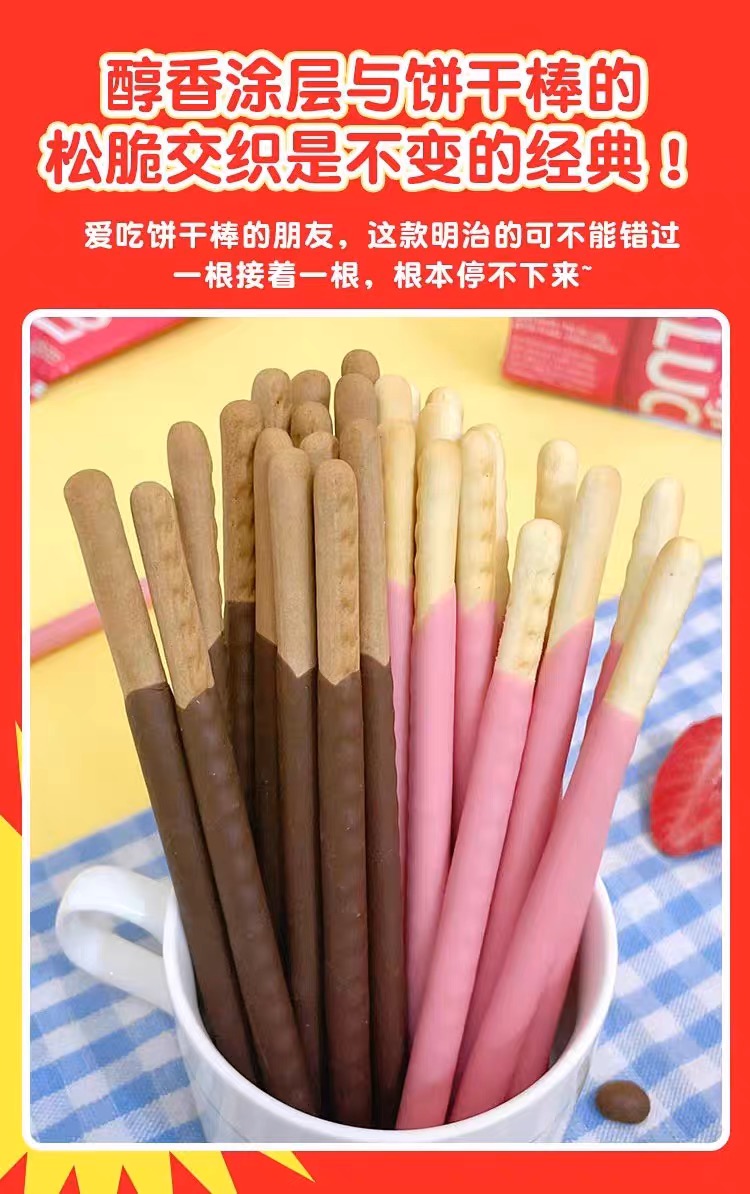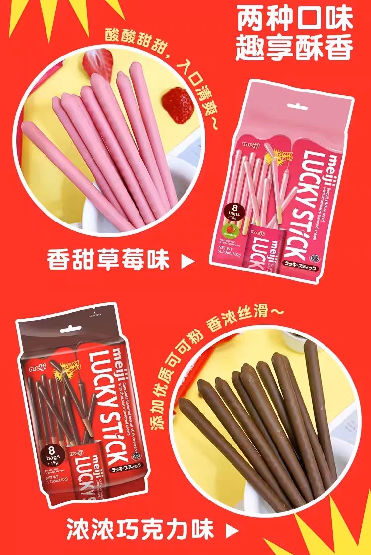 【印尼进口】Meiji 明治 LUCKY STICK 乐喜饼干条(草莓味)120g(15gX8包)