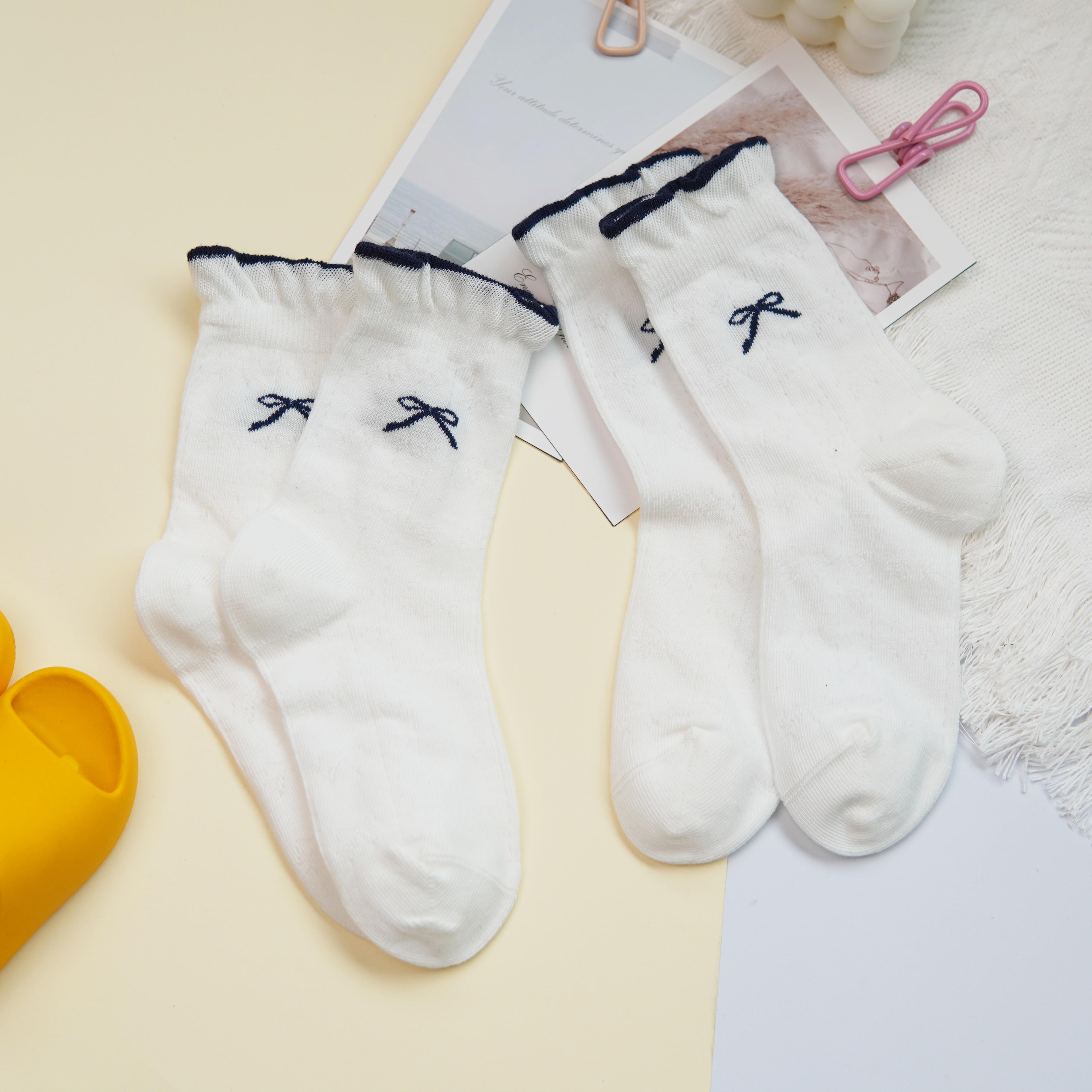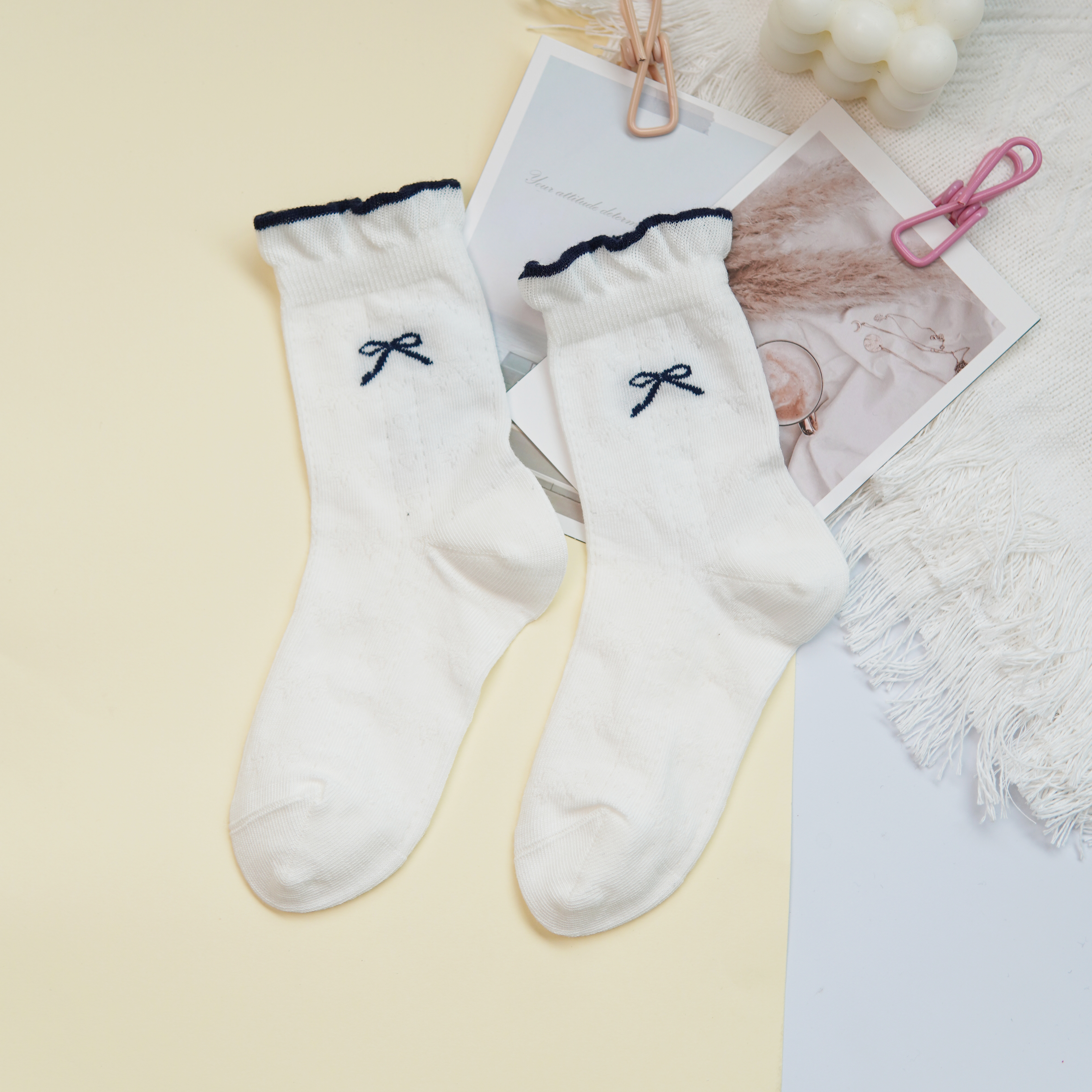 【6双6折】【26-32码】夏季薄款花边公主袜中筒精梳棉时尚袜子女宝棉袜【2双装】【2613203】