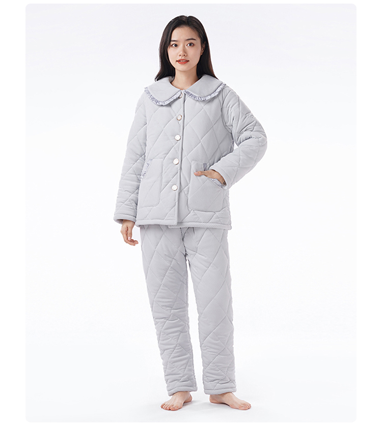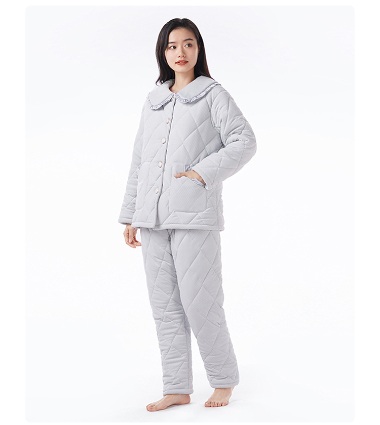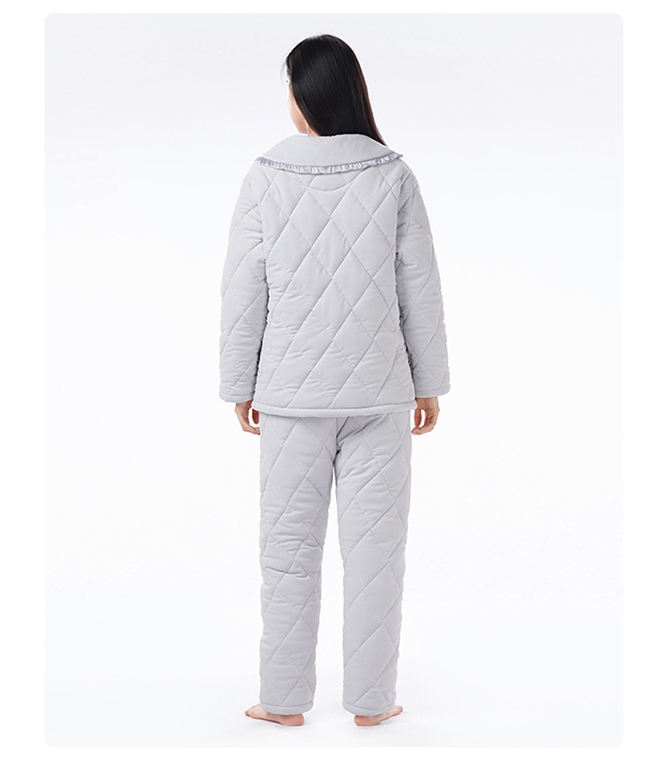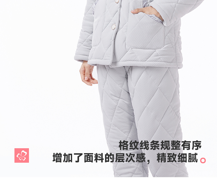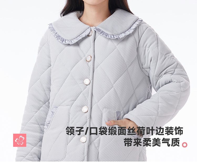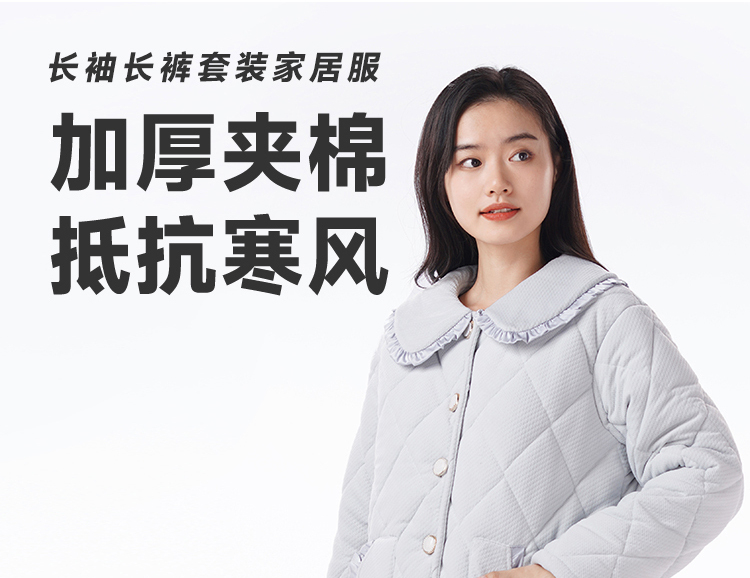 都市丽人睡衣海岛绒烂花女士家居服长袖长裤加厚夹棉套装LHH1N6