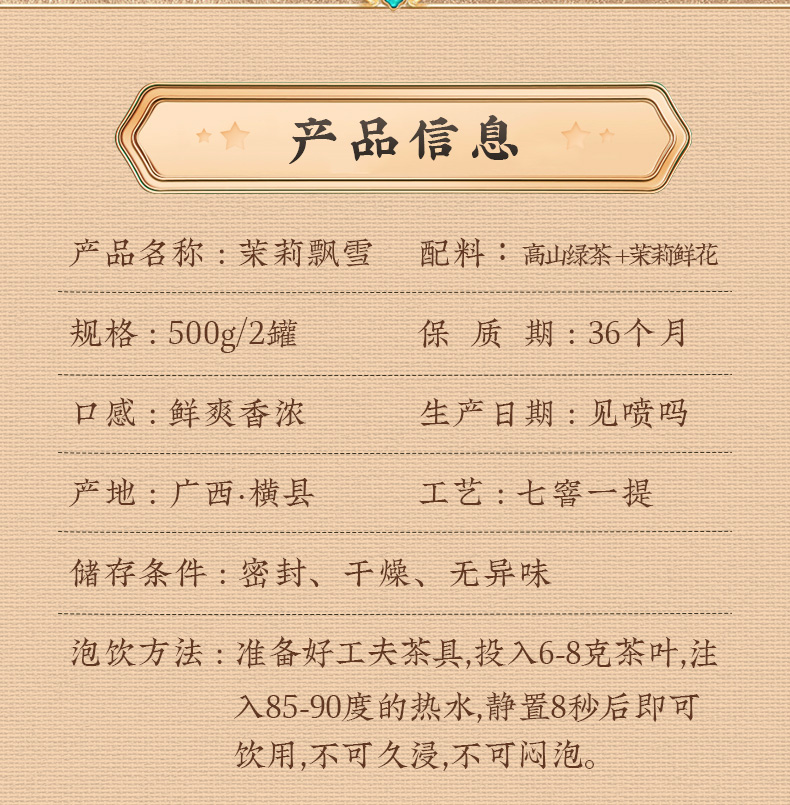 【自营】碧岩韵茶孔雀茉莉花茶2*250g精选