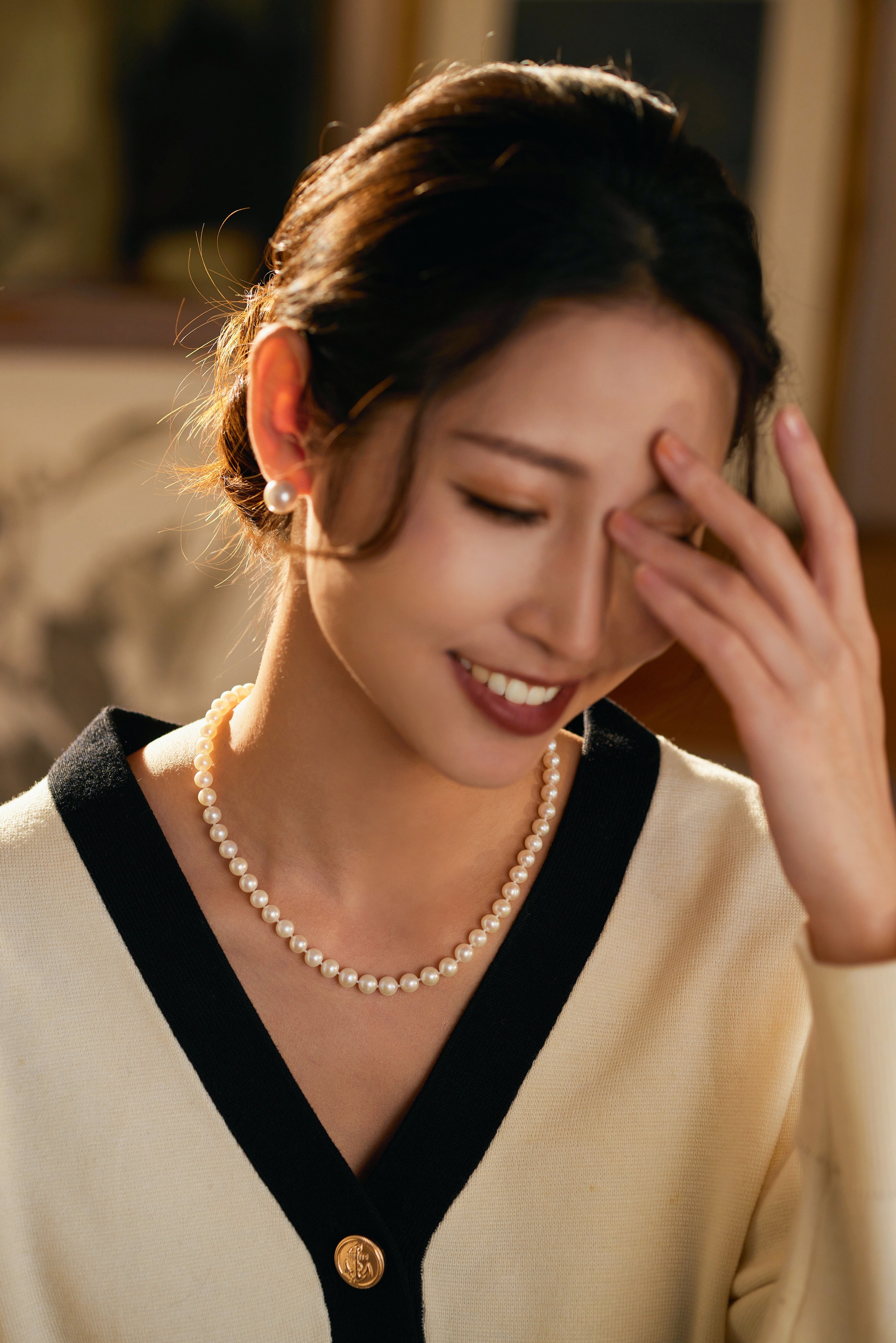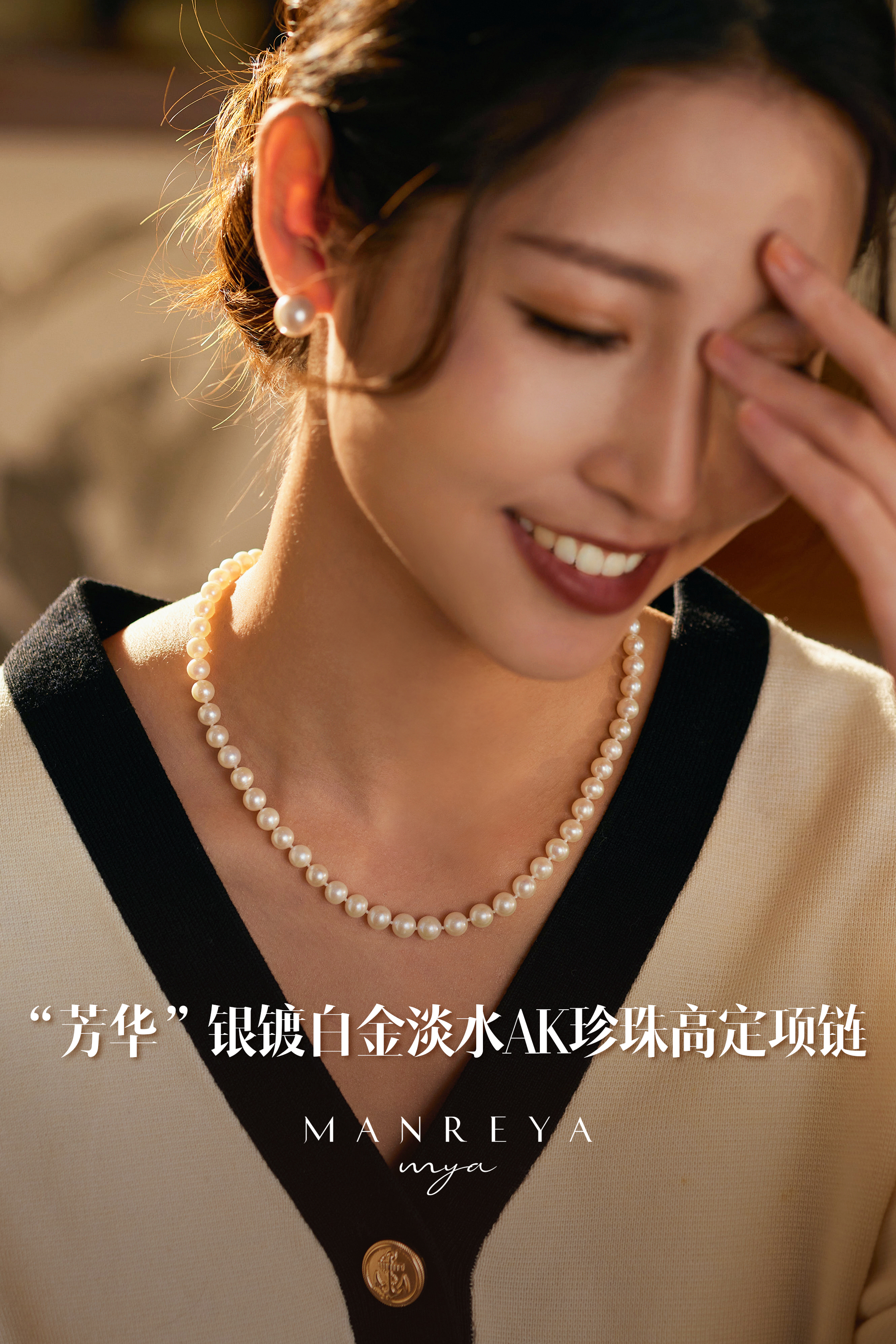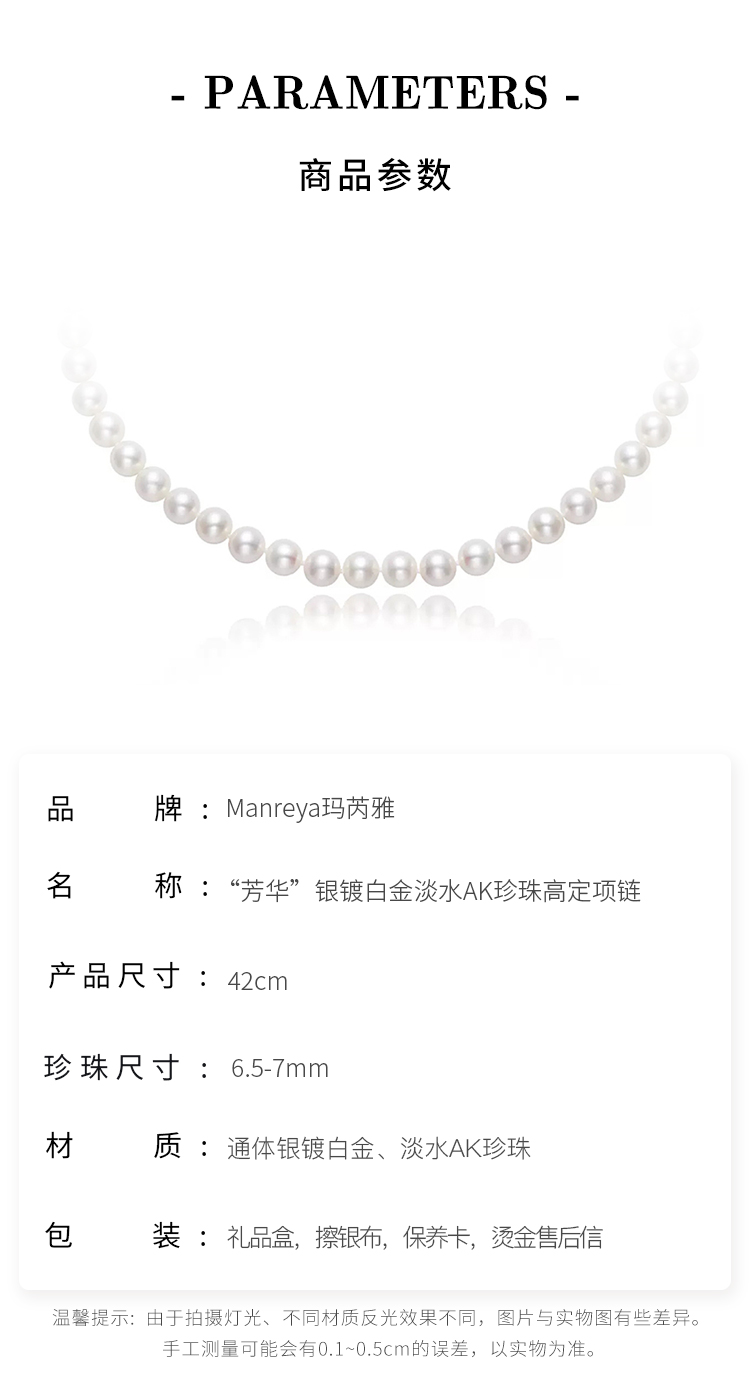 Manreya玛芮雅“芳华”银镀白金淡水AK珍珠高定项链