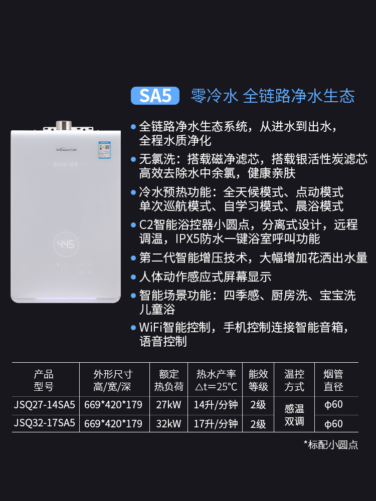 Vanward/万和 JSQ32-17SA5 燃气热水器 零冷水颁芙全面屏净化热水
